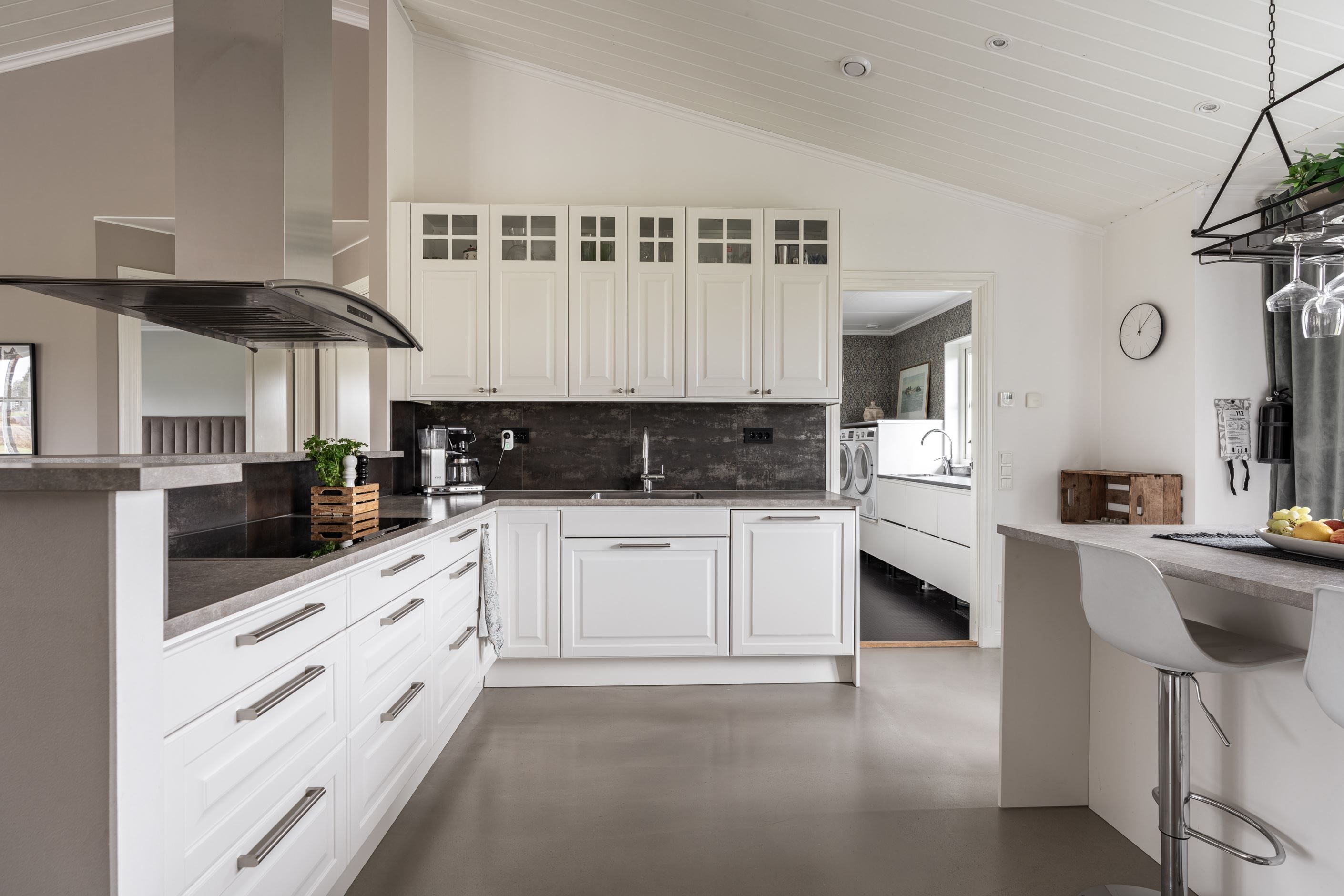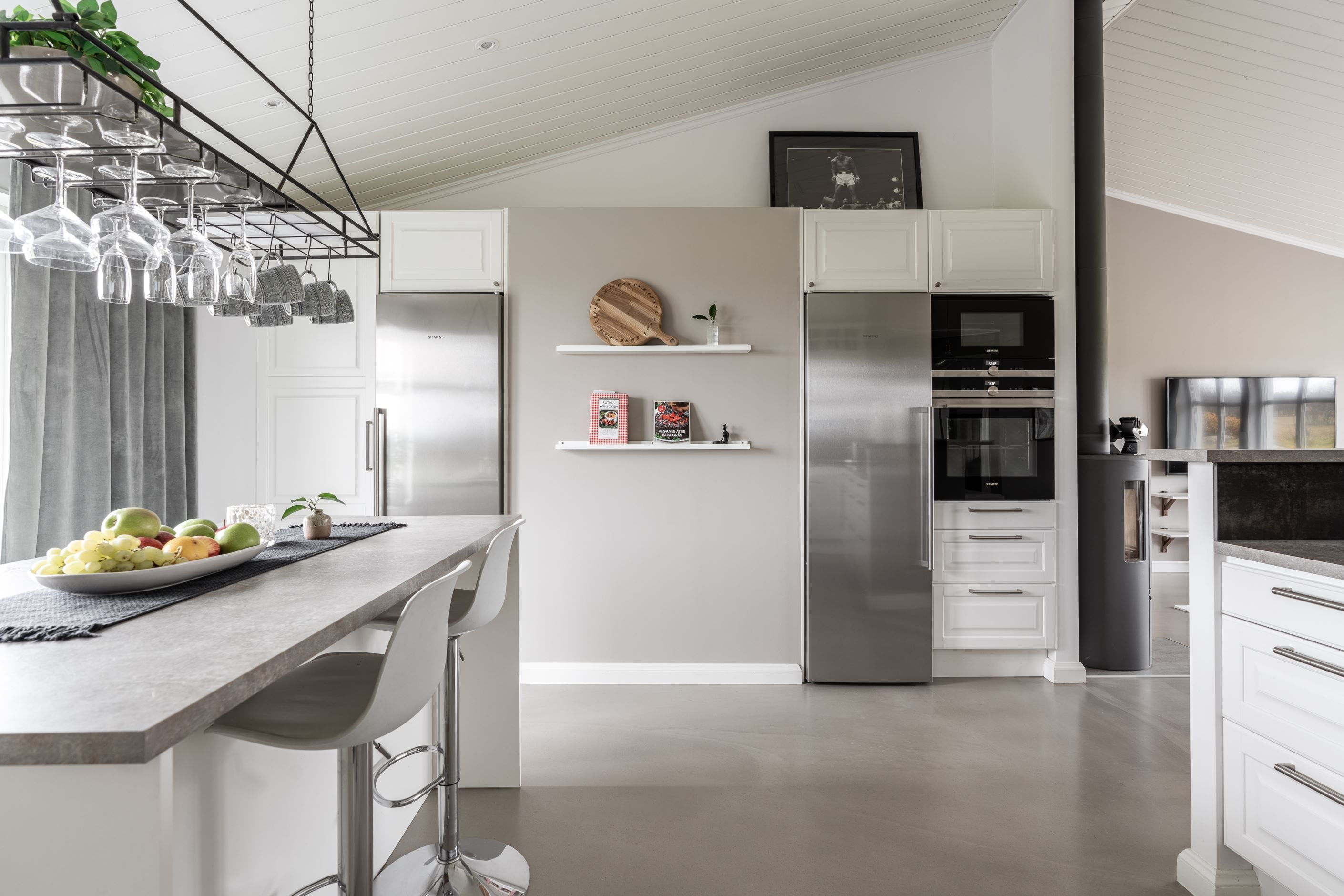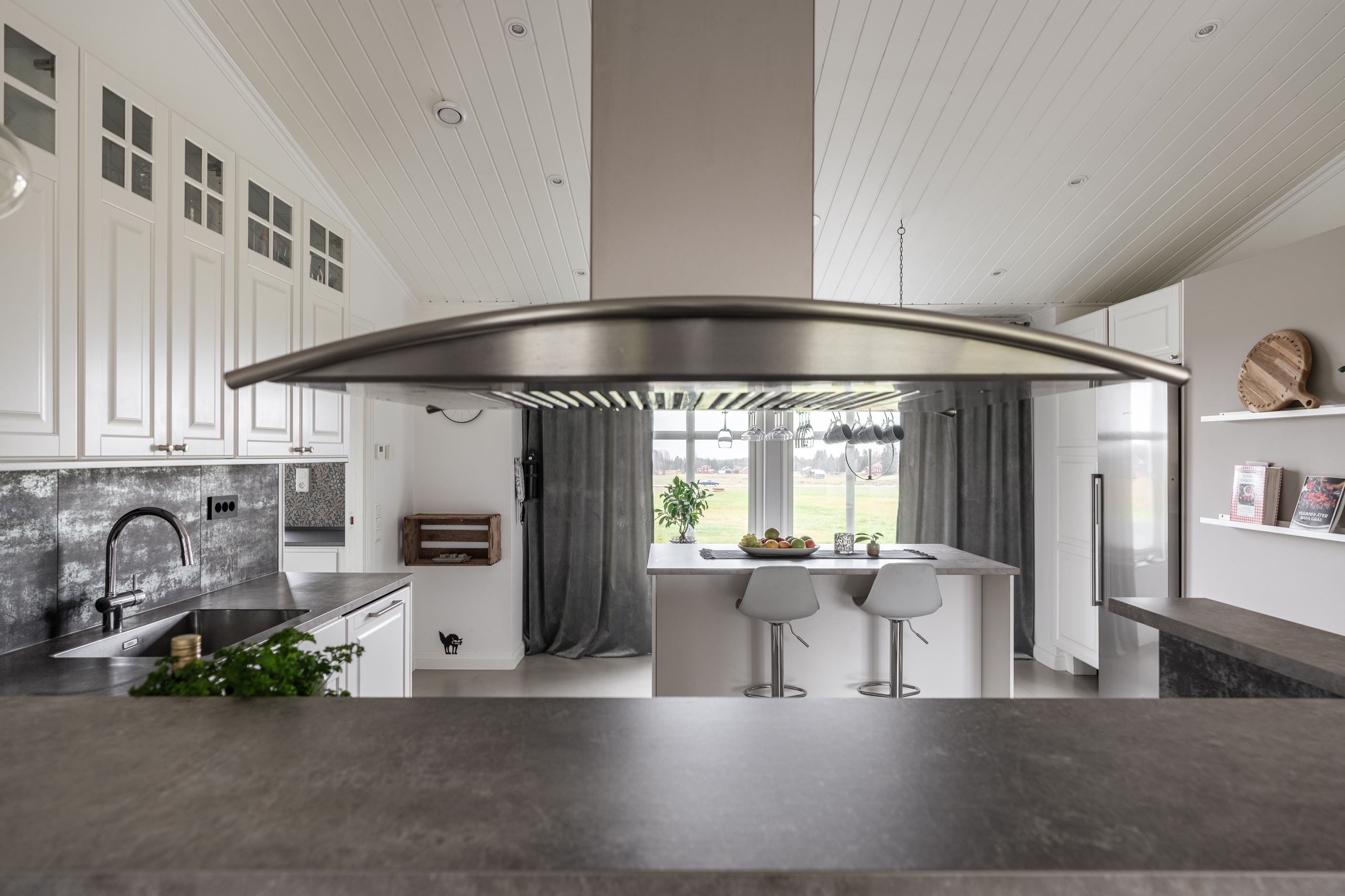 Köket är hemmets hjärta och en självklar samlingspunkt. Här finns en praktisk köksö som ger extra arbetsyta, plats för snabba frukostar och blir en given mötesplats vid middagslagningen – en sann dröm för hemmakocken.