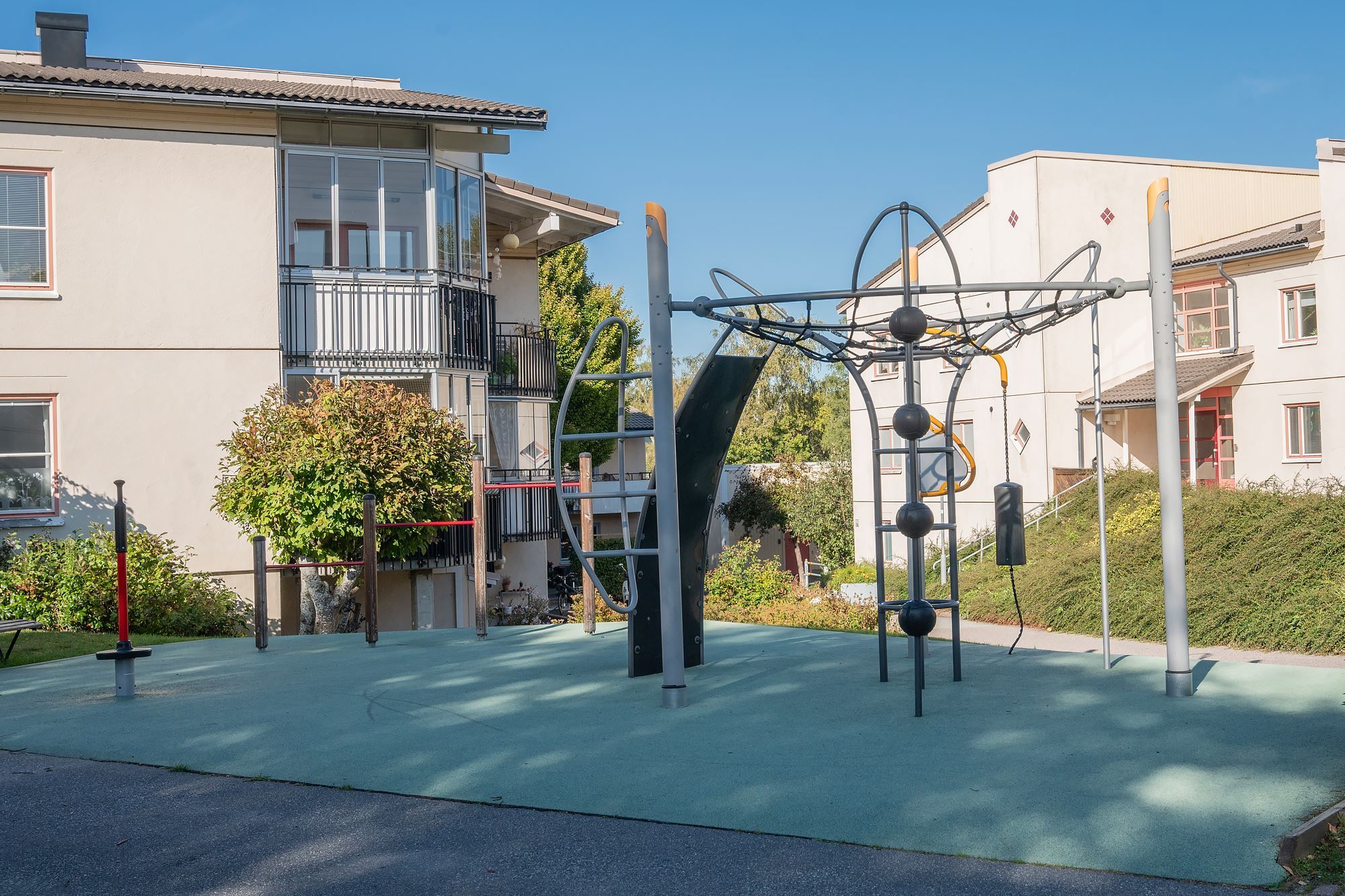 Området är grönt, lugnt och barnvänligt, med grönskande innergård, två lekplatser och till och med en egen boulebana. Du bor med gångavstånd till populära Fullersta Gård med sitt mysiga café, och till Huddinge Centrum med butiker, mataffärer, restauranger och utmärkta kommunikationer. I närheten finns även förskolor och skolor för barnen. Huddinge centrum nås på gångavstånd med pendeltågstation och ett stort utbud av butiker.