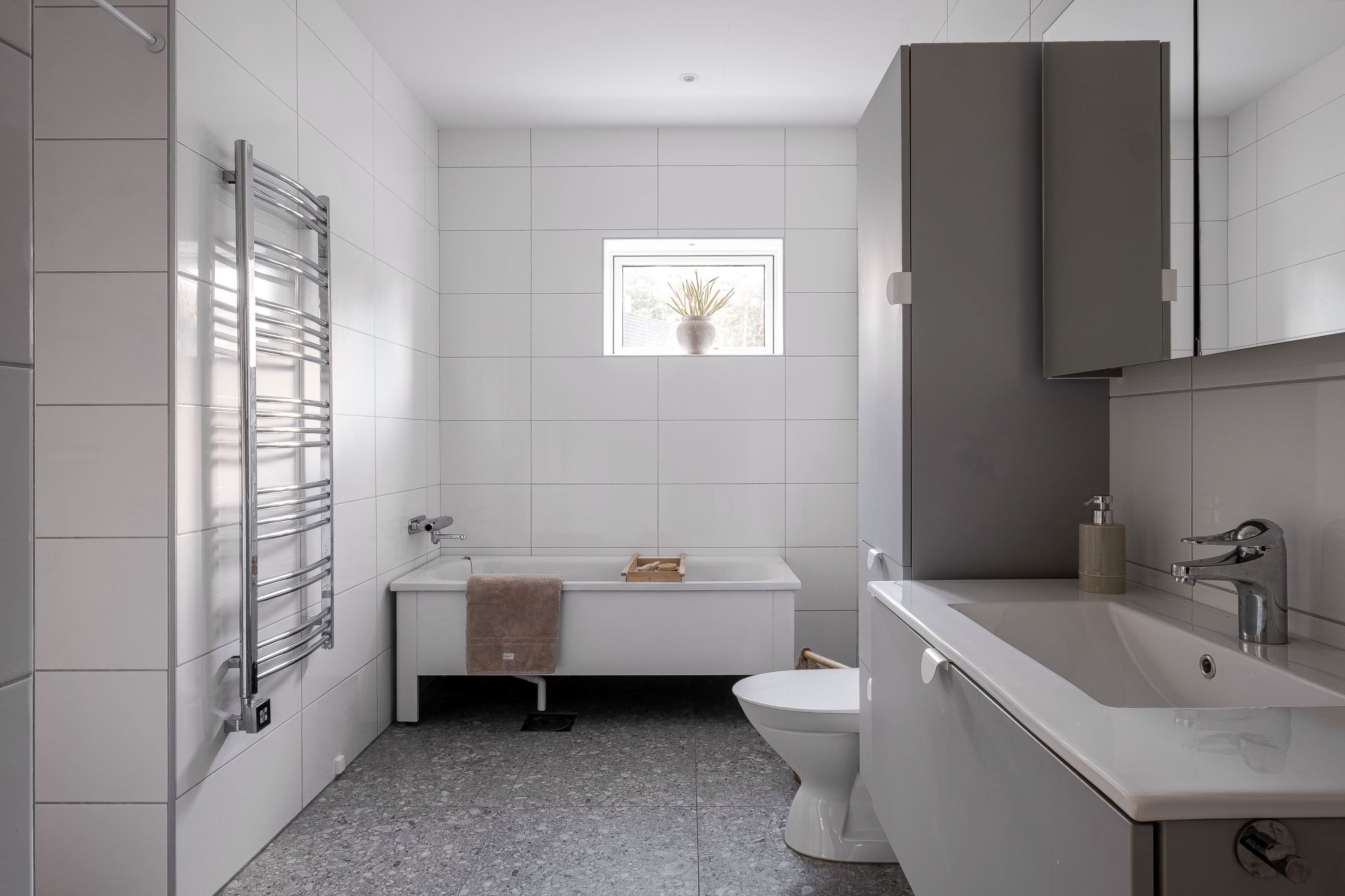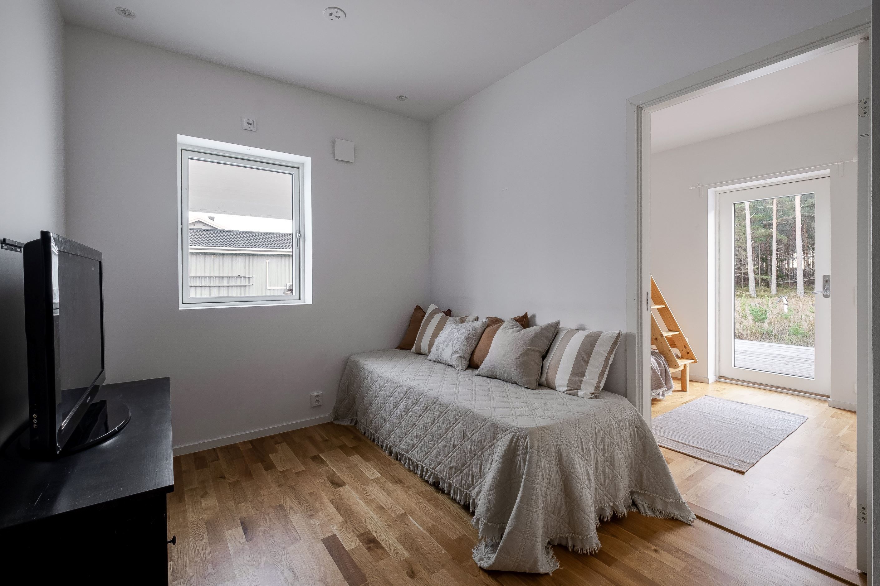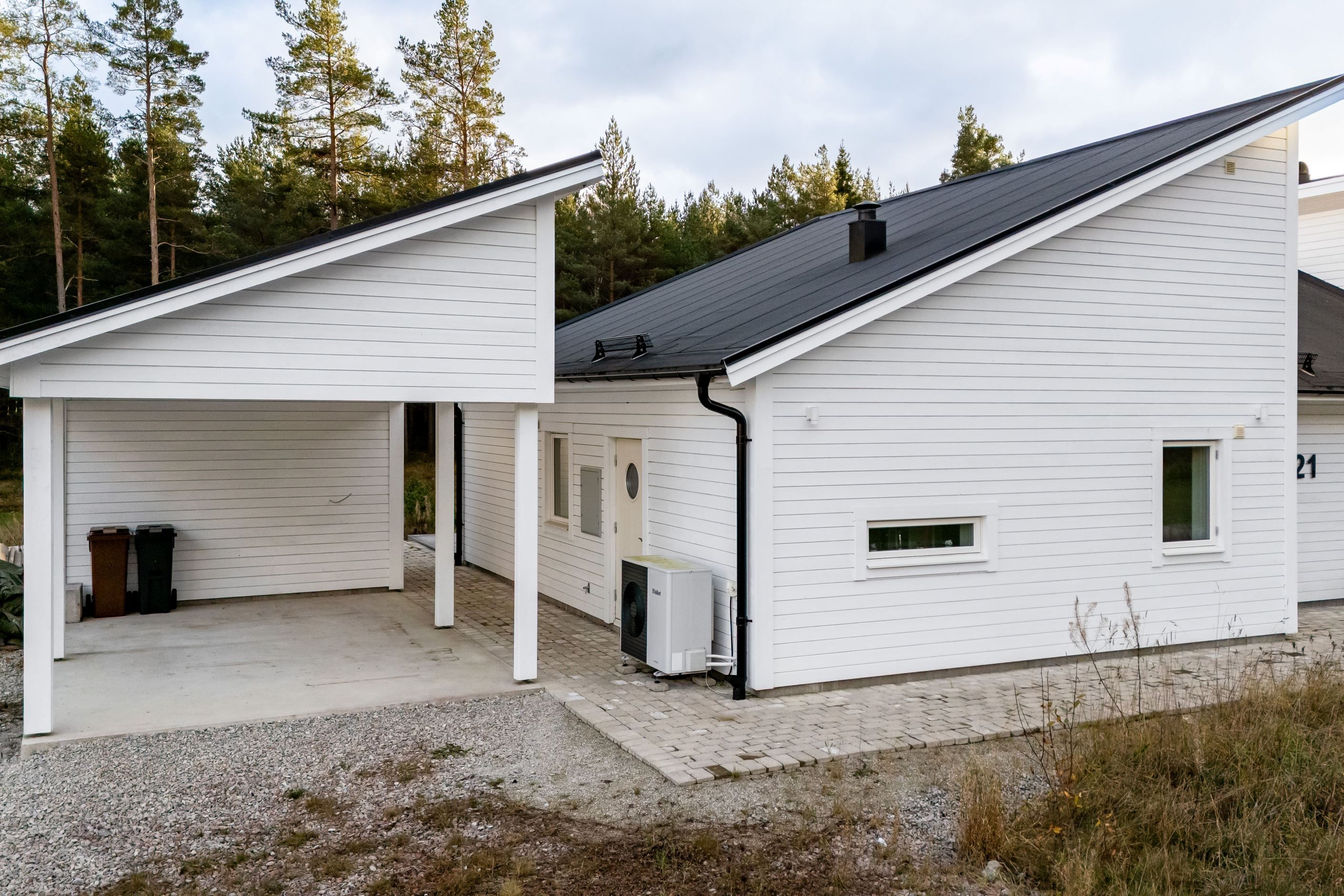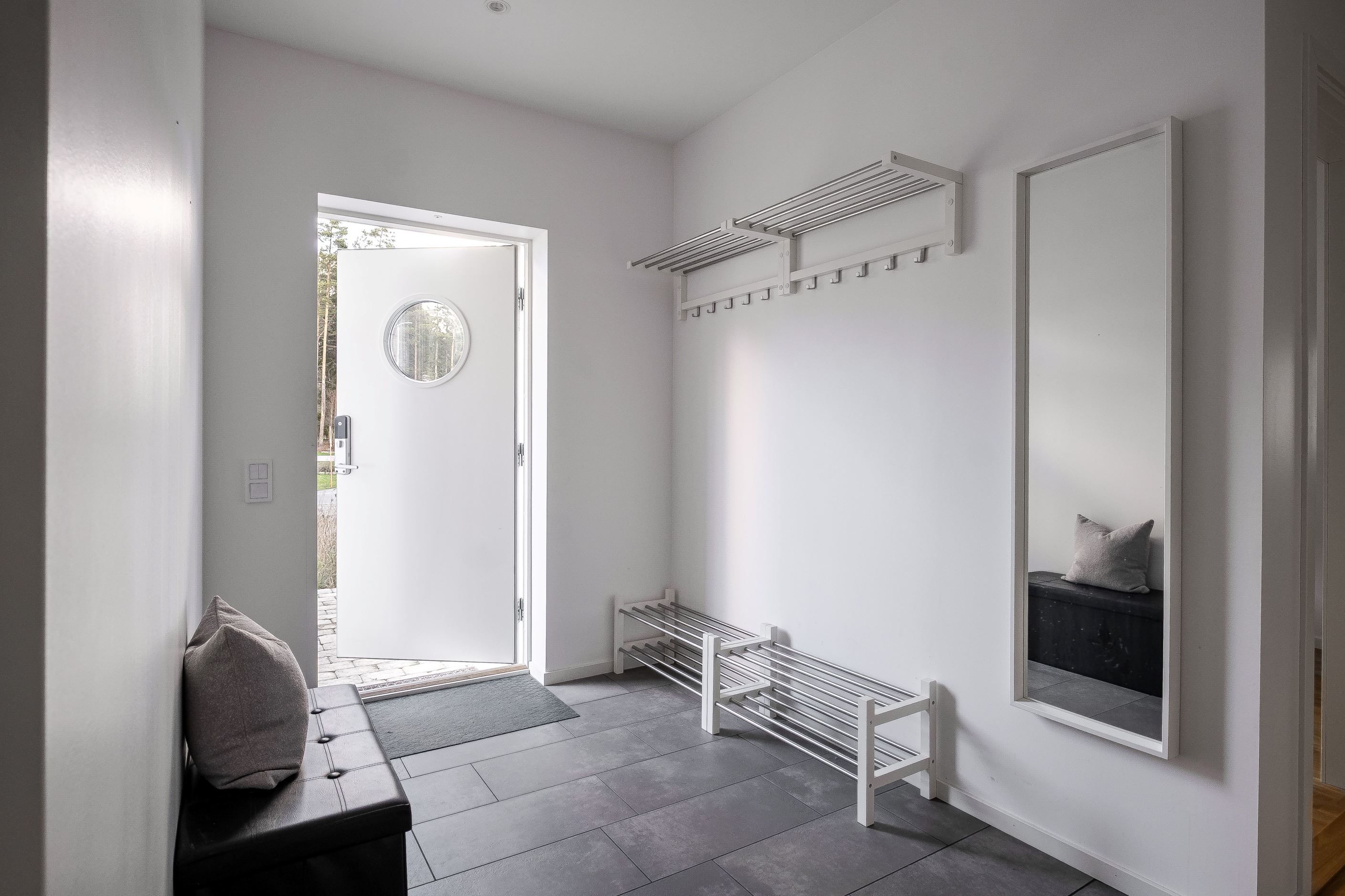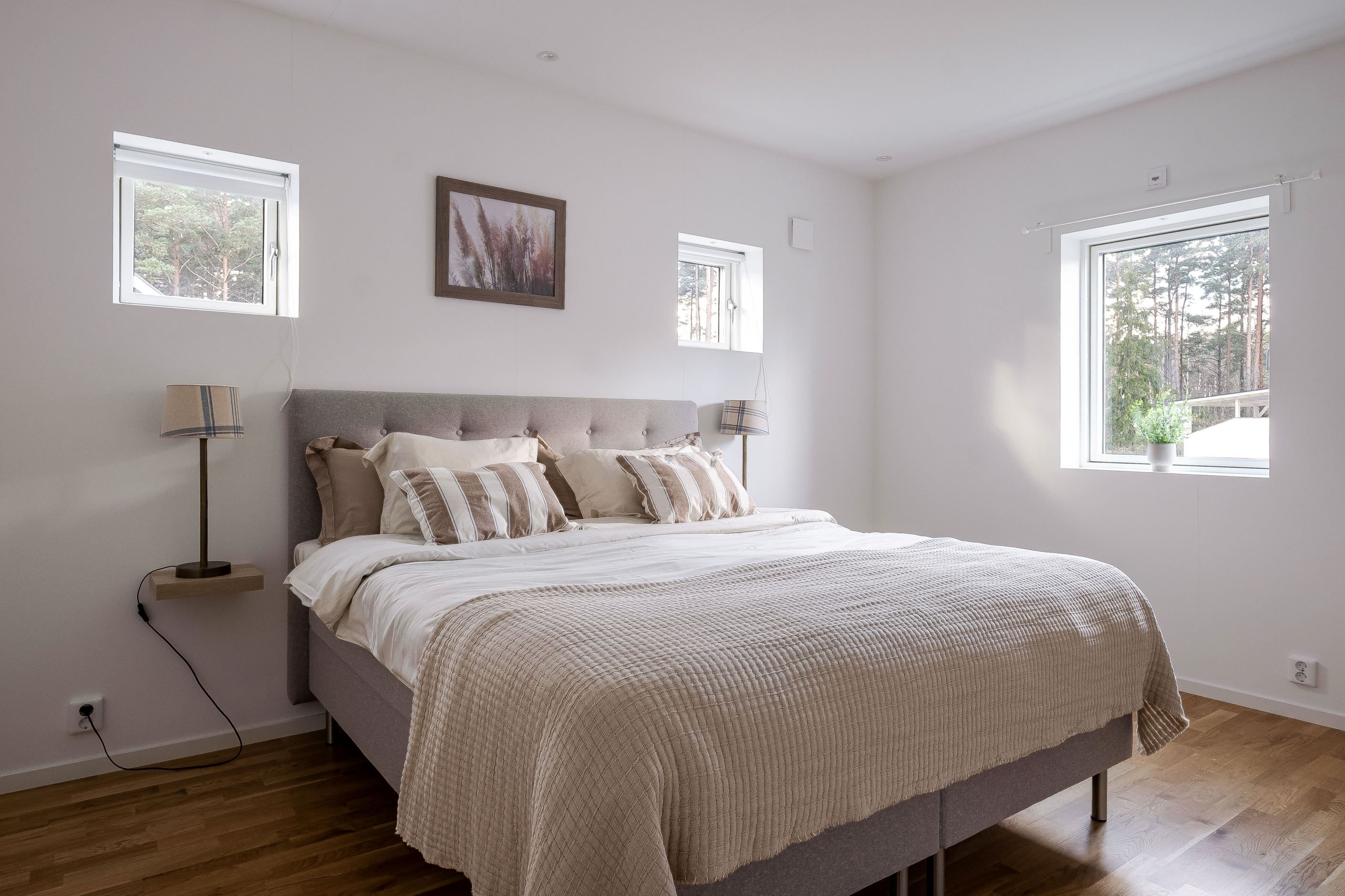 Huset erbjuder fyra bra sovrum som ger gott om plats för både familjemedlemmar och gäster. Den rymliga hallen med klinkergolv är både välkomnande och praktisk, och den stora tvättstugan underlättar vardagens sysslor. Här finns även två badrum – ett med dusch samt ett större badrum med både dusch och badkar, båda smakfullt inredda med kakel och klinker. De stora fönsterpartierna skapar ett generöst ljusinsläpp och en härlig kontakt mellan inne och ute. För avkoppling finns både en mysig tv-hörna och ett trivsamt vardagsrum med plats för hela familjen. Utomhus erbjuder fastigheten en carport med tillhörande förråd för extra förvaring.