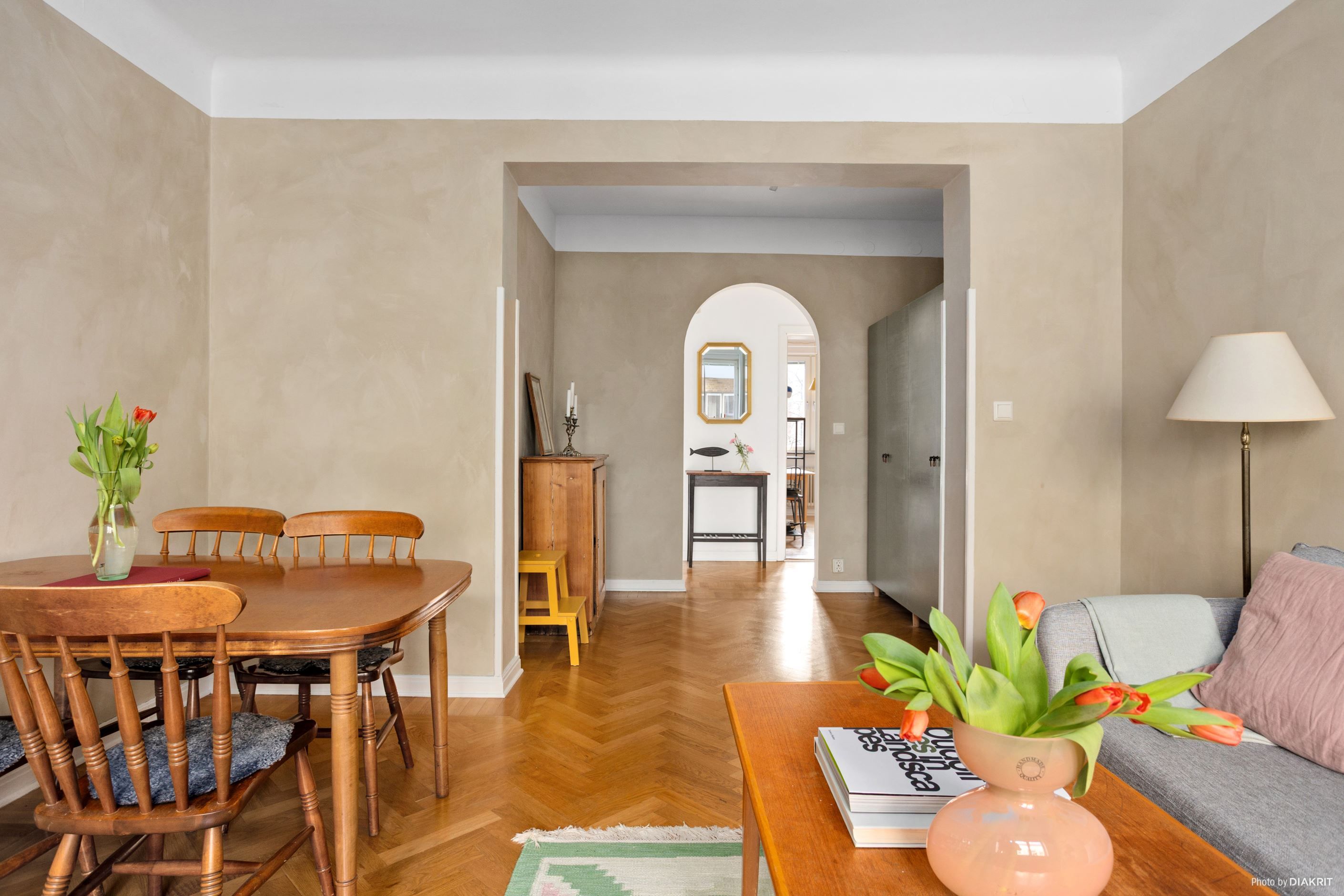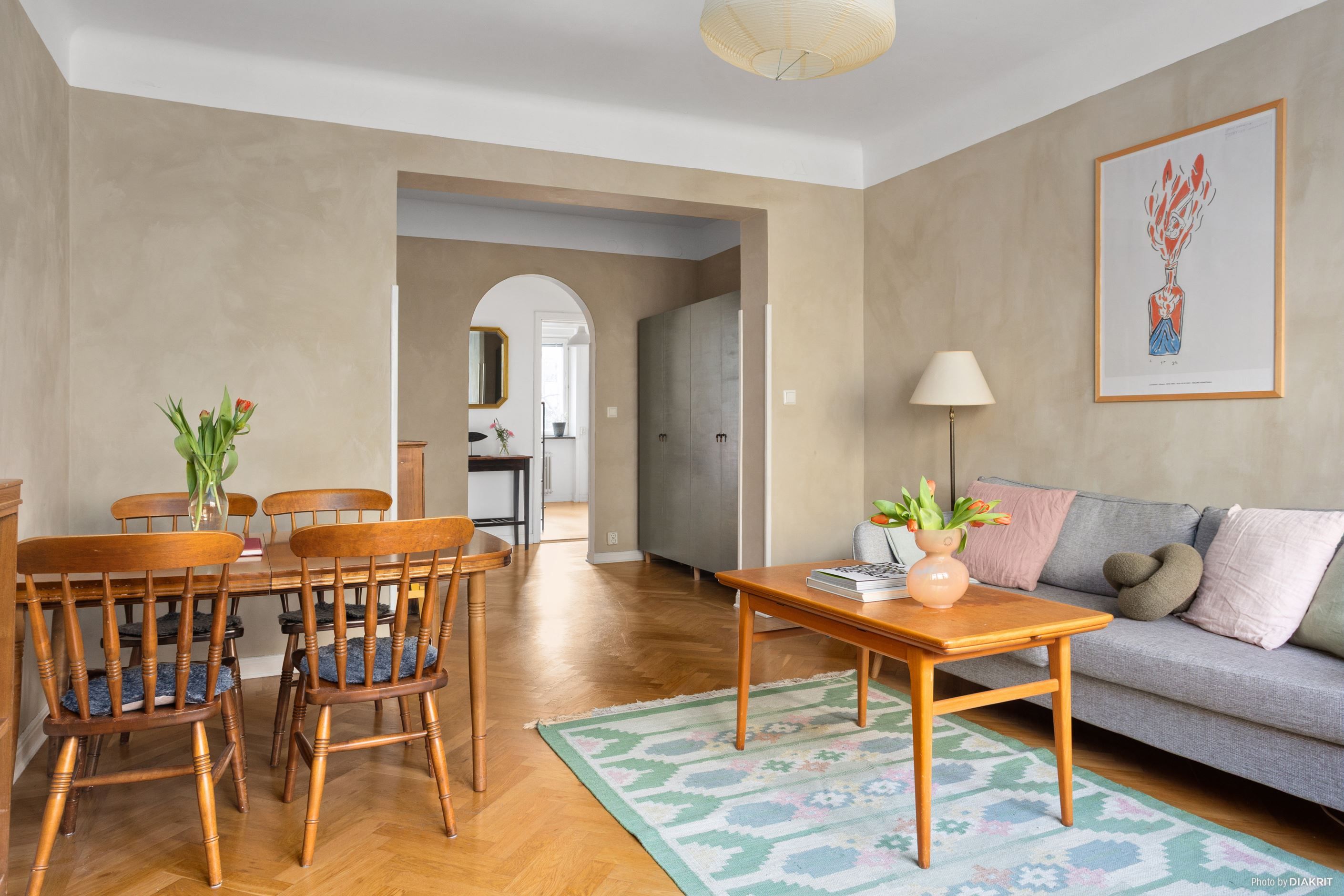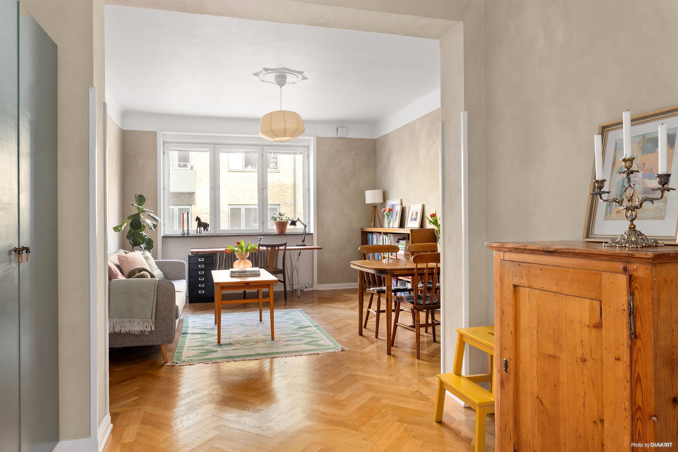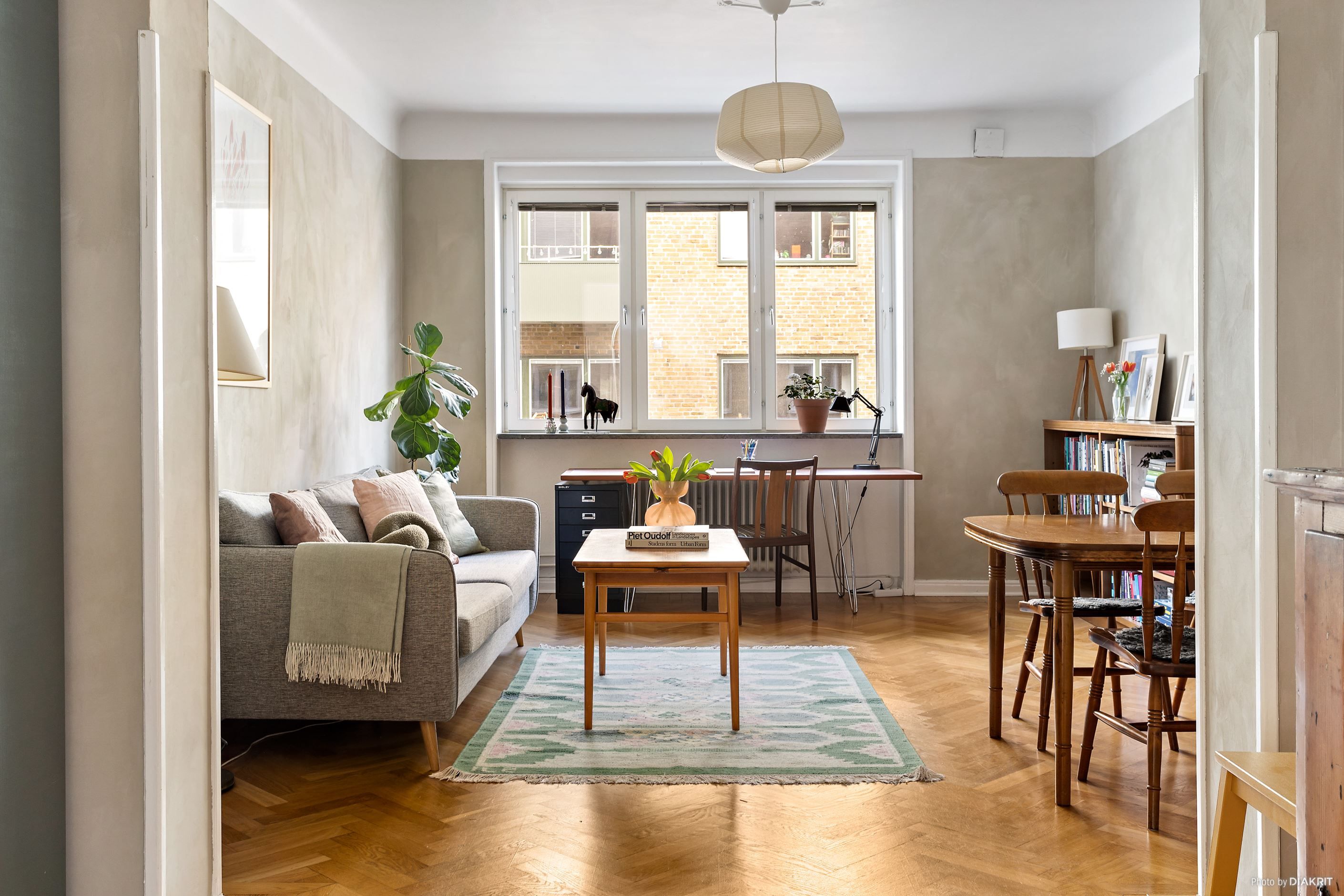Nu har vi det stora nöjet att presentera denna charmiga 2.5:a på optimalt läge nära Möllan och Folkets park. Här bor man på charmiga 52 kvadrat med fina detaljer såsom fiskbensparkett, lampstuckatur, plankgolv och generös takhöjd. Kök med matplats för dig och några vänner, helkaklat badrum med badkar, sovrum med gott om plats för dubbelsängen samt gott om förvaring i form av en separat klädkammare och extra garderober som är placerade i "halvan" i mitten av lägenheten. Under sommarmånaderna nyttjar man med fördel föreningens härliga och gröna innergård, en egen oas mitt i stan. BRF Cirkeln är en välskött förening som bildades redan 1936. Föreningen äger marken, låg belåning och de stora renoveringarna gjorda.