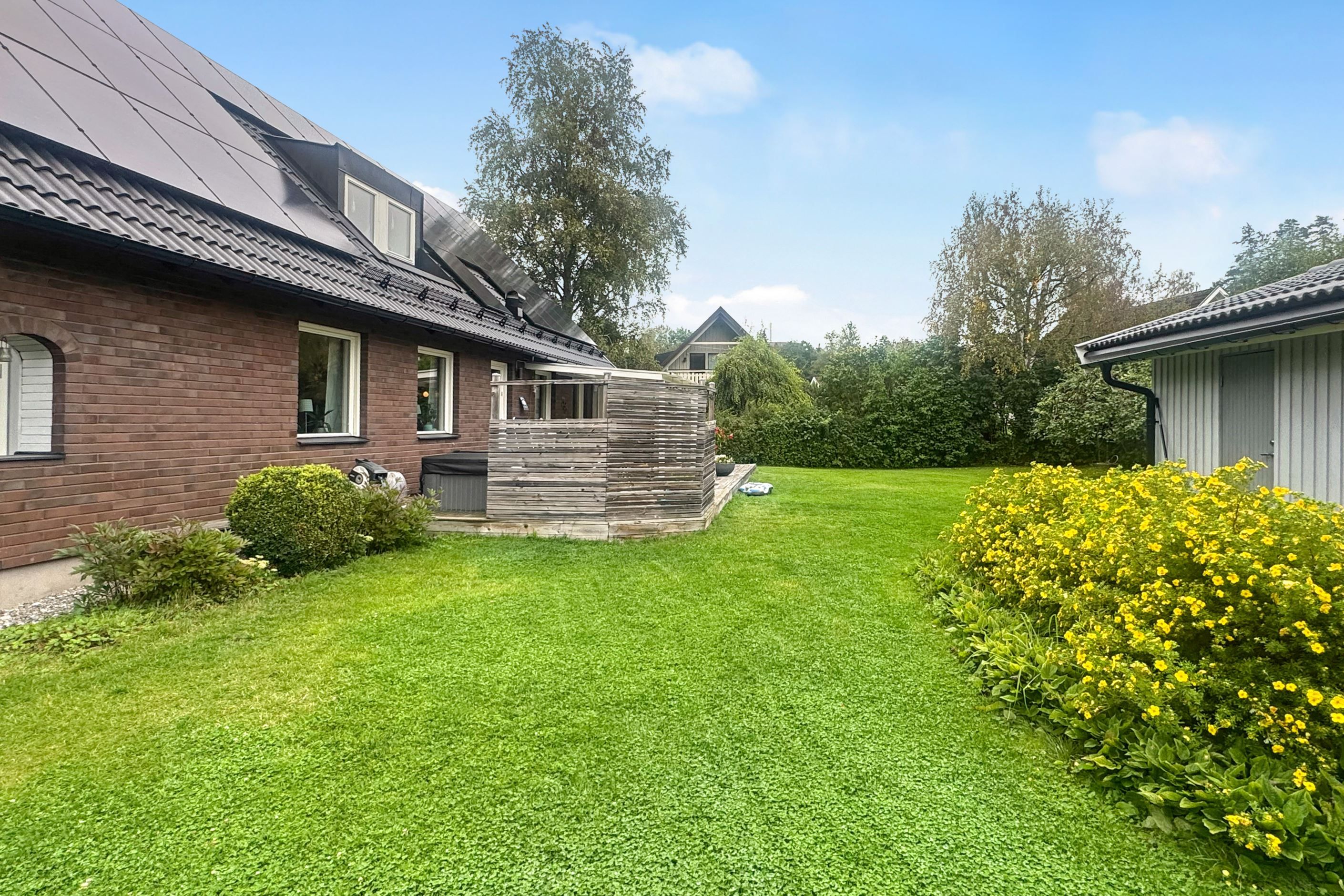 Den insynsskyddade trädgården i perfekt solläge, egen brunn för bevattning och det egna garaget kompletterar denna idyll. För naturälskare är närheten till springspår och svampplockning en klar fördel, medan shopping och nöjen finns i Täby Centrum. Dessutom ligger Roslagsbanan runt hörnet, vilket gör pendlingen smidig. Ett fantastiskt hem som bara är att flytta in i!