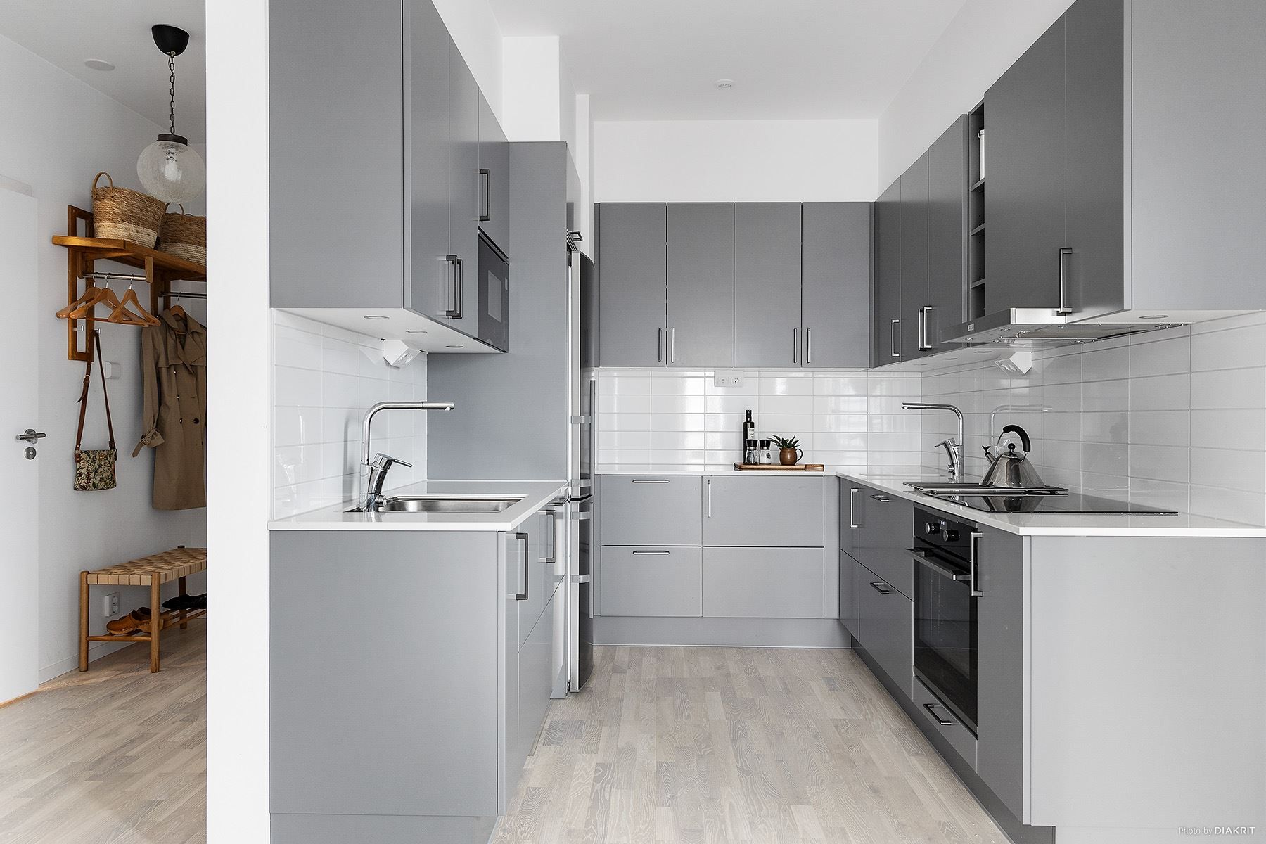 Lägenheten är belägen på andra våningen som du smidigt når med hiss från entréplan. När du kliver in genom dörren omfamnas du genast av hemtrevlig känsla där smakfulla materialval, diskreta nyanser och harmoni skapar en sammanhängande atmosfär i hela bostaden. I hallen kan du enkelt hänga av ytterkläder och placera skorna på plats innan du kliver in i bostadens centrala del. Den öppna planlösningen mellan kök och vardagsrum är det naturliga hjärtat i hemmet. Det finns gott om utrymme för både soffgruppen och matbordet vilket skapar en harmonisk disposition. Vidare erbjuds du ett komplett badrum med kaklade väggar, dusch och tvättmöjligheter inrett i sobra färger samt ett rymligt sovrum med generösa förvaringsalternativ bakom skjutpartier. Om du lämnar sovrumsdörren på glänt kommer du att vakna upp till en härlig första anblick på morgonen när havet glimtar fram i din vy.