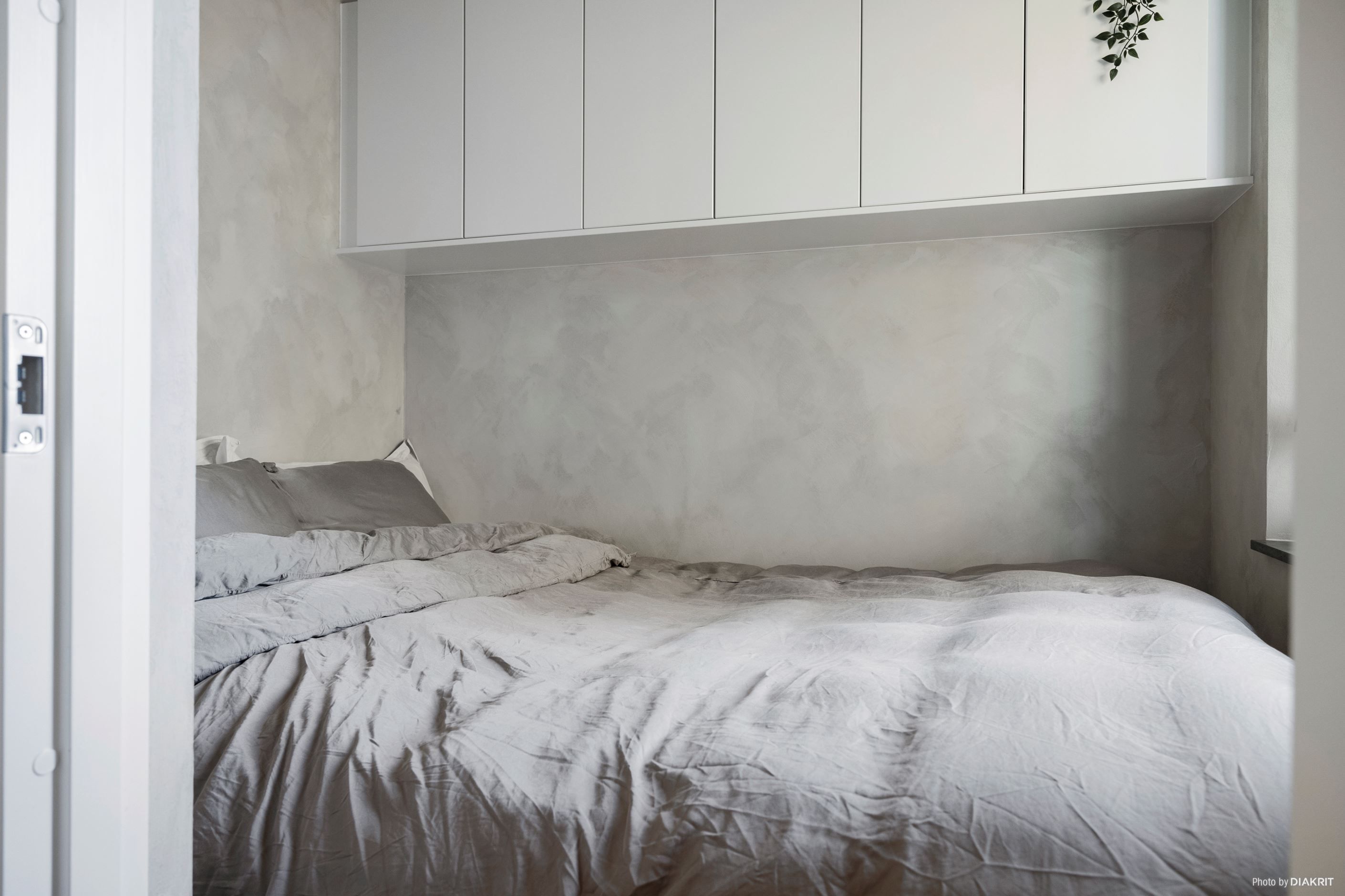 Från köket har du en öppen vy mot vardagsrummet där det finns plats för soffa, TV och ett mindre matbord. En perfekt yta för både avkoppling och sociala stunder där du kan mingla med gästerna medan middagen tillagas. Pricken över i:et i den här lägenheten är att du kan stänga om dig när du går och lägger dig. Att kalla det en 1,5:a är inget genomskinligt säljknep - detta är ingen vanlig sovalkov! Här får du en avskild sovplats med smart förvaring ovanför sängen utan att tumma på estetiken.
