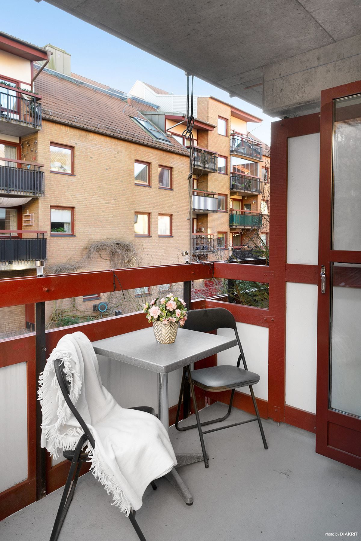 Balkong: Balkongen vetter mot innergården och erbjuder en lugn oas för morgonkaffet eller kvällens bokstund.