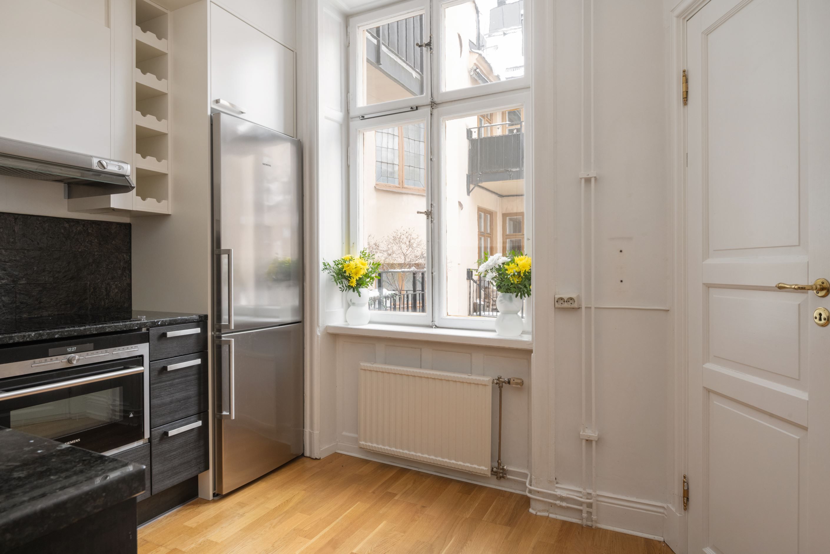 Läget är svårslaget med närhet till allt vad Stockholms innerstad har att erbjuda. Här når du vimlet kring Stureplan runt husknuten men även grönskan kring Johannes kyrka, Humlegården och Djurgården ligger på behagligt gångavstånd från bostaden. Här finns verkligen det bästa av två världar. Goda kommunikationer med både röda och gröna tunnelbanelinjen inom 3-4 minuters promenad från porten.