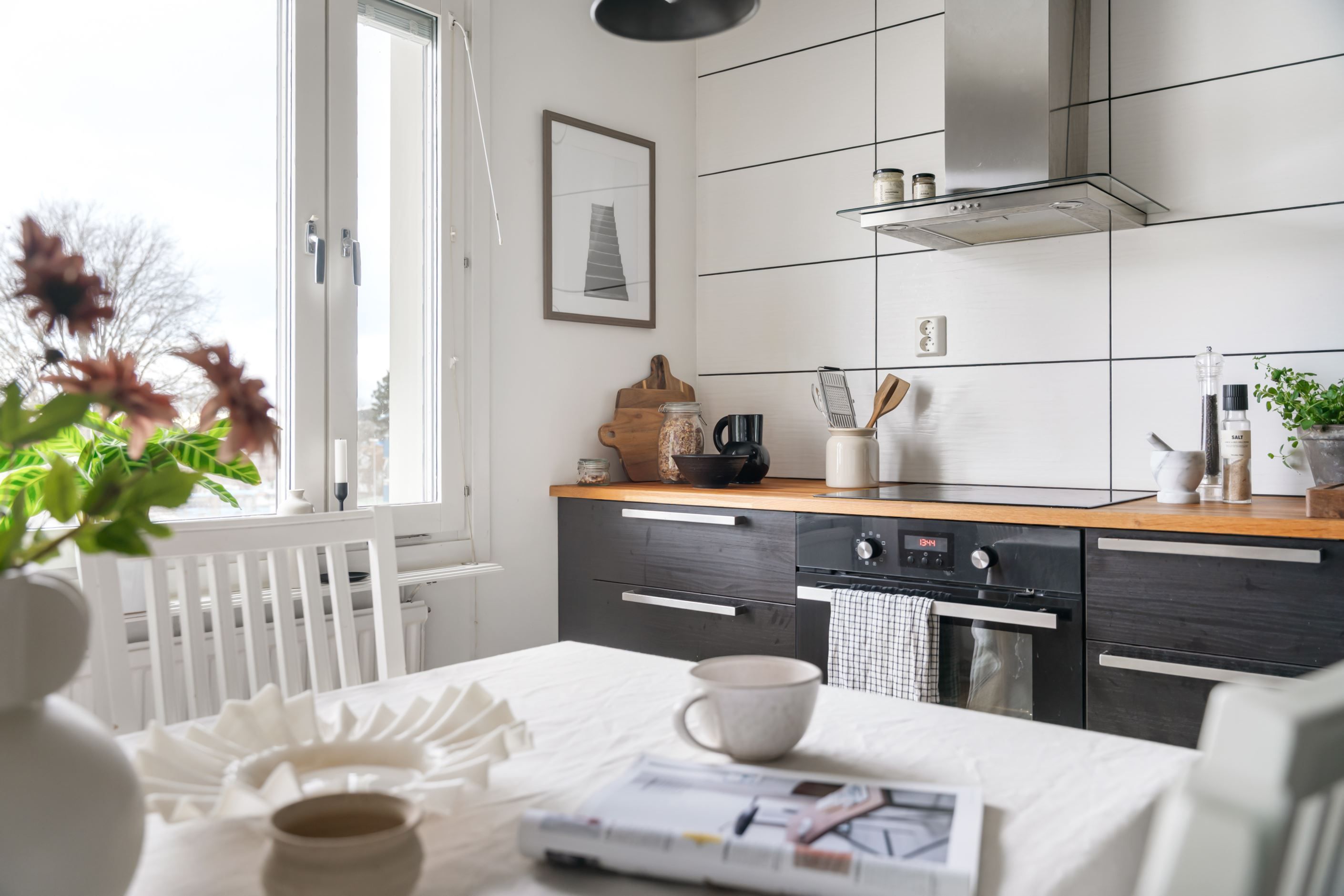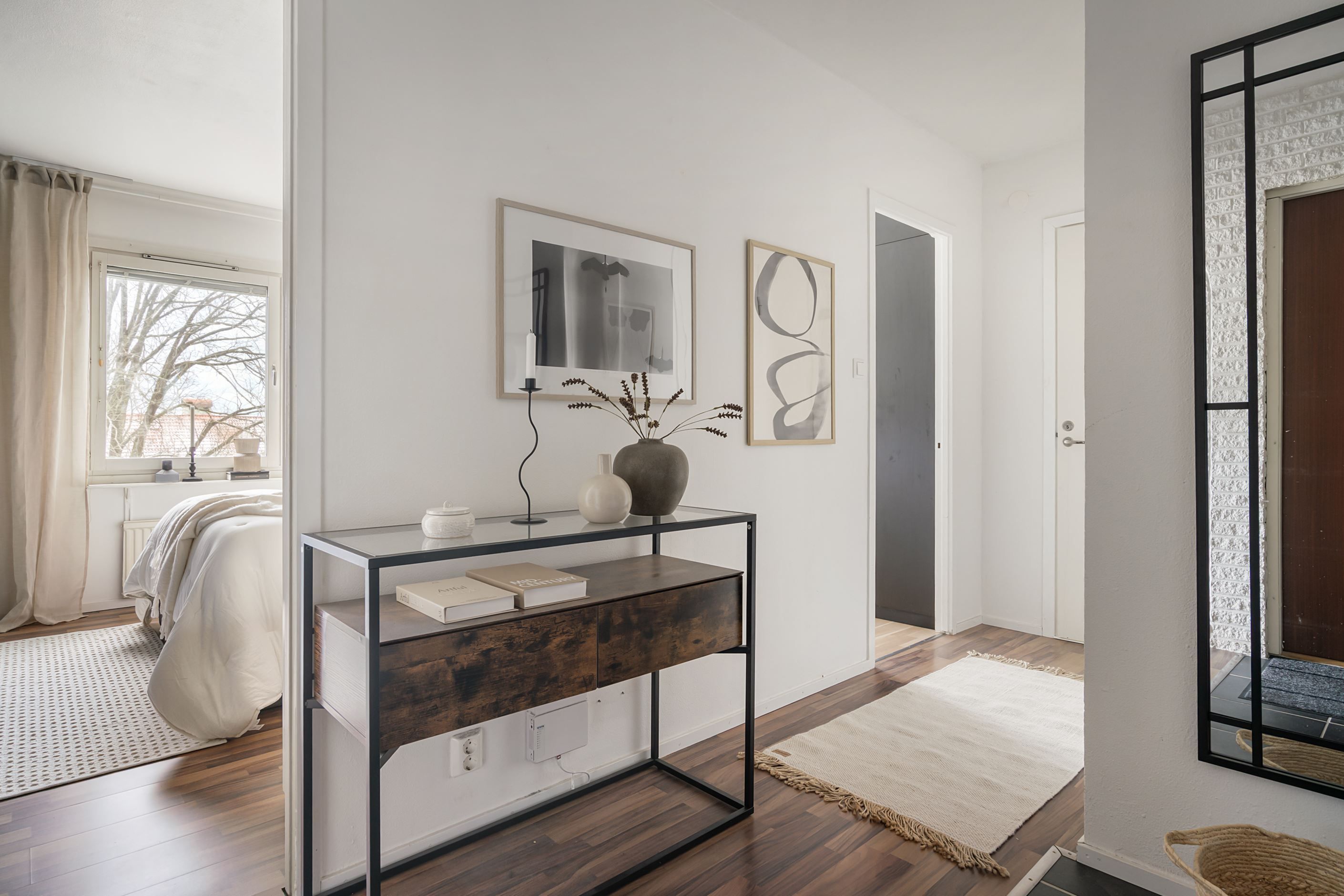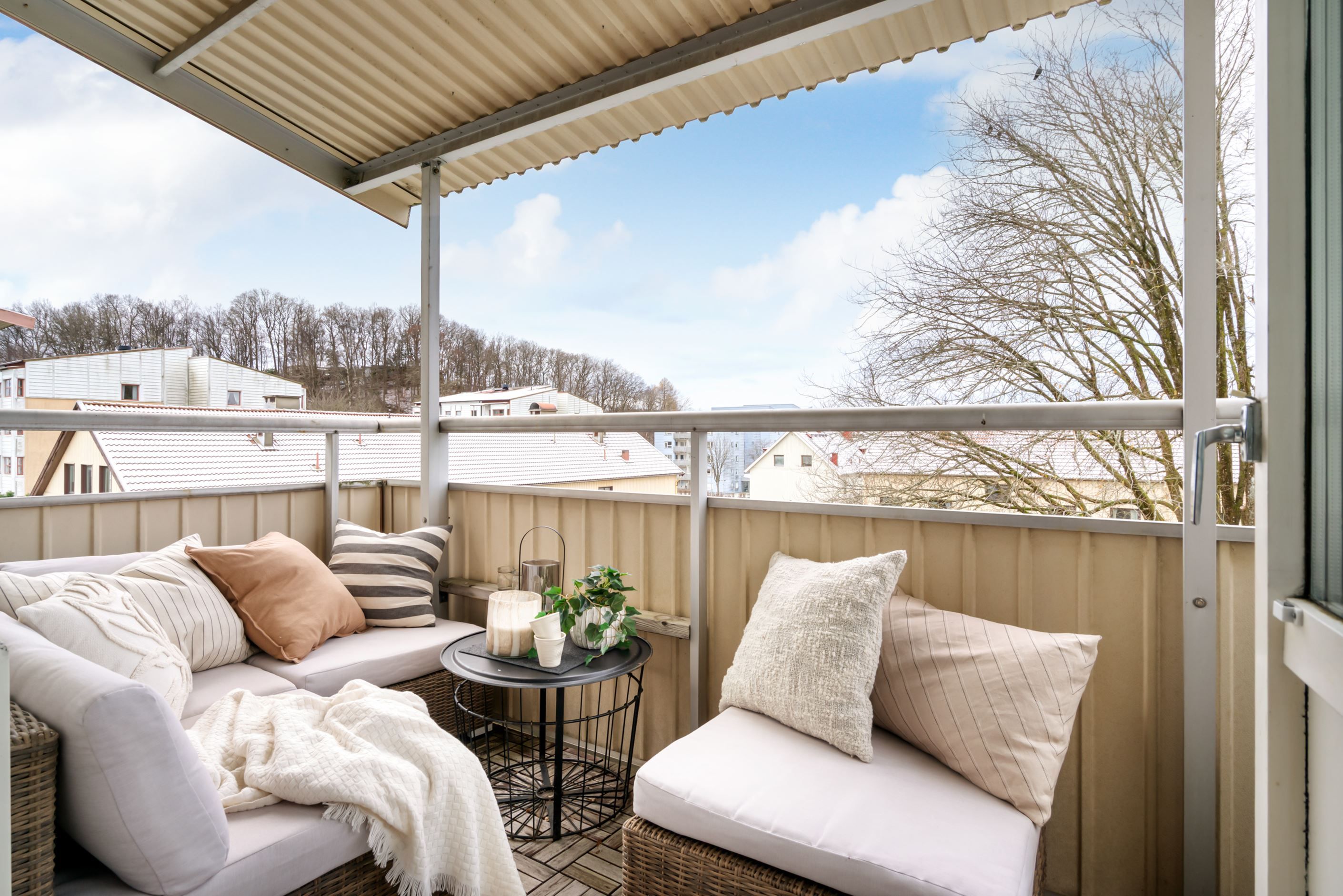 Här erbjuds en renoverad pärla högst upp i huset med fri utsikt, på första parkett mot centrum. Hallen är rymlig med klinker och ljusa väggar. Köket är modernt och utrustat med bl.a. diskmaskin. Naturlig matplats intill fönstret, där du kan sitta och titta ut över Bohus Fästning. Ingen insyn och fri utsikt. Badrummet är kaklat med tvättmaskin. Separat klädkammare för förvaring. Vardagsrummet är stort med utgång till balkongen som har tak och grönskande utsikt i perfekt västerläge. Här kan du njuta av en bit grillat på sommaren. Sovrummet har en praktisk skjutdörrsgarderob. På entréplan finns även ett förråd som hör till bostaden. Ledig p-plats finns.