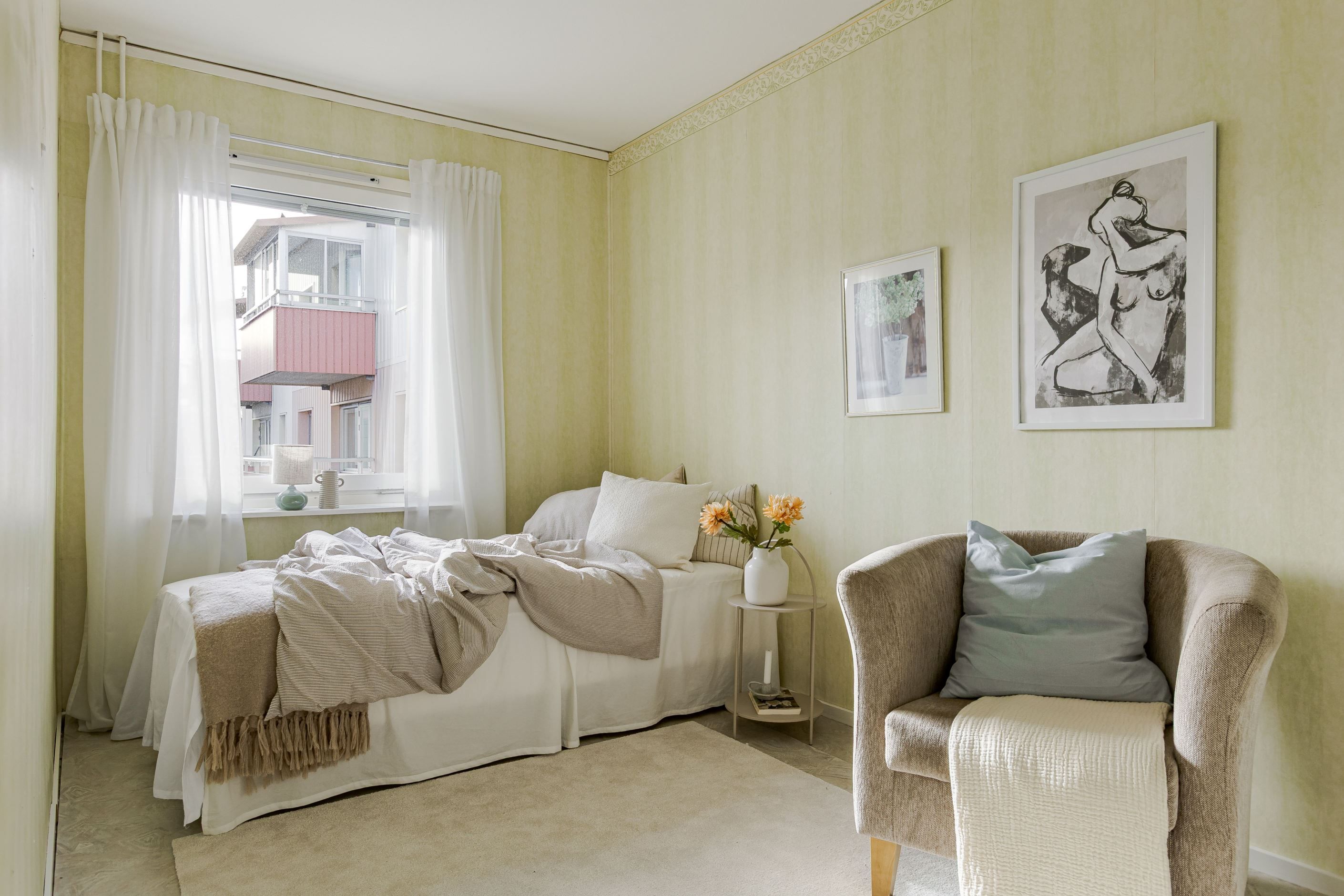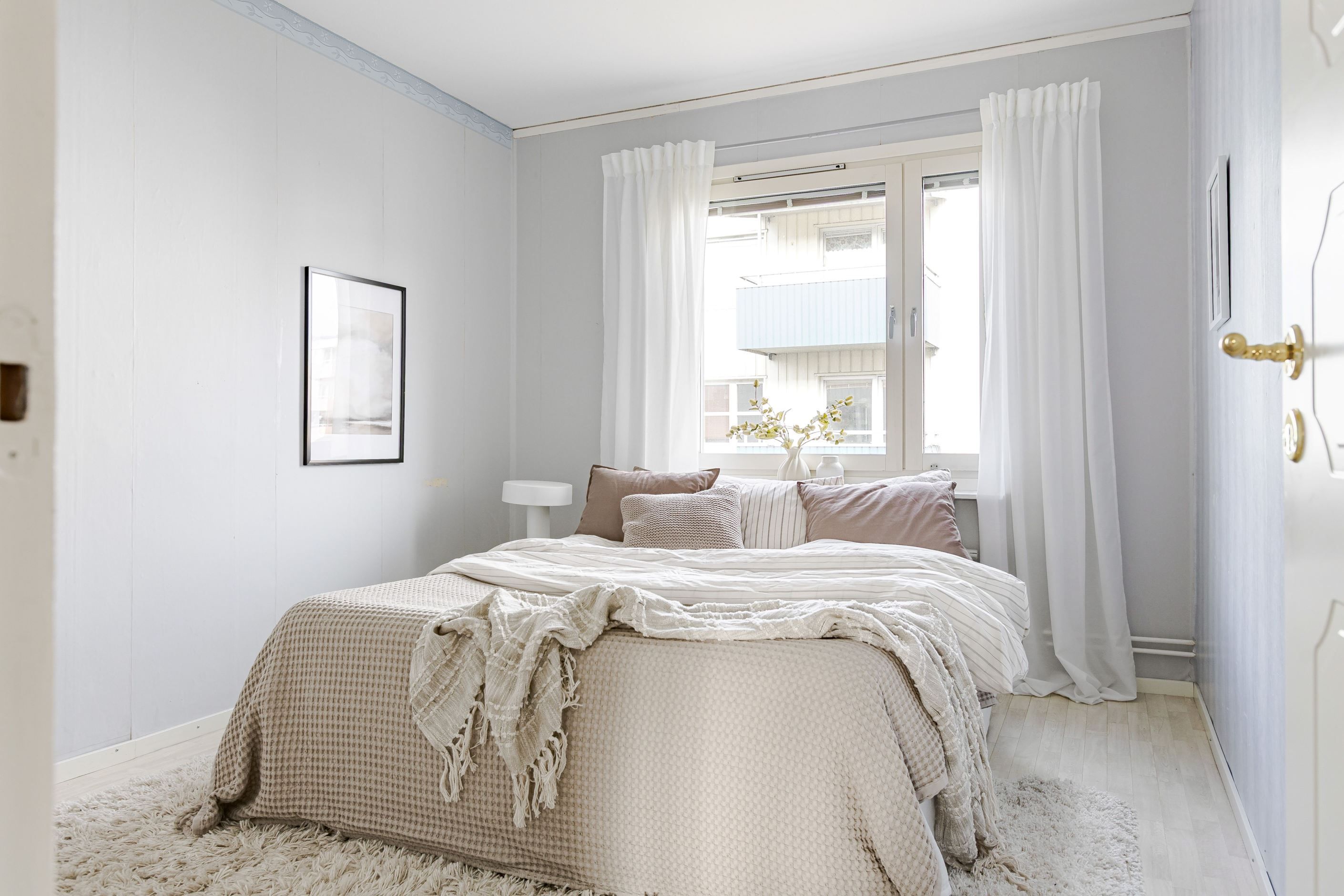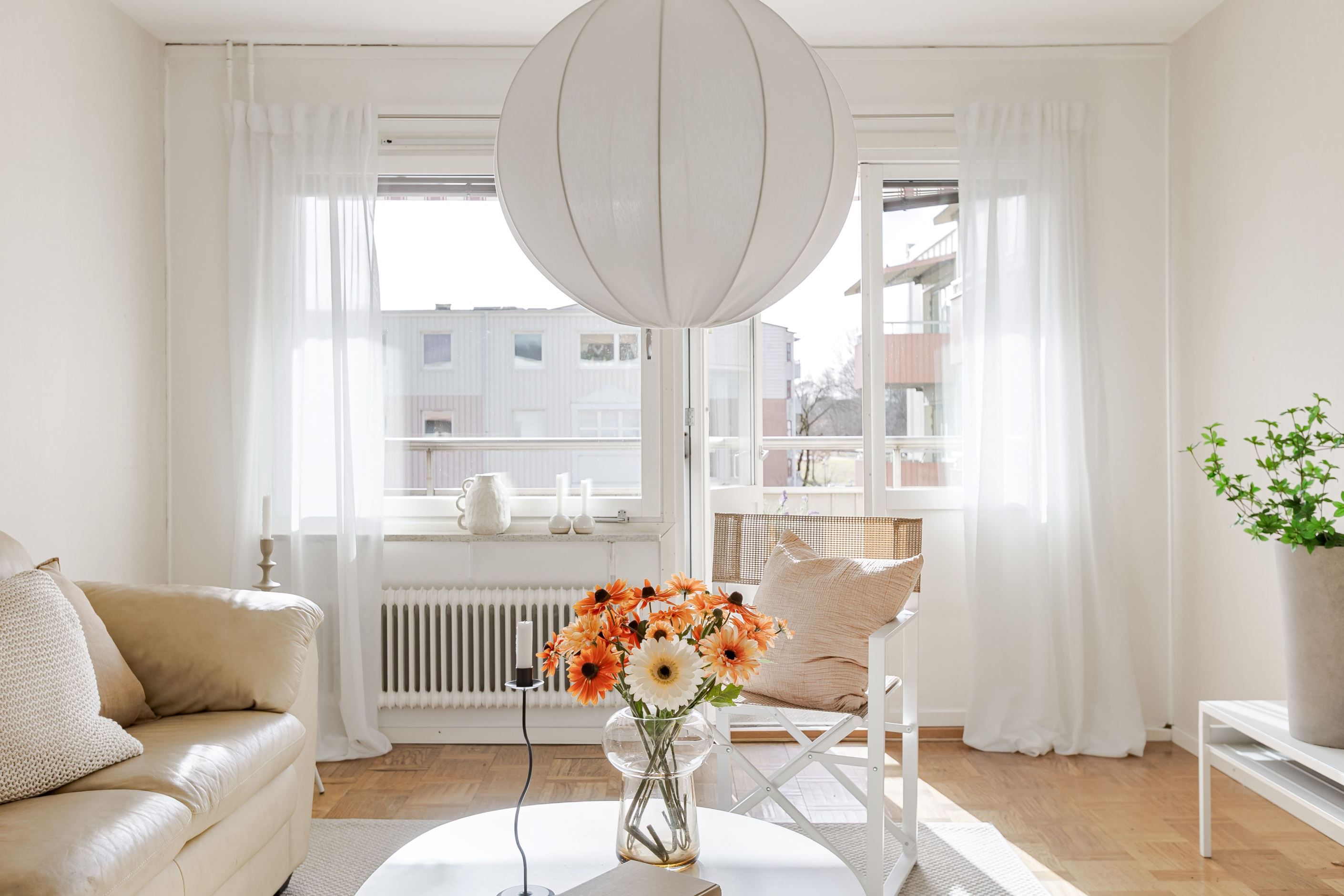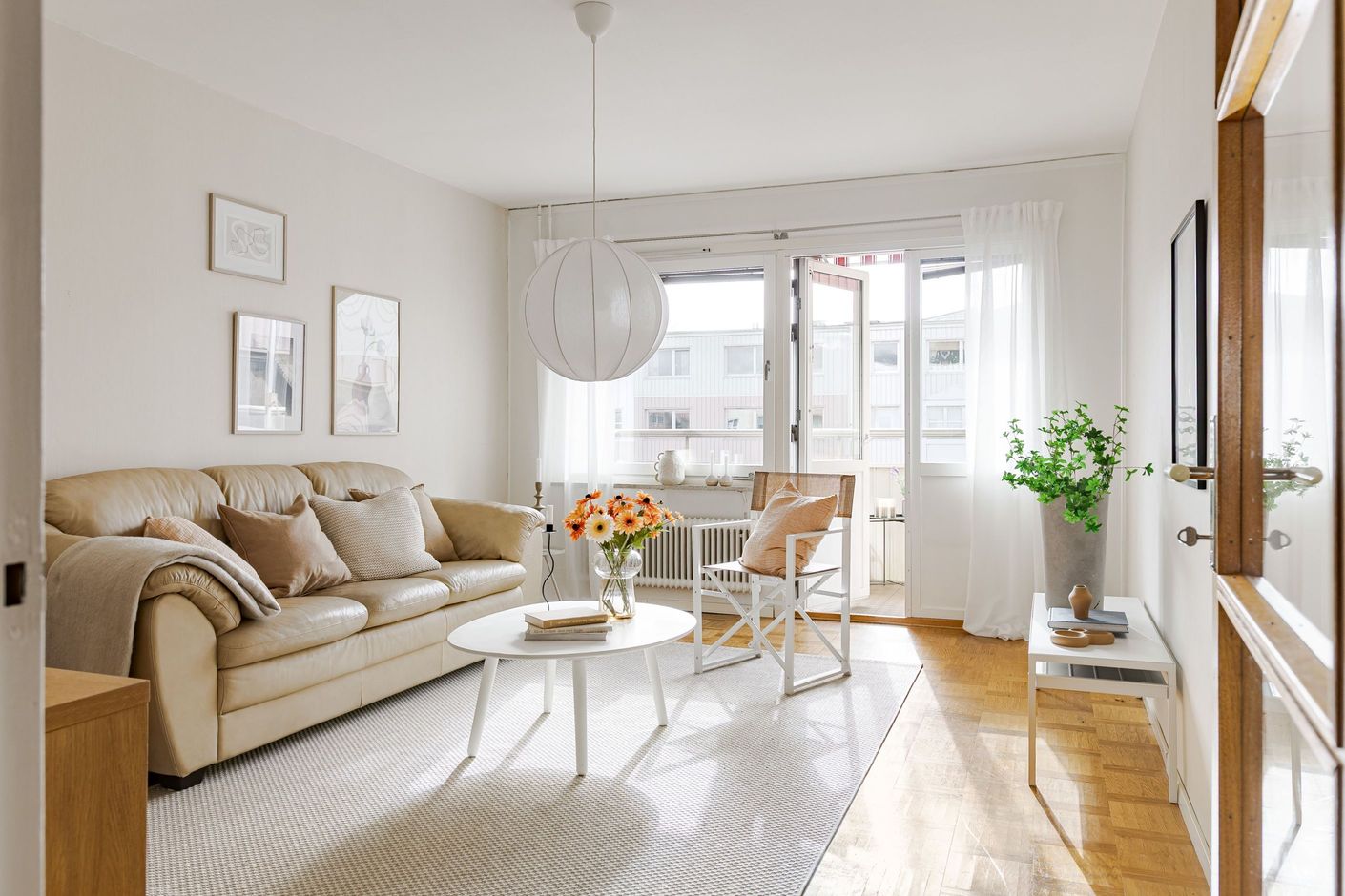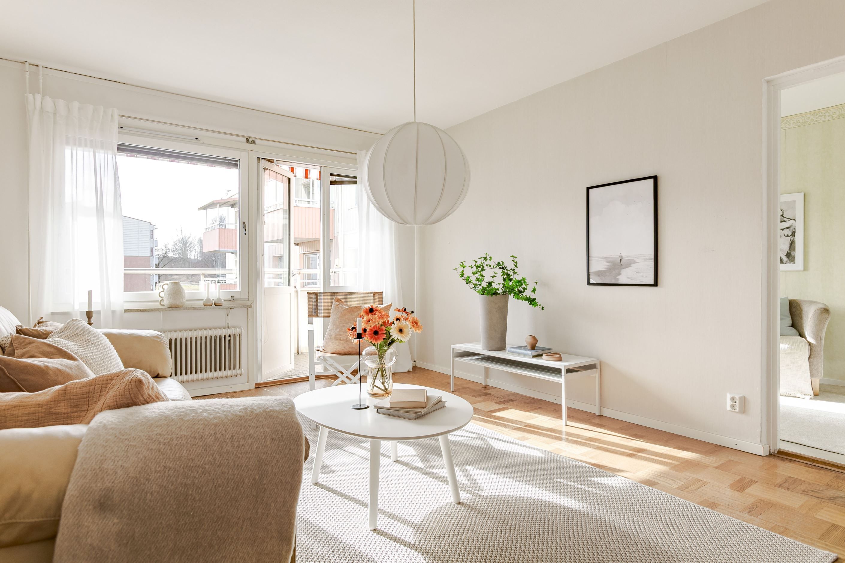 Köket är funktionellt och charmigt med sina platsbyggda lösningar som ger både karaktär och god förvaring. Lägenheten erbjuder två rymliga sovrum med gott om plats för både säng och förvaring, vilket gör bostaden idealisk för såväl paret som den lilla familjen. Det luftiga vardagsrummet blir en naturlig samlingspunkt i hemmet och härifrån nås även den soliga balkongen. Fräscht och fint helkaklat badrum utrustat med tvättmaskin, vilket ger en bekväm vardag.