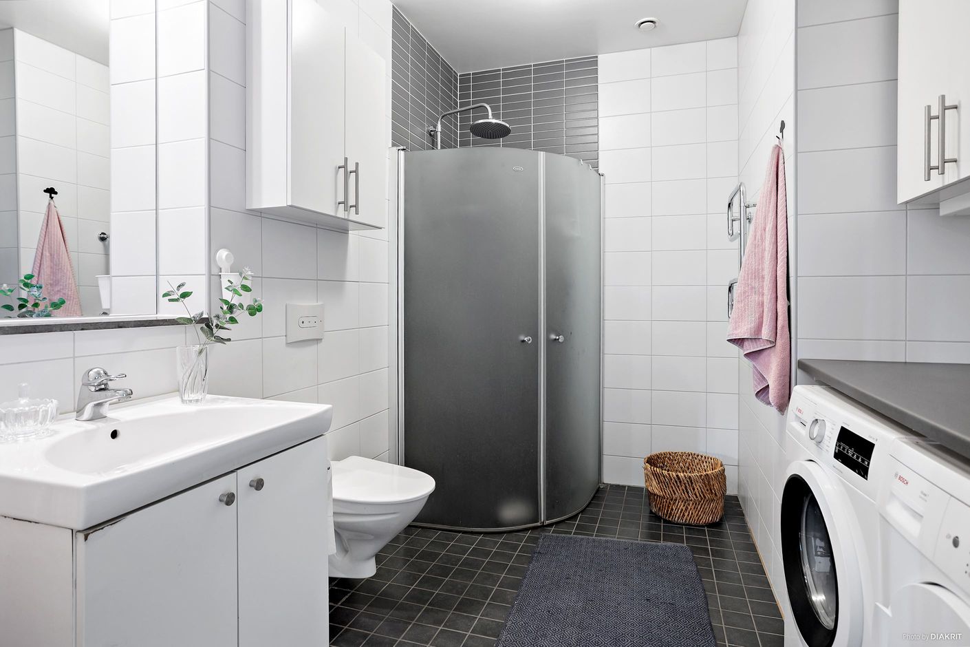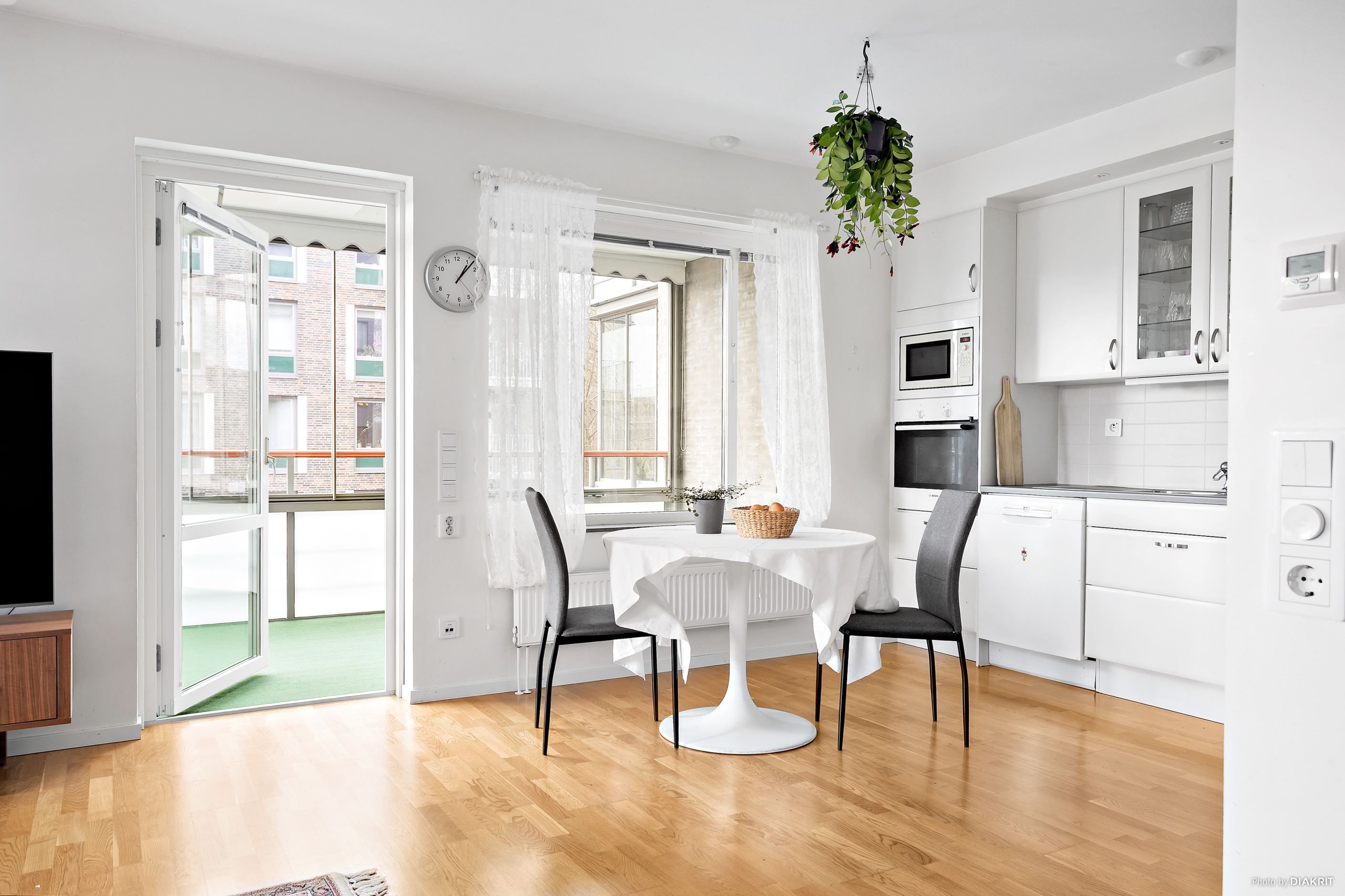 Köket är modernt och utrustat med diskmaskin, ugn, mikro samt kyl och frys. Sovrummet är rymligt och harmoniskt med plats för både säng och förvaringsmöbler, dessutom finns en praktisk walk in closet som ger gott om utrymme för kläder och förvaring. Badrummet är fräscht och har både tvättmaskin och torktumlare vilket gör vardagen smidigare. Den inglasade balkongen blir som ett extra rum där du kan njuta av solen, koppla av med en bok eller dricka morgonkaffet i lugn och ro.