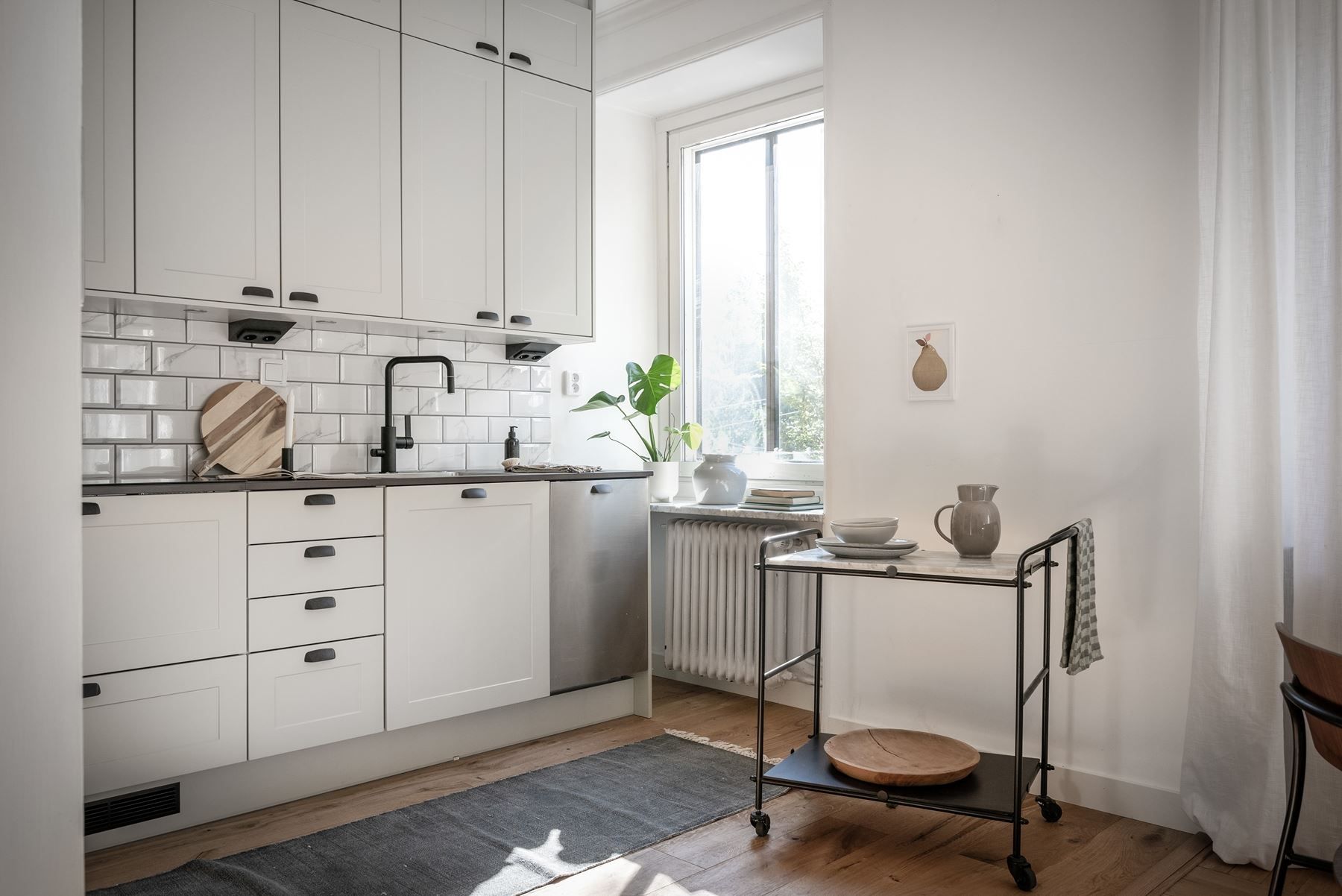 Charmig tvåa i bästa läge! Totalt nyrenoverat (helt oanvänt) kök i läcker grågrönt från exklusiva Puustelli med dyra vitvaror som exempelvis AEGs induktionshäll med inbyggd fläkt. Självklart bjuder bostaden på en takhöjd om två komma åtta meter och tillsammans med den öppna planlösningen skapar en härligt luftig atmosfär. Självklart har du läcker trestavsparkett i ek från när huset byggdes, djupa fönsternischer och läckra takstrukaturer. Balkong i söderläge, rymligt badrum med tvättmaskin och gott om förvaringsmöjligheter är stora plus. Här bor du i ett av stadens bästa lägen med närhet till Avenyn, Ullevi, Göteborgs universitet och mycket mer. Stenkast till Liseberg! Tre minuters promenad till knutpunkten Korsvägen där de goda förbindelserna tar dig vart du vill. Föreningen är stabil med lokalintäkter och låga avgifter (bredband ingår). Hiss finns i fastigheten.
