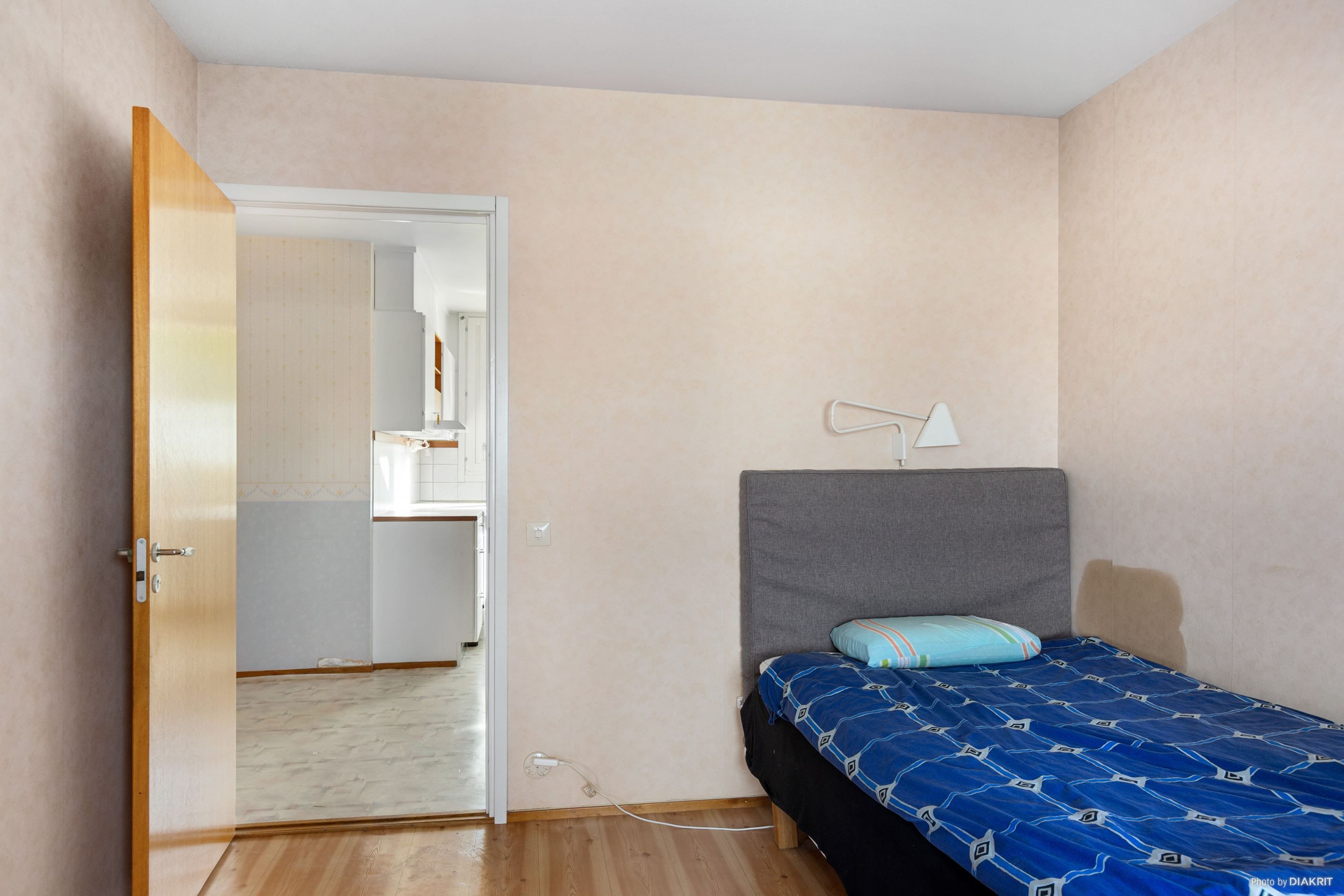 Sovrummet är rofyllt med gott om plats för både säng och förvaring. Fönstret ger ett behagligt ljusinsläpp. Badrummet är praktiskt utrustat med dusch och egen ny kombinerad tvättmaskin/torktumlare. En uppskattad detalj som underlättar vardagen.