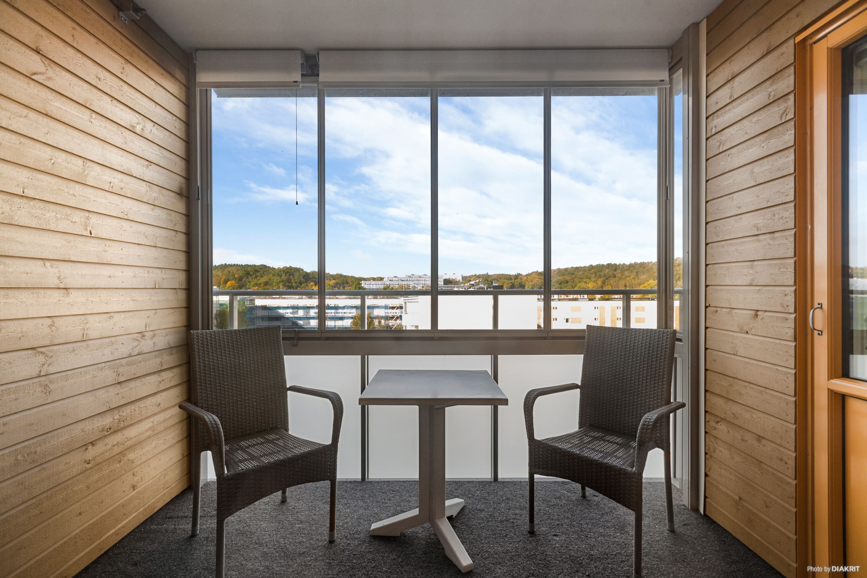 Lägenheten har en genomtänkt planlösning där vardagsrummet utgör bostadens nav. De stora fönsterpartierna ger rummet ett härligt ljusinsläpp och skapar en öppen och luftig känsla. Från vardagsrummet nås balkongen med sina skjutbara glaspartier, där du kan slå dig ner med morgonkaffet eller njuta av utsikten långt in på hösten.