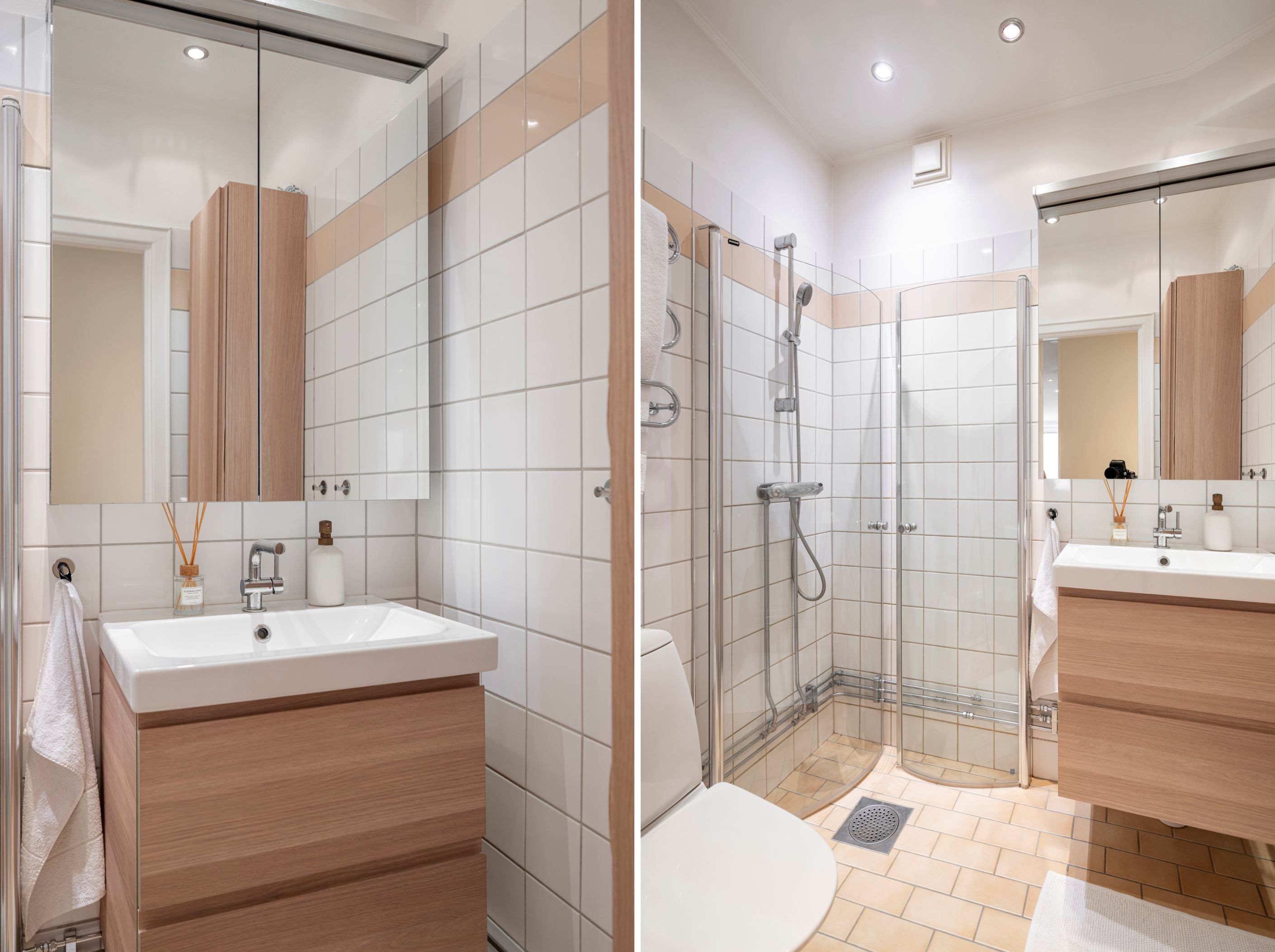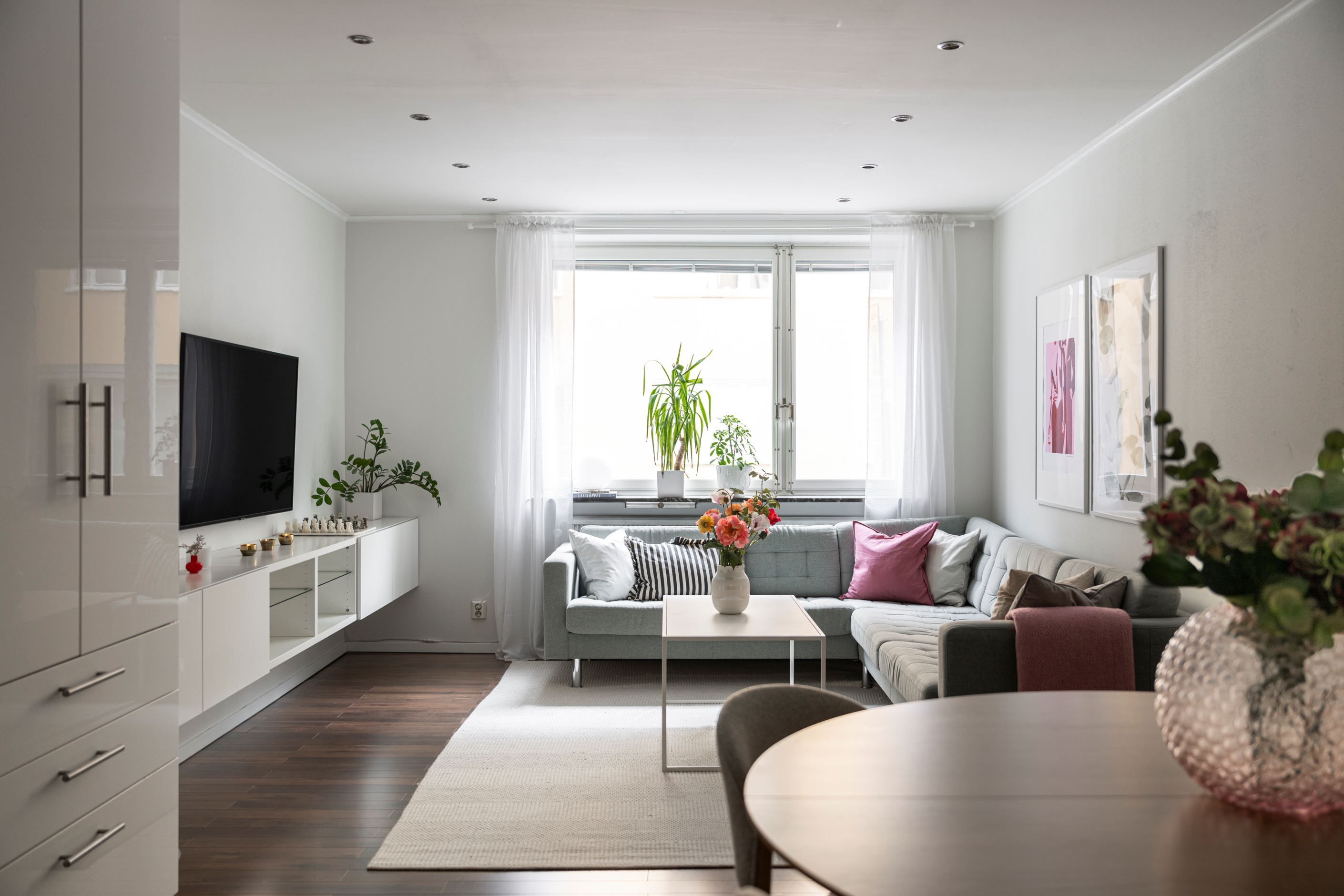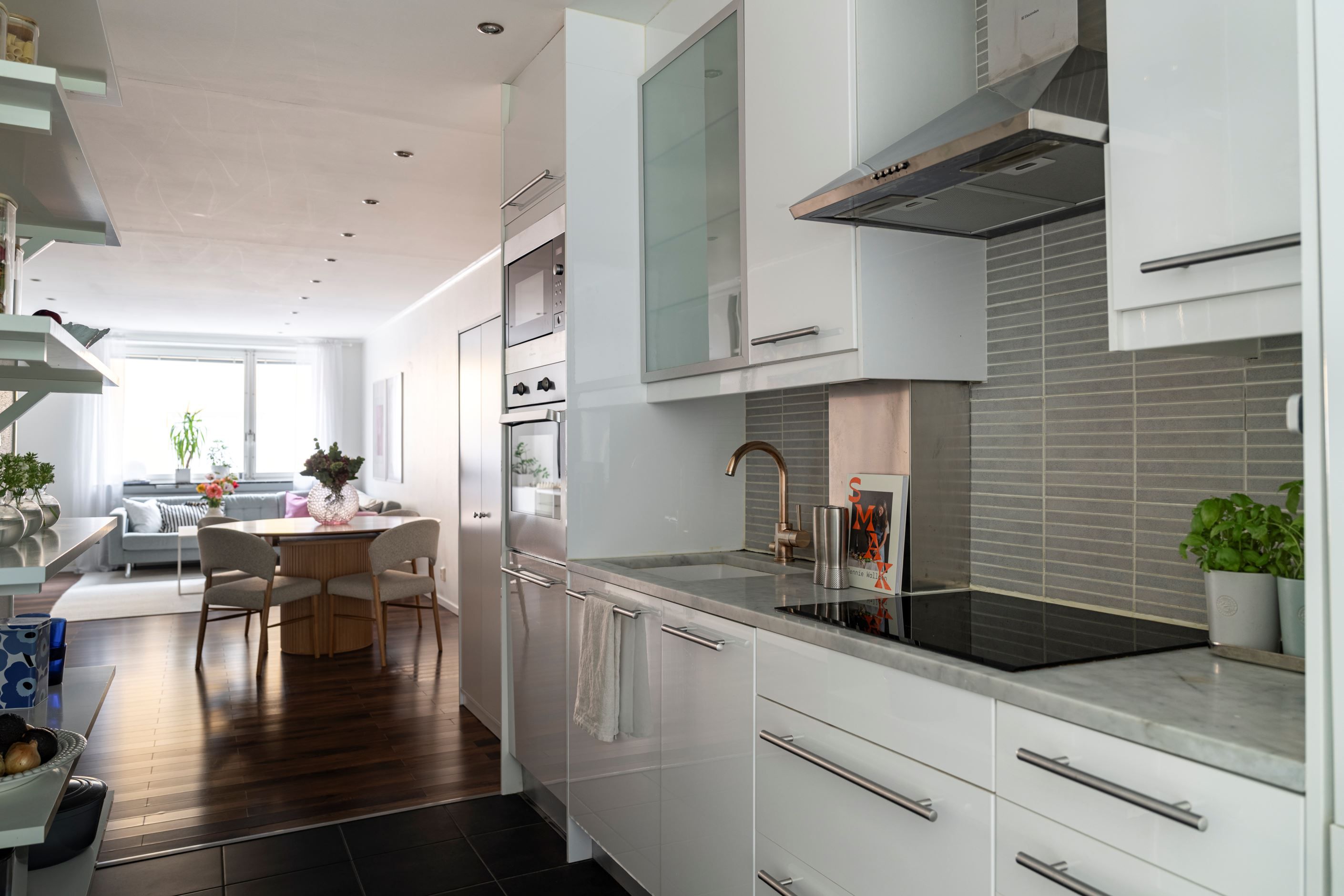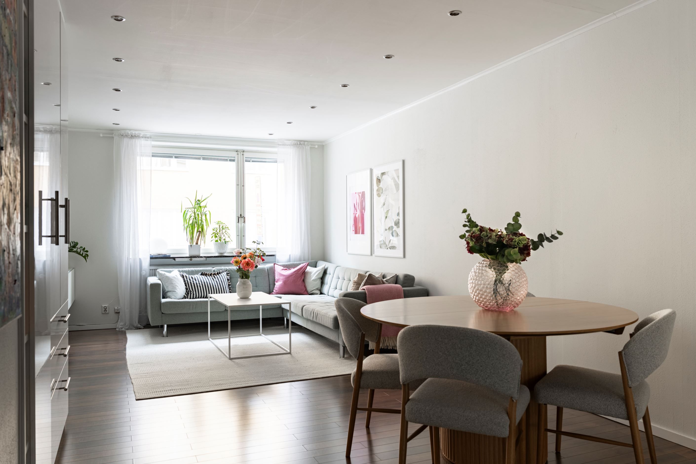 Här erbjuds en perfekt tvåa på en attraktiv adress – ett hem som kombinerar stil, komfort och ett fantastiskt läge. Lägenheten är genomgående och har stora fönsterpartier som släpper in rikligt med ljus, vilket förstärks av de fina ljusa ytskikten och det stilfulla parkettgolvet som löper genom bostaden.