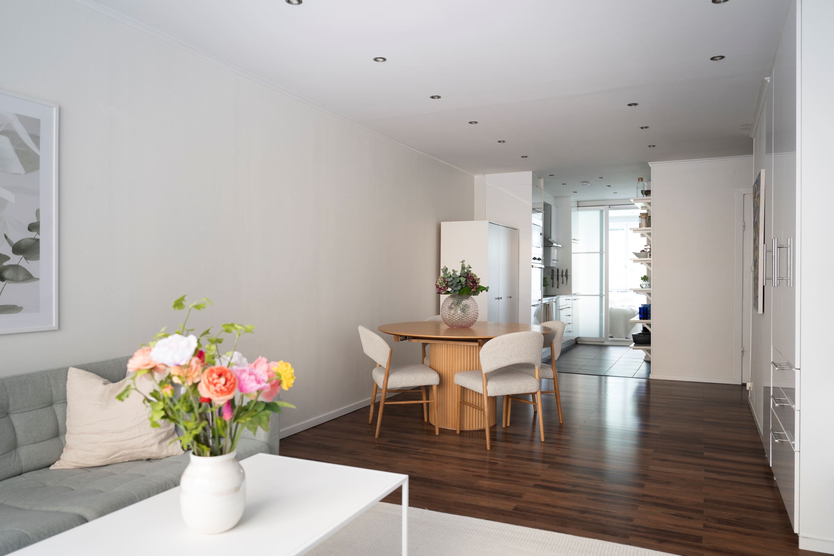 Ett hem som erbjuder det bästa av två världar – lugnet i en välplanerad bostad och pulsen från stadens utbud alldeles runt hörnet.