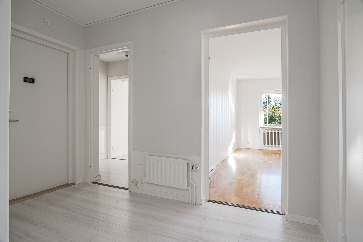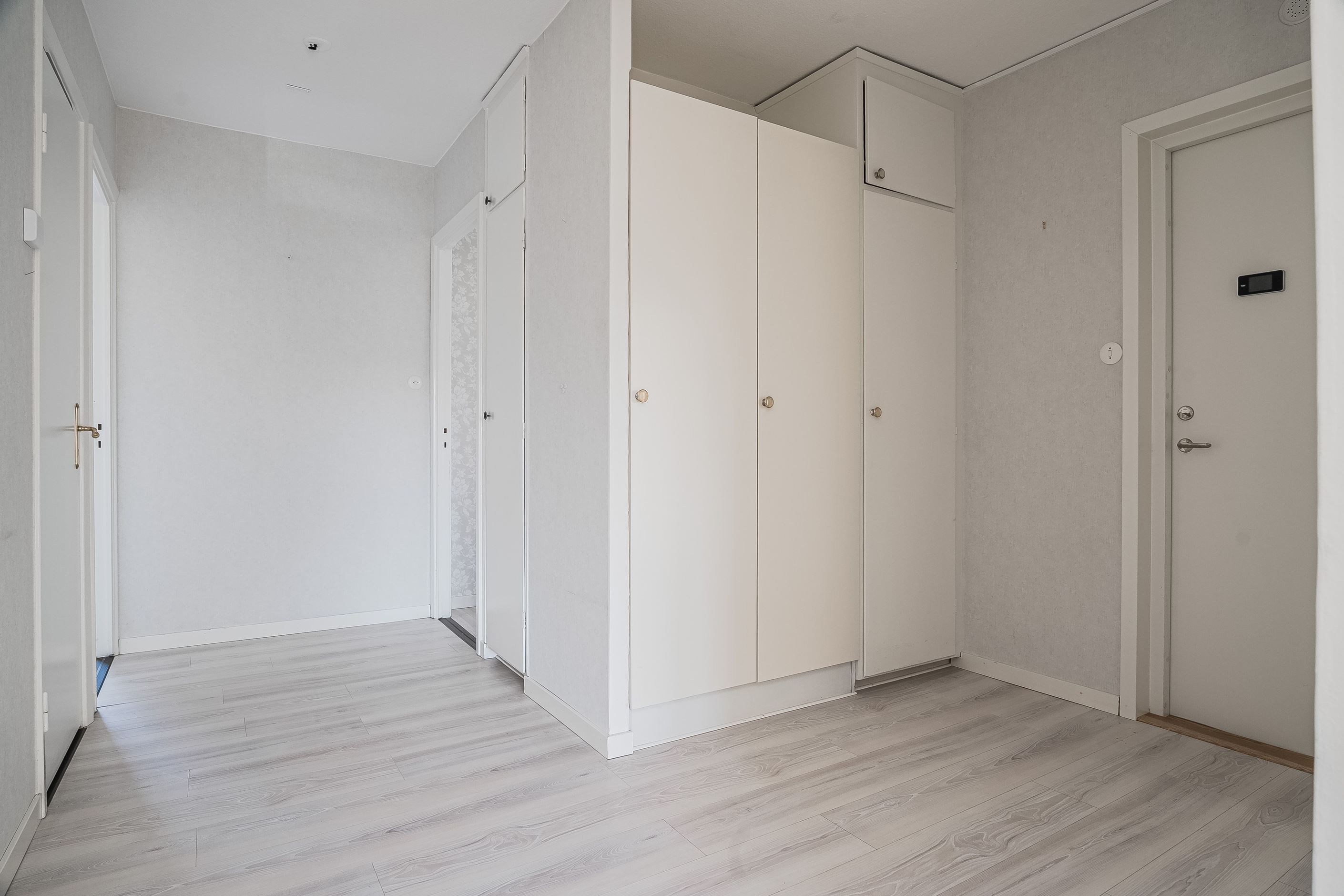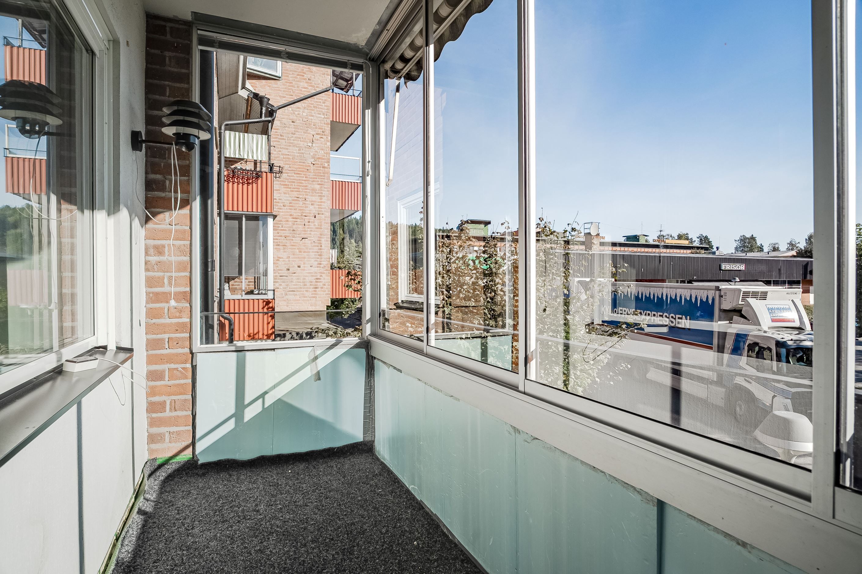 Den del som tidigare var en 1:a rymmer ett allrum, en liten kokvrå samt en separat wc – en fullt fungerande liten enhet i sig. Den tidigare 2:an erbjuder en välkomnande hall, ett rymligt vardagsrum med utgång till en inglasad balkong, ett sovrum, ett badrum, en klädkammare samt ett kök. Genomgående fina ytskikt gör att bostaden upplevs fräsch och trivsam från första stund.