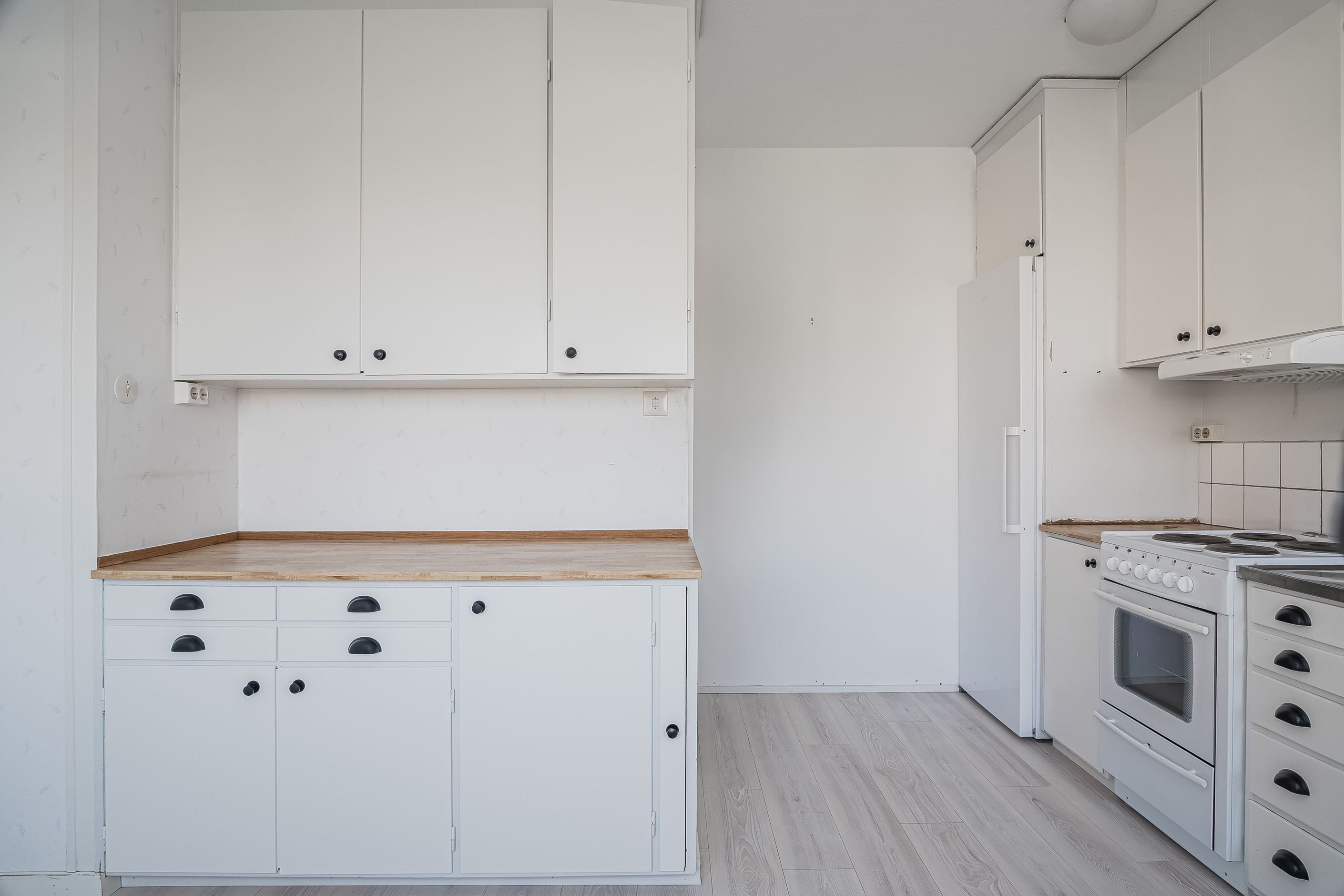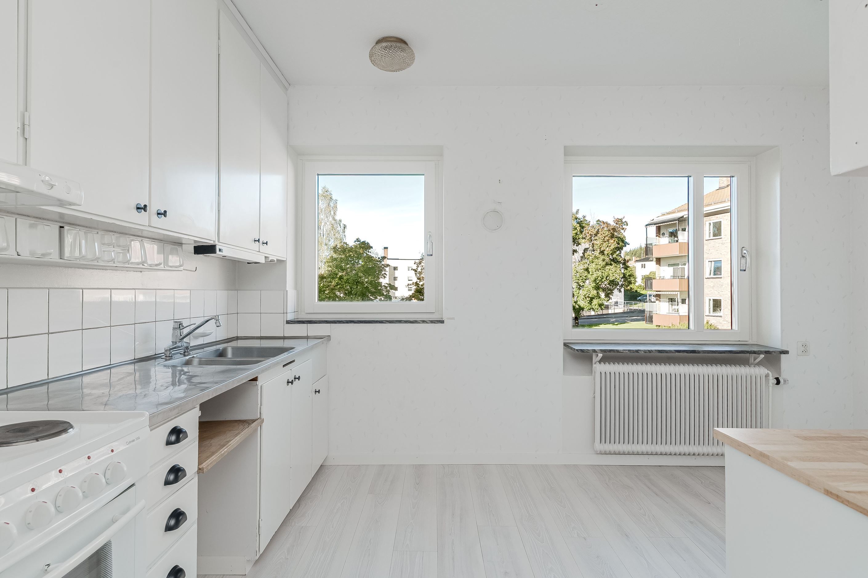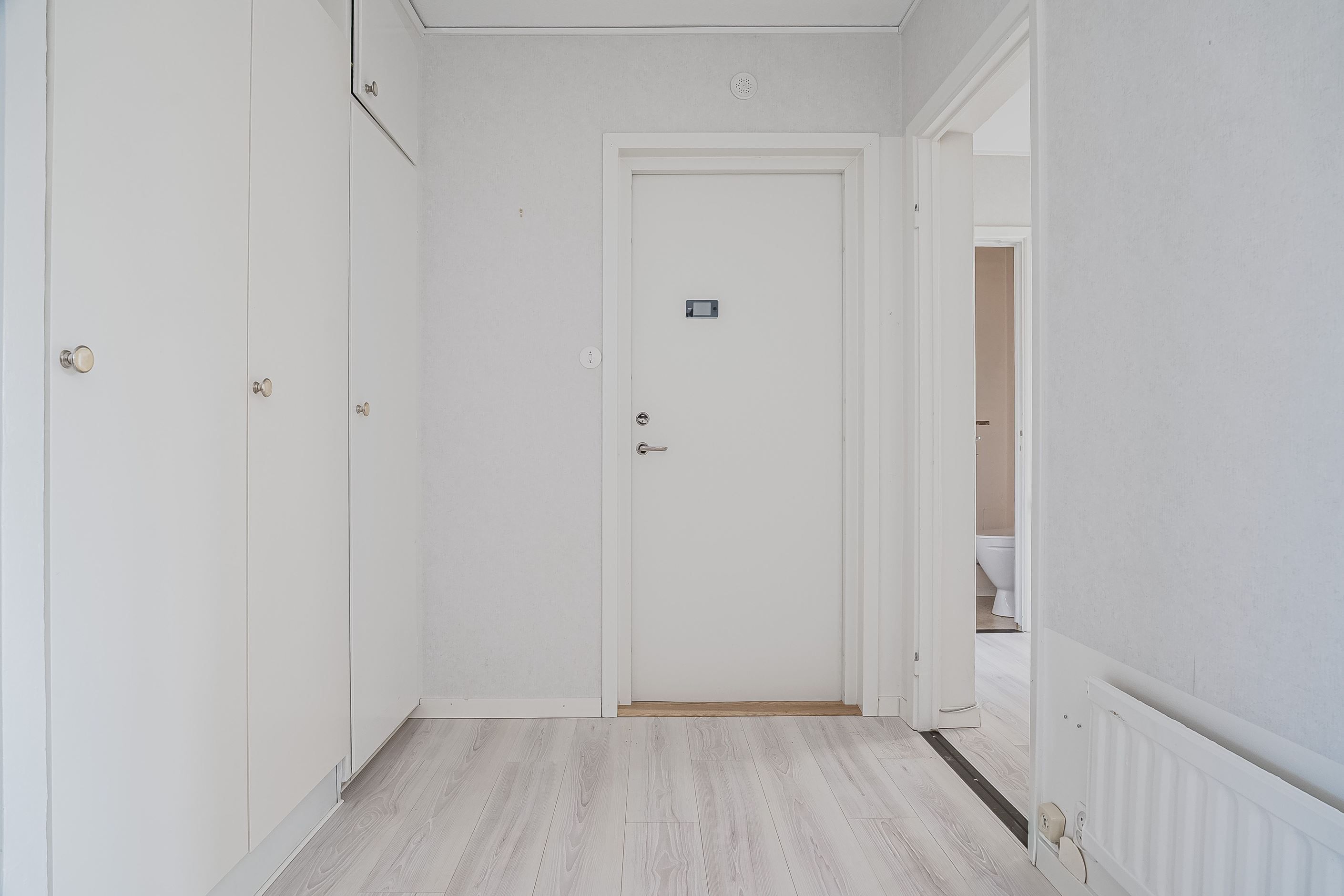 Den del som tidigare var en 1:a rymmer ett allrum, en liten kokvrå samt en separat wc – en fullt fungerande liten enhet i sig. Den tidigare 2:an erbjuder en välkomnande hall, ett rymligt vardagsrum med utgång till en inglasad balkong, ett sovrum, ett badrum, en klädkammare samt ett kök. Genomgående fina ytskikt gör att bostaden upplevs fräsch och trivsam från första stund.