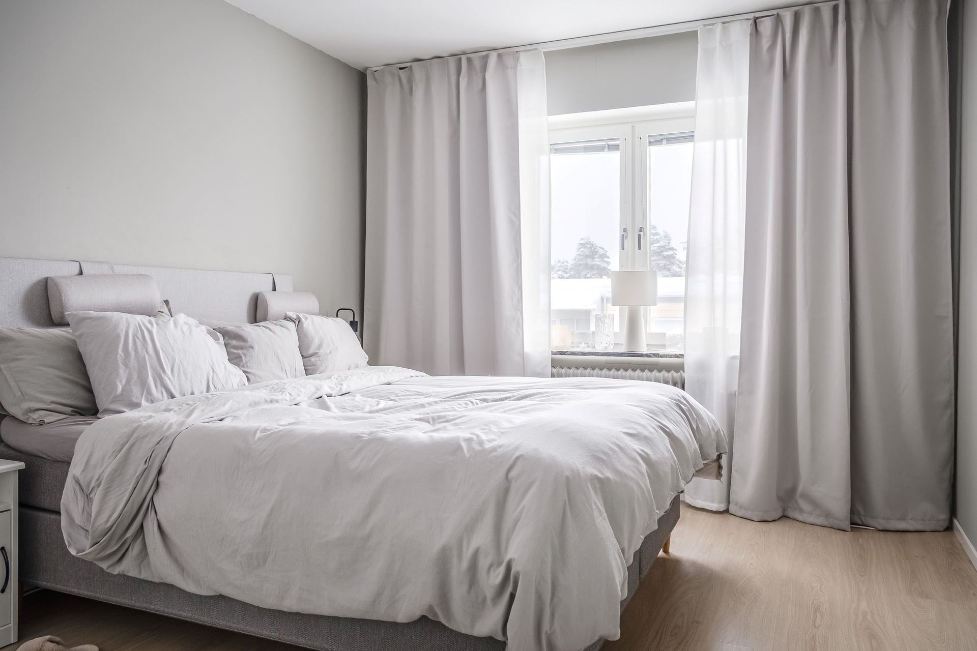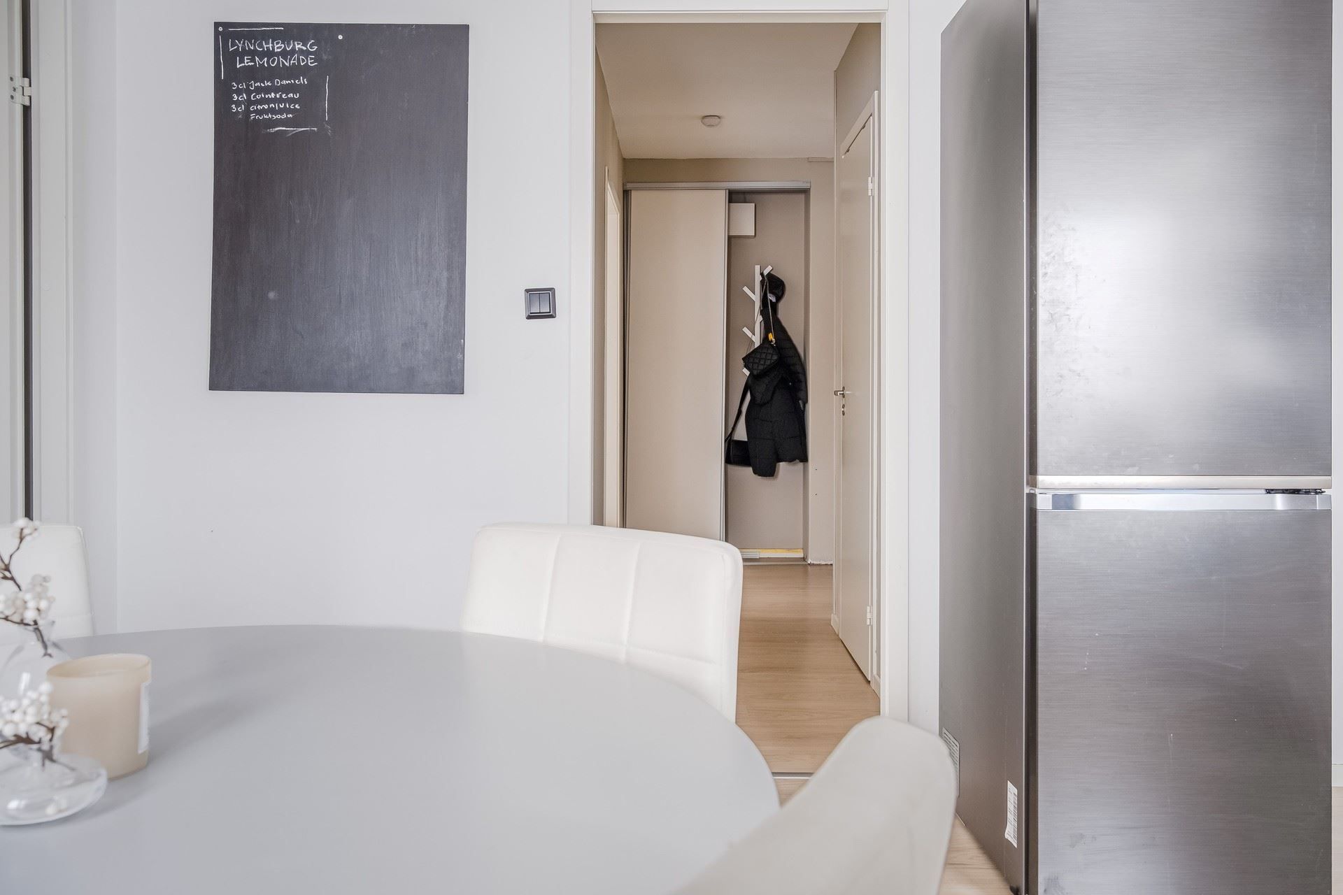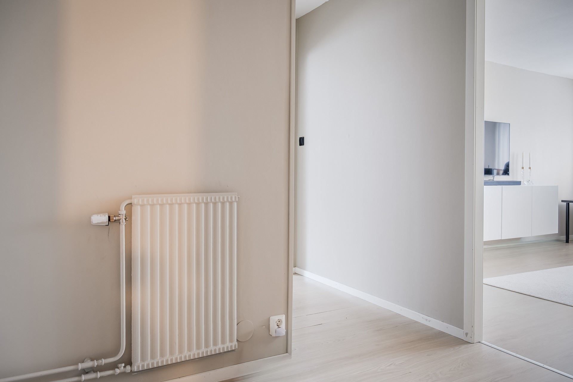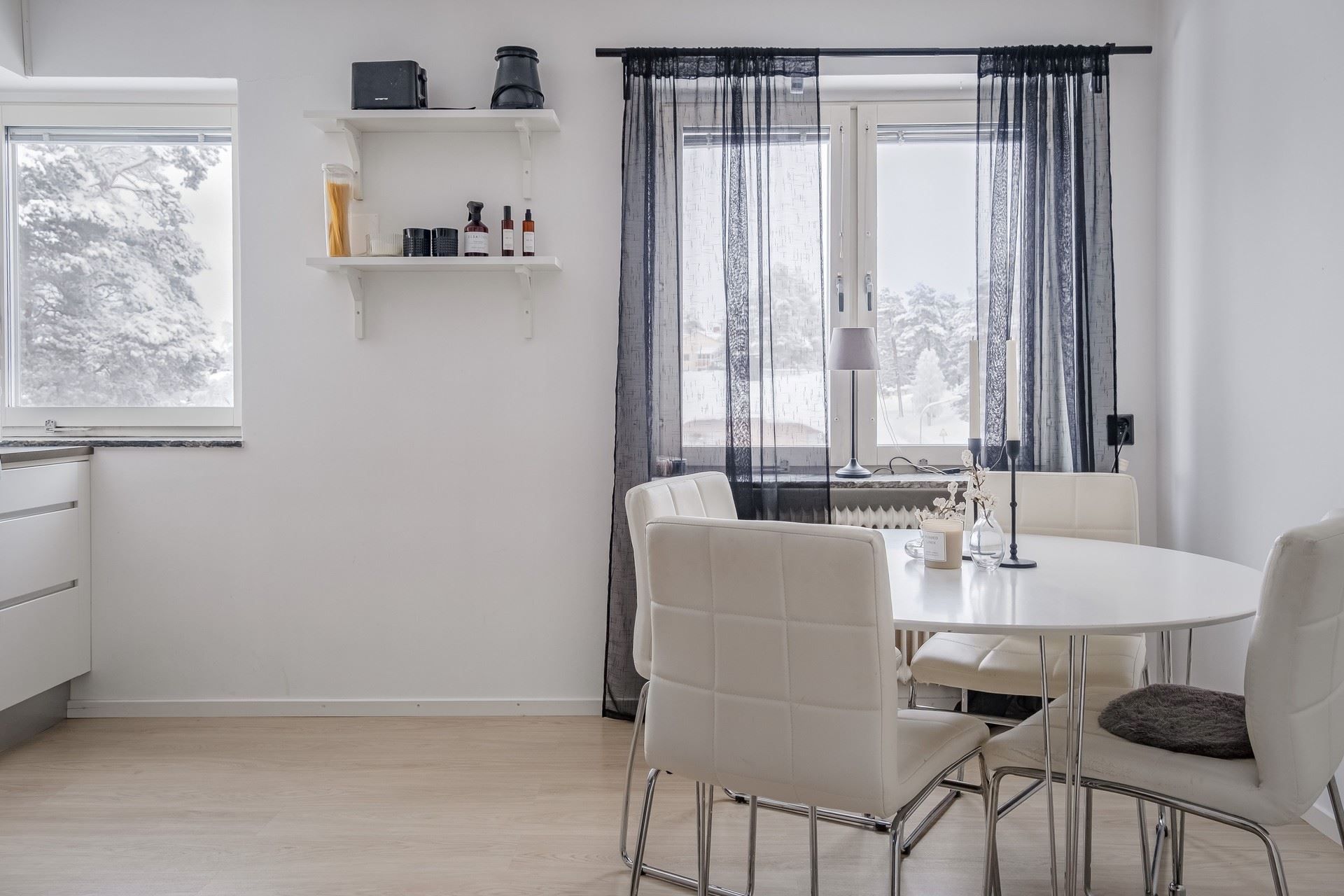Bostaden har genomgående ljusa ytskikt och fina golv som skapar en enhetlig och modern känsla som genomsyrar hela hemmet.