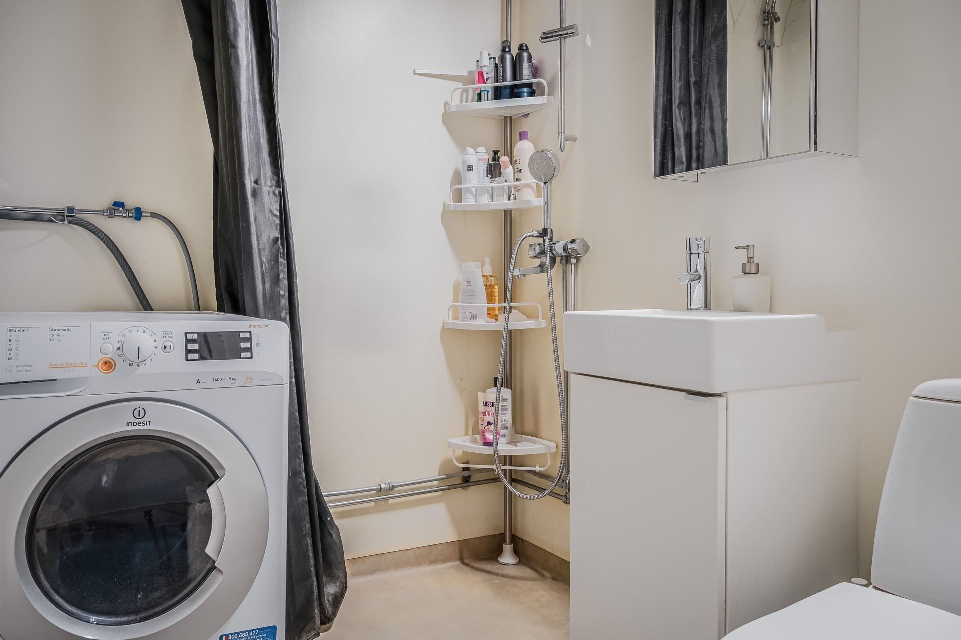 Badrummet är funktionellt med standardutrustning och tvättmaskin för extra bekvämlighet.
