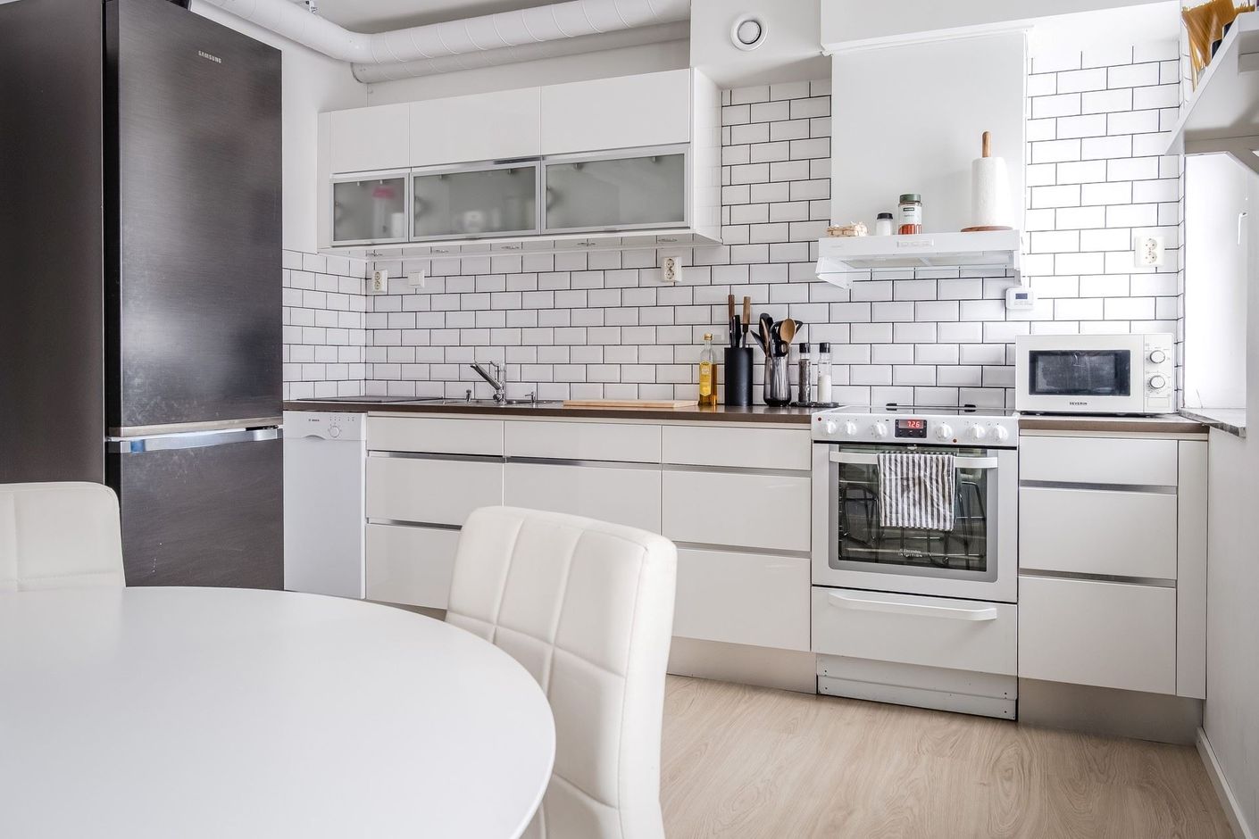 Köket bjuder in till en fräsch miljö för trevliga middagar med bra plats för matgrupp.