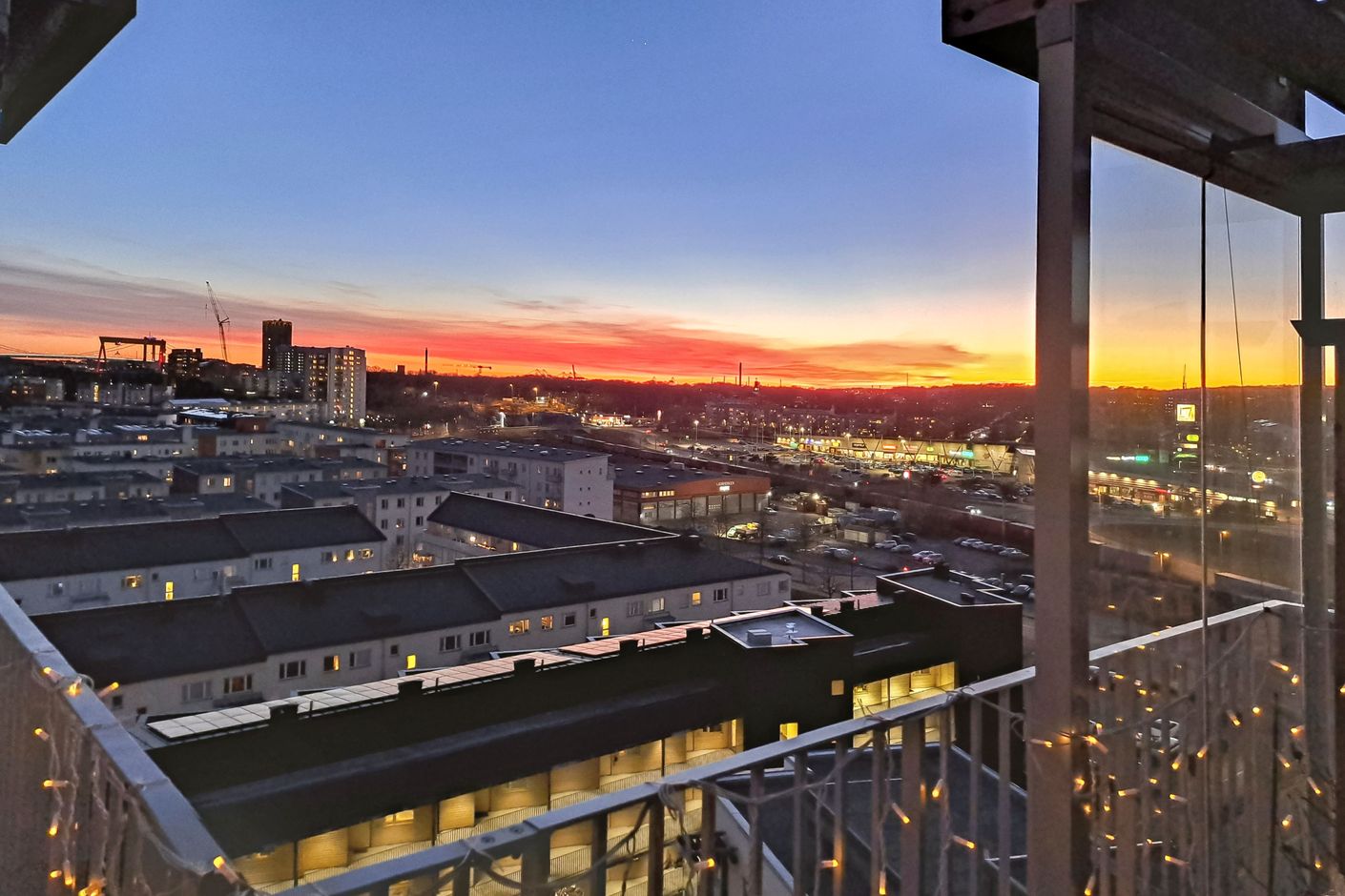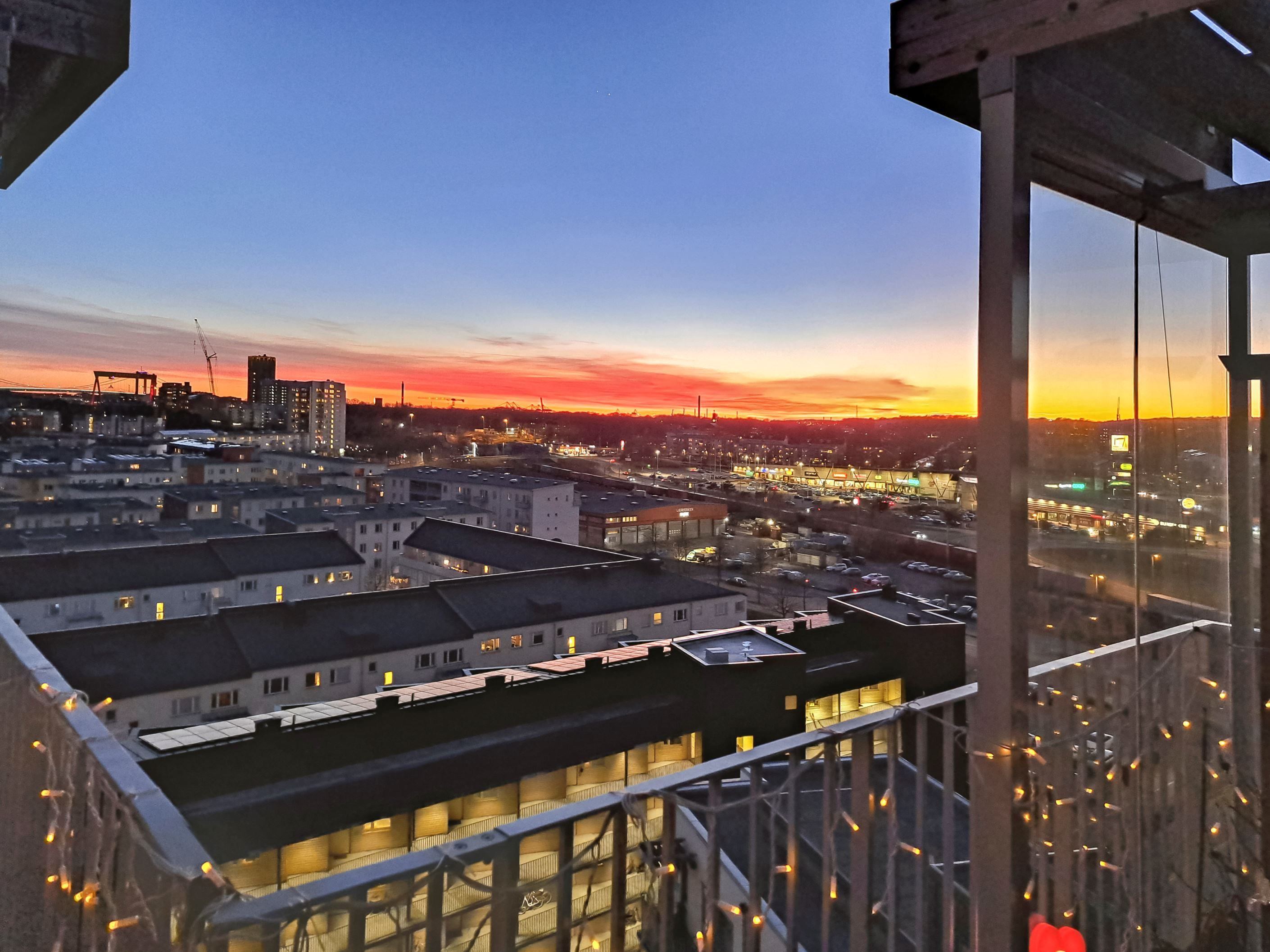 Lägenheten är belägen högst upp i huset och erbjuder ett insynsfritt boende med fantastiskt ljusinsläpp. Gavelläget i sydväst skapar en ljus och luftig atmosfär med storslagna vyer och magiska solnedgångar. Balkongen är generös och rymmer flera möbleringsalternativ. Den är delvis inglasad i dag, och möjlighet finns att glasa in helt efter dialog med föreningen.