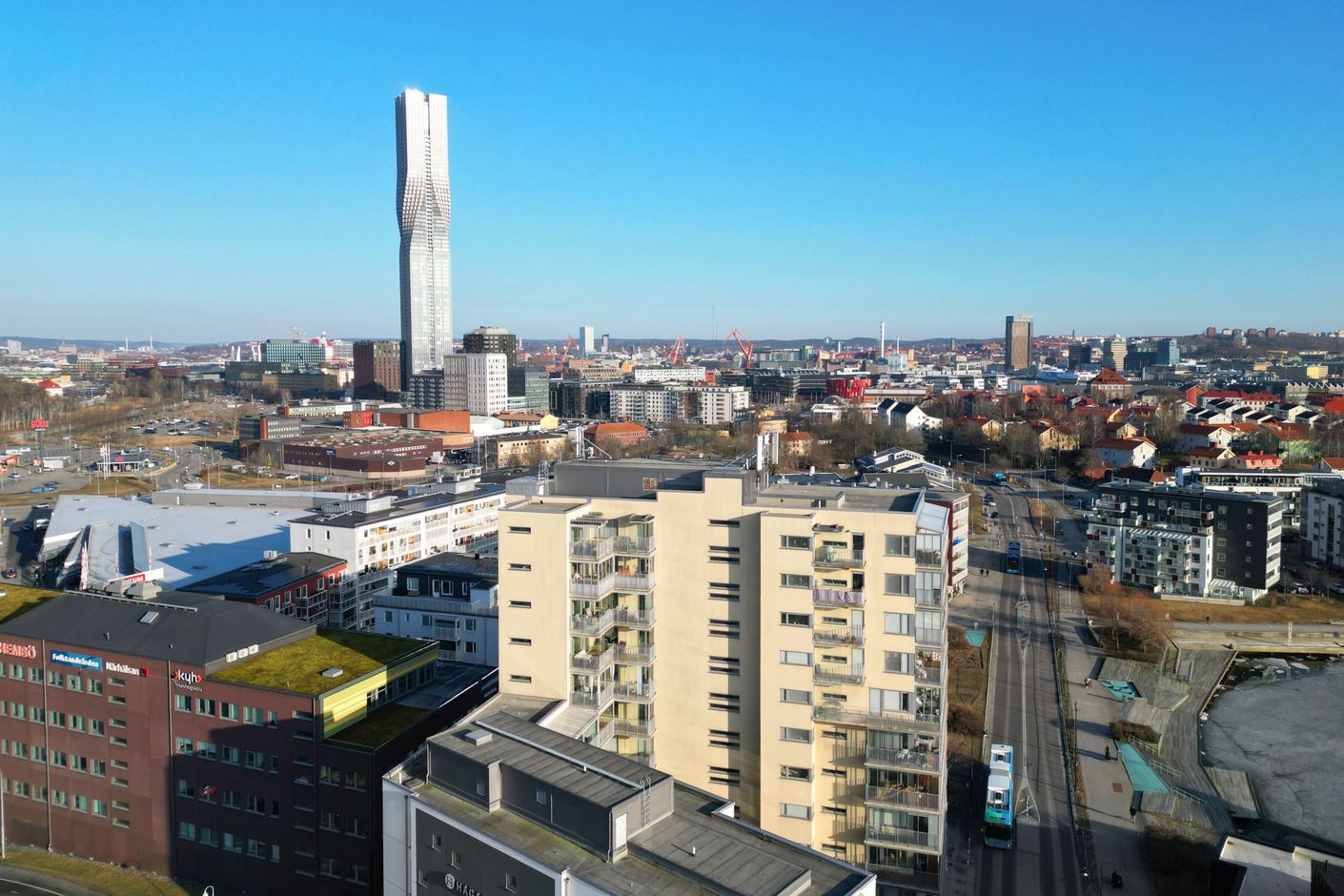Köket är fullt utrustat och erbjuder gott om plats för både matbord eller köksö. Den halvöppna planlösningen skapar en naturlig kontakt med vardagsrummet, som i sin tur erbjuder generösa ytor och flexibla möbleringsmöjligheter. Sovrummen är placerade i varsin del av bostaden – en idealisk lösning för familj med äldre barn eller för gäster. Från det större sovrummet har du fin utsikt mot centrala Göteborg. Badrummet är helkaklat och utrustat med dusch samt en praktisk tvättavdelning.