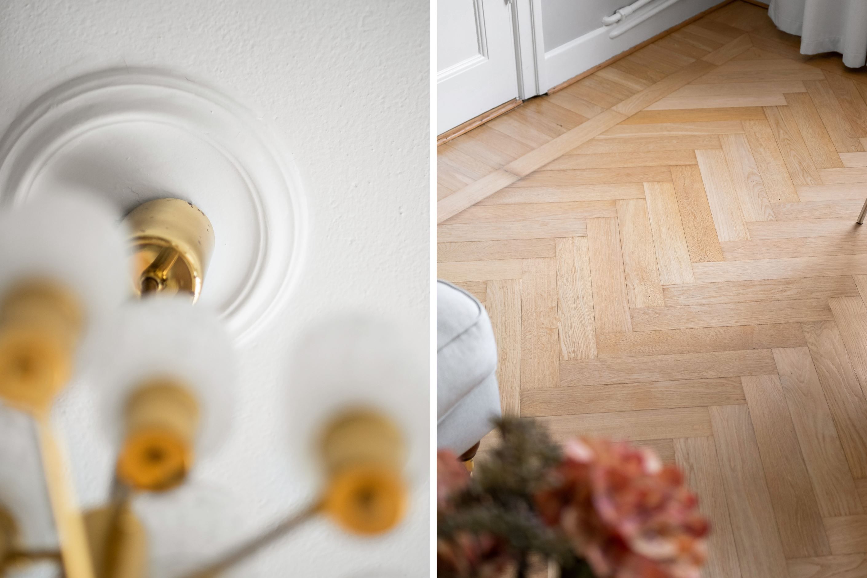 Bostaden är i mycket bra skick med genomgående eleganta materialval och fina ytskikt. Den vackra fiskbensparketten är slipad och tillsammans med generös takhöjd, speglade dörrar och elegant takrosett skapas en tidstypisk och exklusiv känsla. De stora spröjsade fönstren ger ett fantastiskt ljusinsläpp och förstärker den luftiga atmosfären ytterligare.