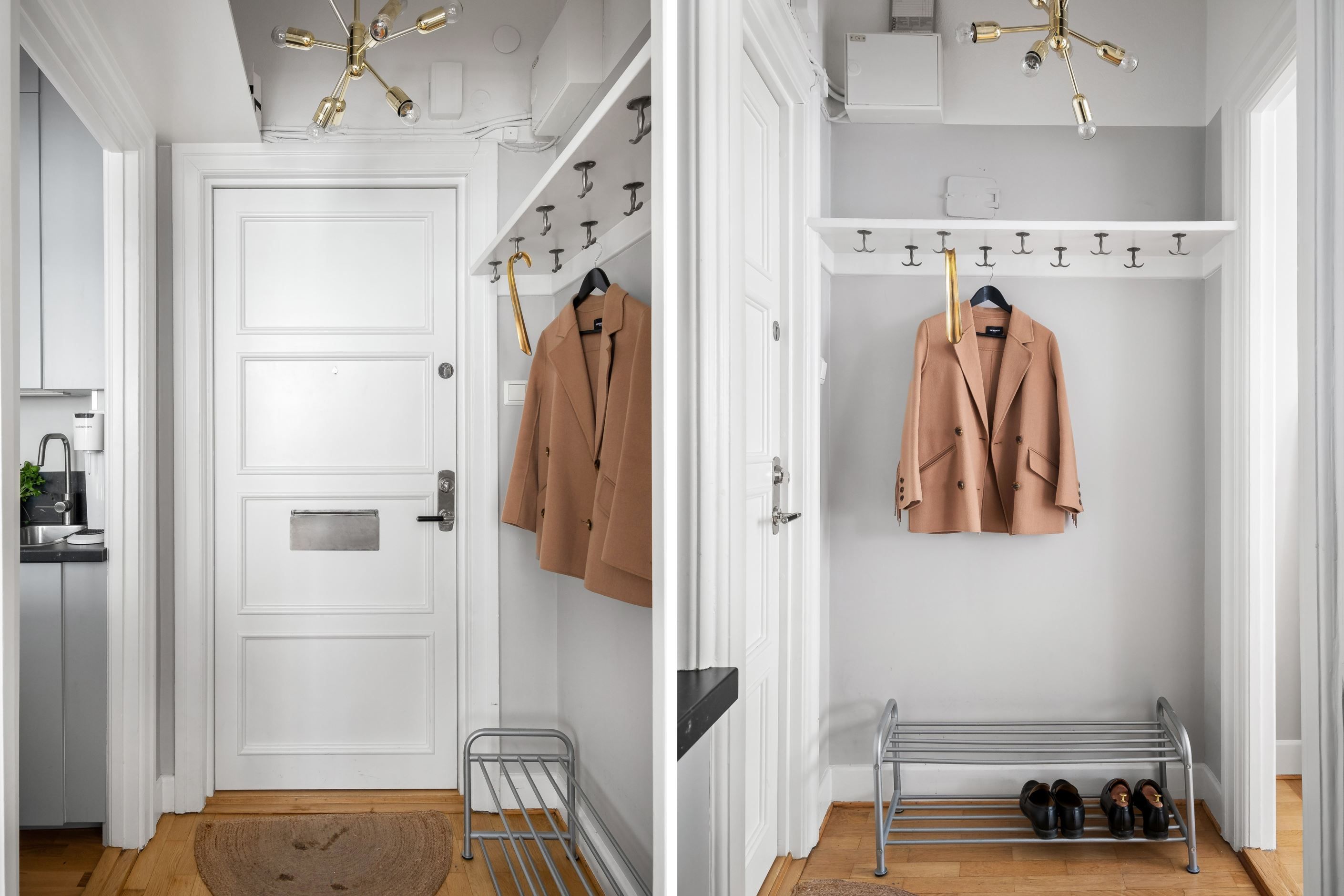 Bostaden disponeras med funktion av en 2:a tack vare smart planerade skjutdörrar som skapar ett avskilt sovrum när så önskas – en flexibel lösning som passar både singelhushållet och paret. Förvaringsmöjligheterna är generösa och väl genomtänkta.