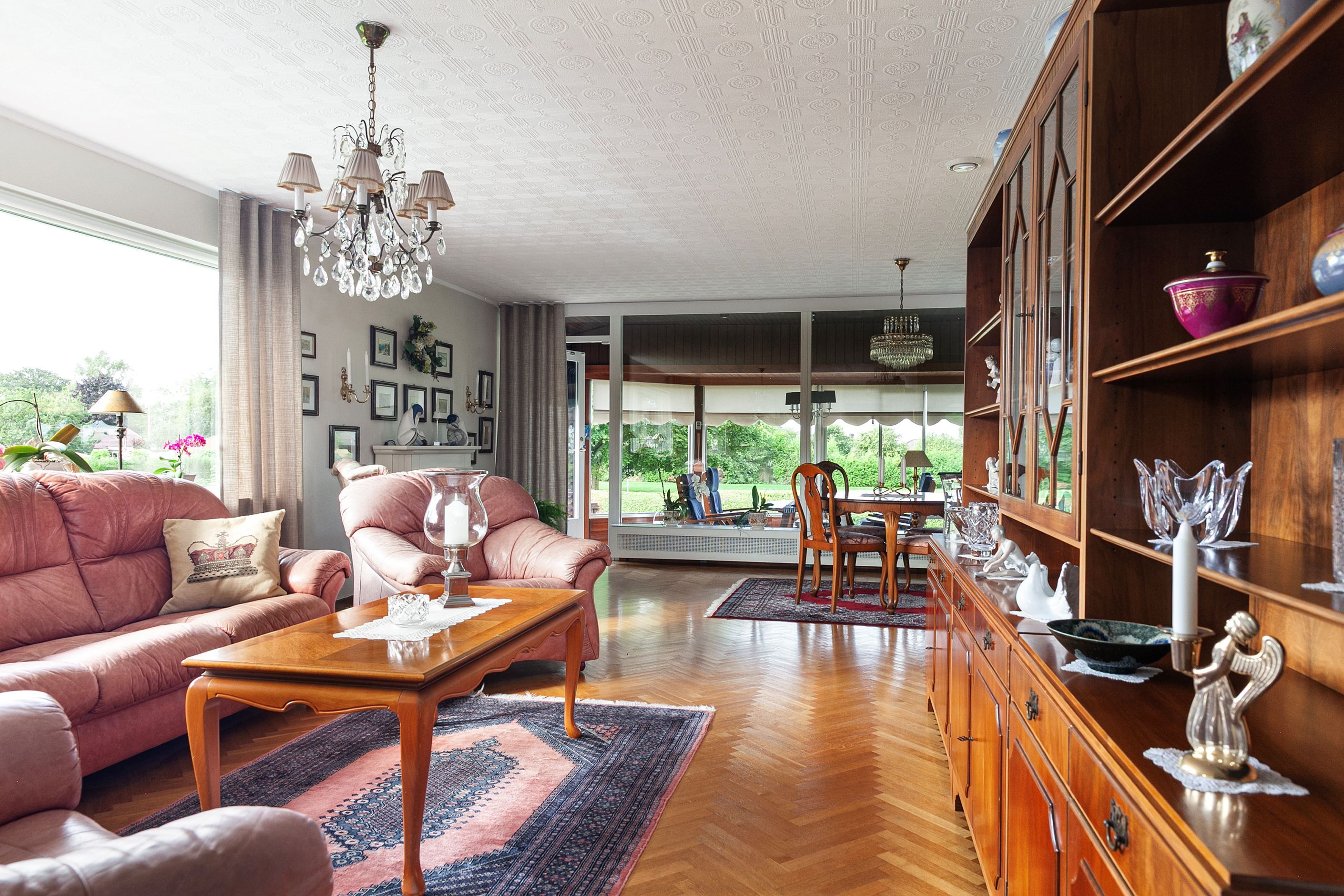 Villan uppfördes 1969 i tidstypisk stil med tegelfasad, betongpannetak och källargrund. Planlösningen är både praktisk och flexibel med stora rum och gott ljusinsläpp. Här finns plats för familjeliv, hemmakontor eller sociala middagar.