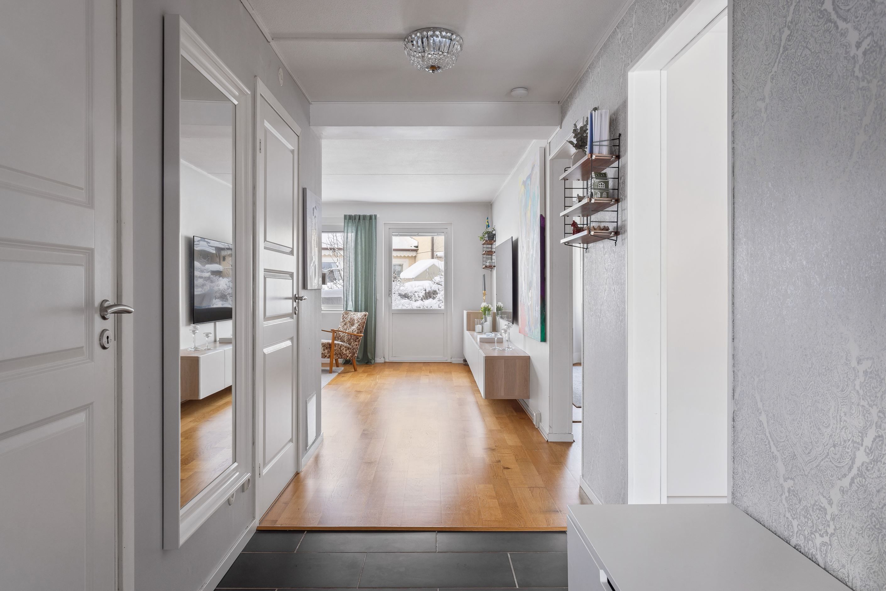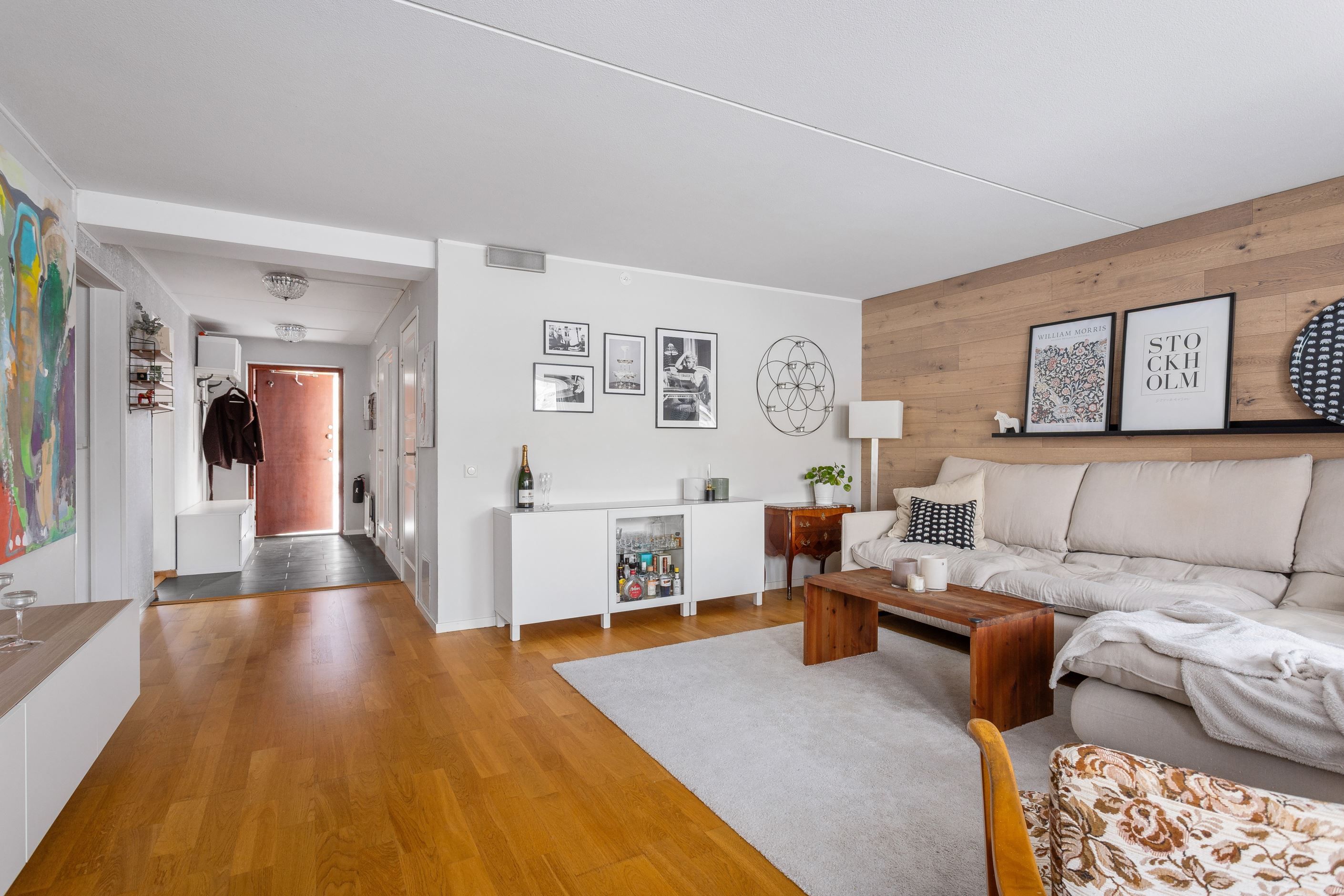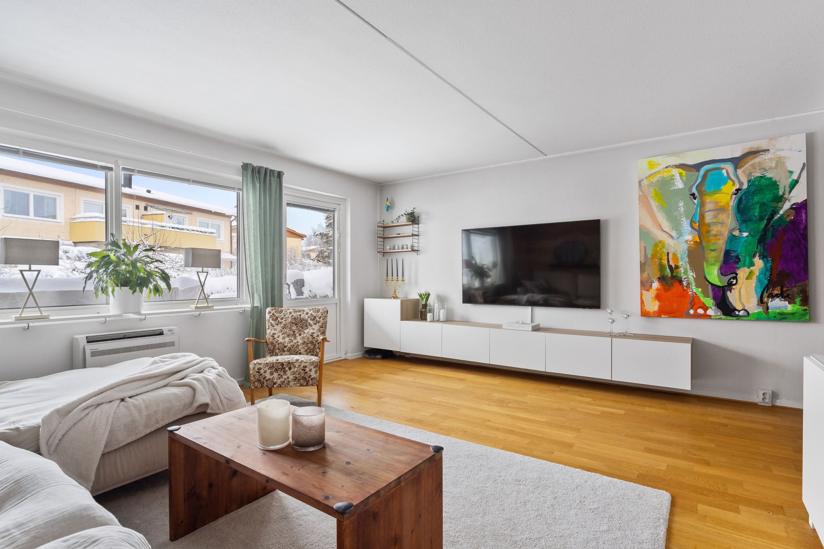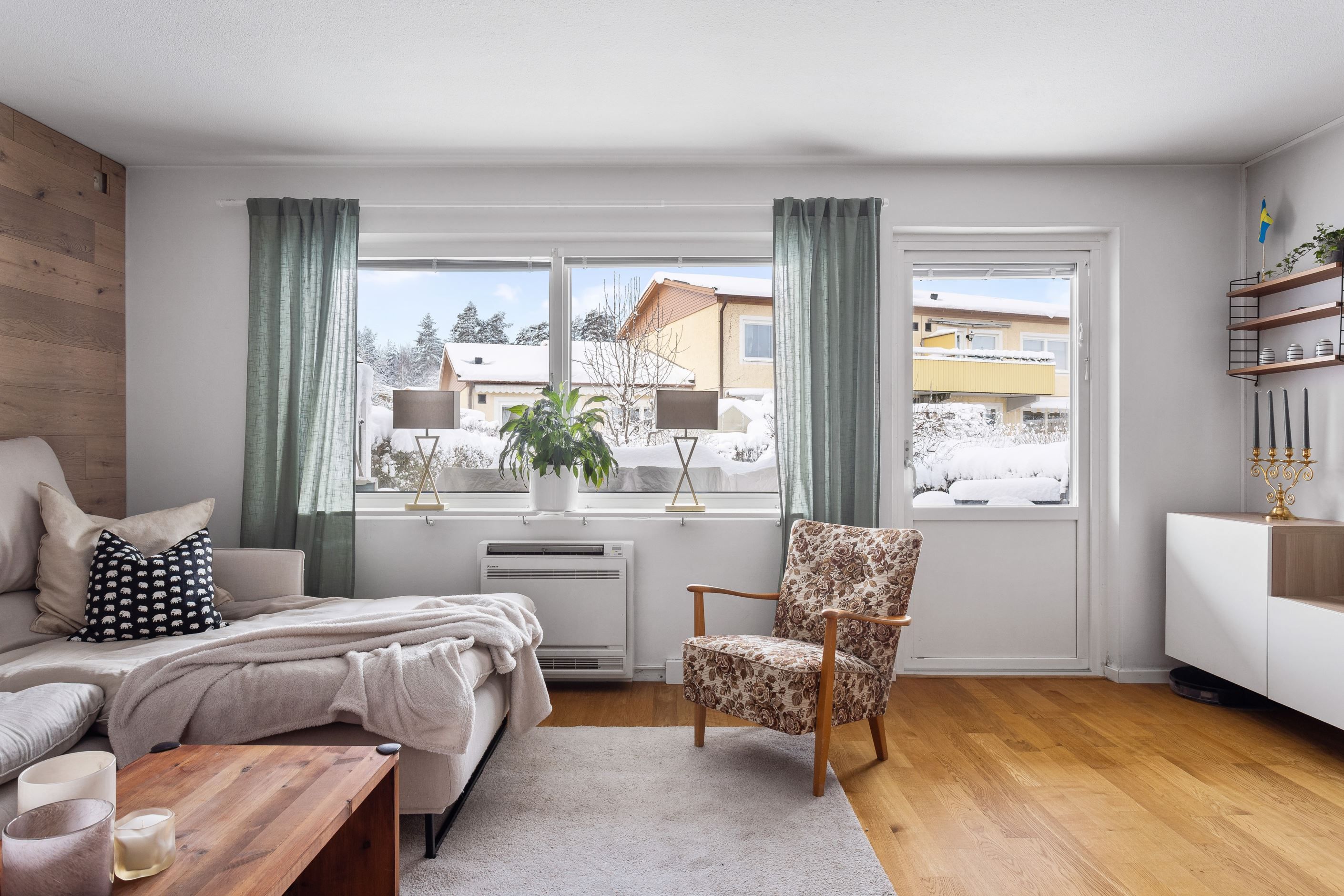 Äntligen en av dom stora 3:orna till salu - med en av dom största tomterna och med rätt solläge! Den stora baksidan vetter i perfekt sydvästläge, med kvällens solstrålar rakt in på altanen. Den stora altanen är utbyggd, för att få plats med både matbord och loungegrupp, och givetvis även grillen. Inbyggda spotlights i altanen gör att den är både mysig och upplevs exklusiv. Här finns också en stor gräsmatta, perfekt för dig som har barn eller hund och för dig som har odlingsdrömmar. Det fina äppelträdet ger goda äpplen. Invändigt erbjuds en renoverad lägenhet med genomgående ljusa stilrena materialval och ett helt nyrenoverat kök. Nuvarande ägare har bott i bostaden i 9år och fullkomligt stormtrivts, men i takt med att familjen växer behövs mer yta.