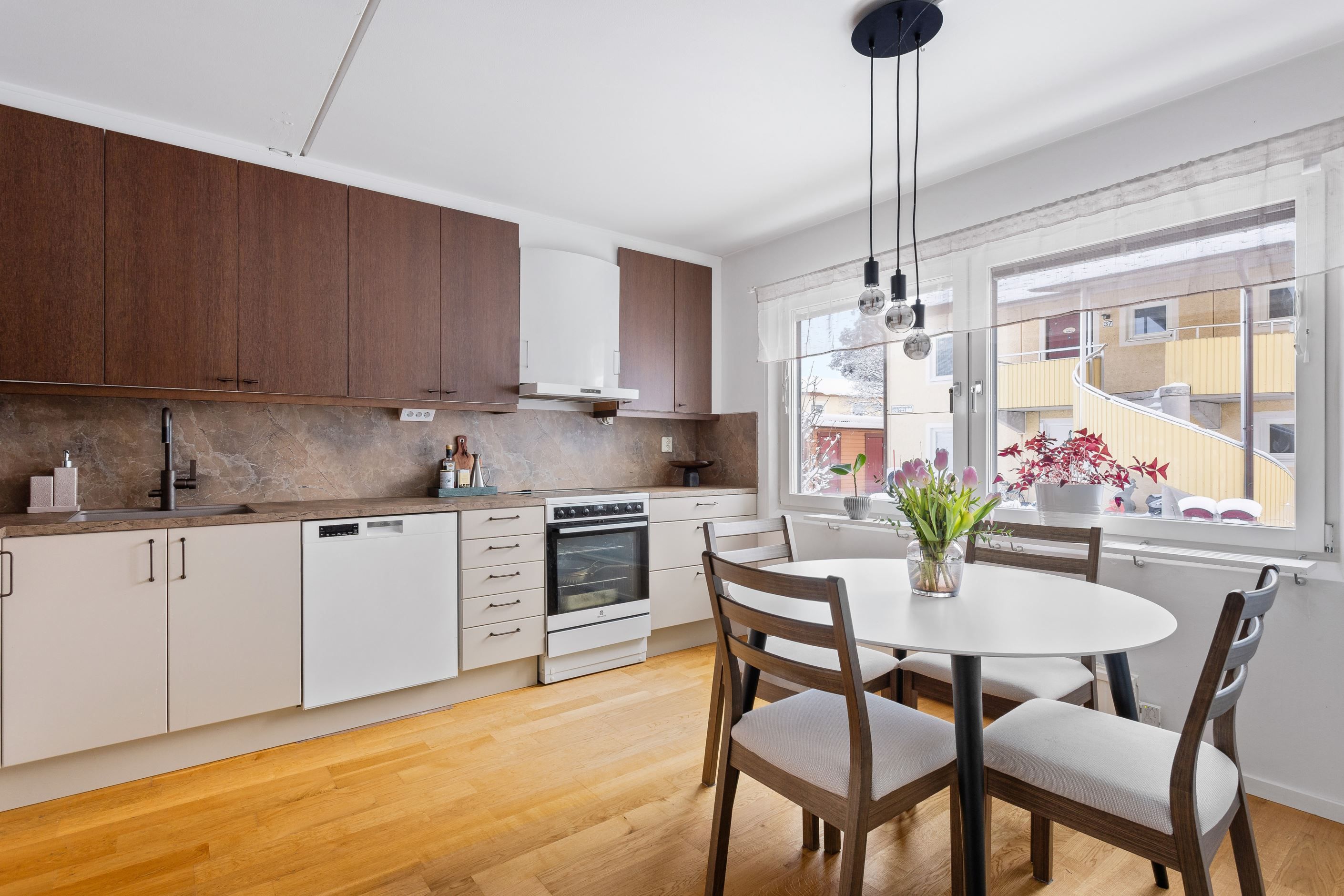 Läget är optimalt för familjer med barn, då det finns gott om grönområden och lekplatser i närheten. Här kan barnen springa fritt och utforska naturen samtidigt som du kan känna dig trygg i det lugna och trivsamma området utan biltrafik. Området angränsar mot det fina naturreservatet som mynnar ut i Mälarens glittrande vatten. För den löpsugne köparen är det bara att knyta iordning skorna och ta klivet in i skogen. För den som spelar golf ligger populära Viksjö golfklubb i närheten av bostaden. Inom ca 7-8 minuters gångavstånd når du även en pizzeria, kiosk med postombud och en restaurang.