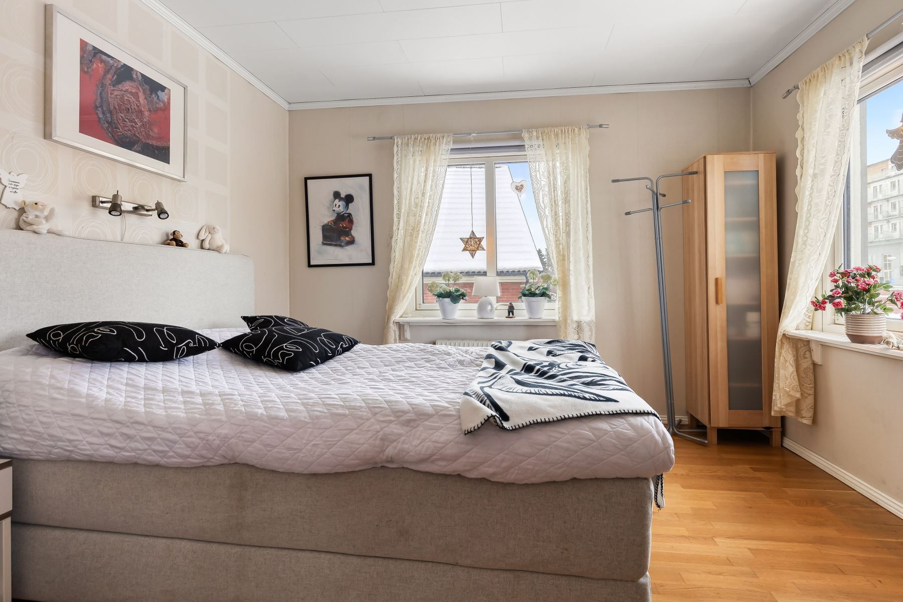Huset har en boarea om 72 kvm samt en biarea om 70 kvm, vilket ger fina förutsättningar för både sociala ytor och privata rum. På entréplanet möts du av ett ljust och trivsamt hem med två sovrum samt ett rymligt vardagsrum.