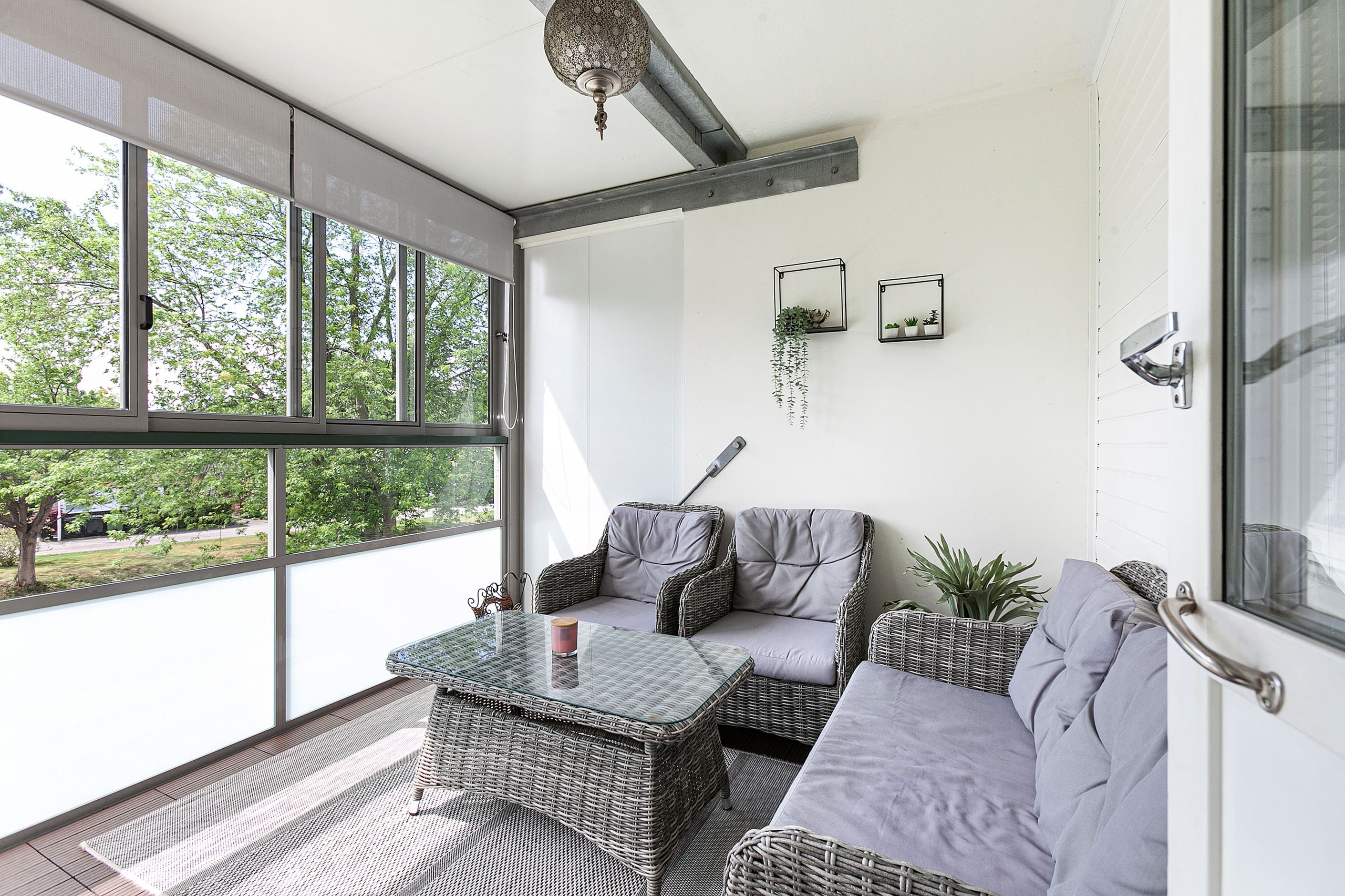 Bostaden finner vi en trappa upp och erbjuder en väldisponerad planlösning med en bra fördelning av rummen. Det moderna köket i stilren design med anslutning till den generösa inglasade balkongen är bara några av de attribut som denna bostad erbjuder.