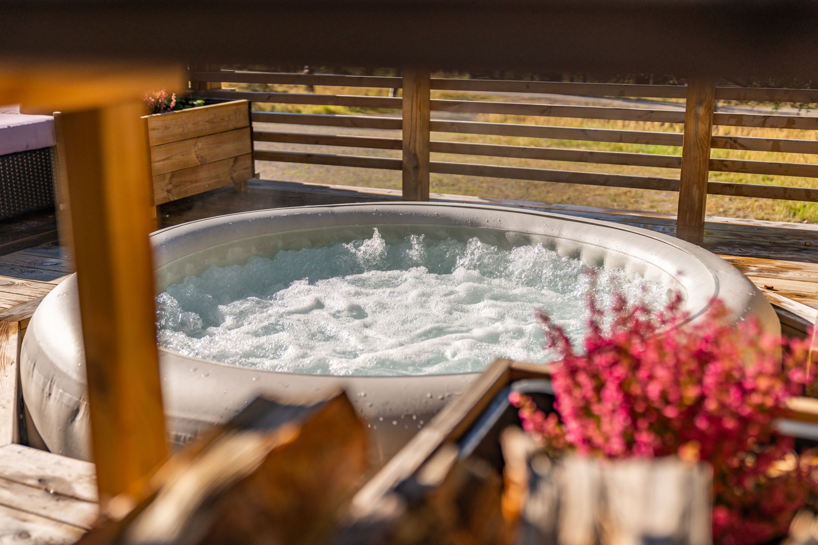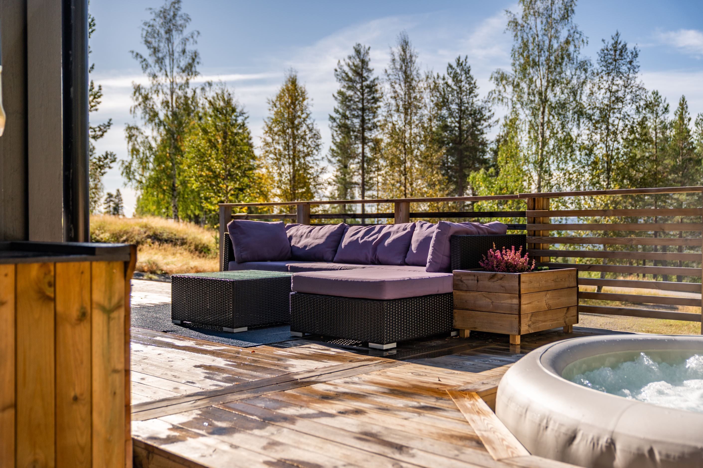 Uteplatsen blir snabbt en favoritplats – med en bubbelbad för härliga bad sommartid samt gott om plats för umgänge under hela året. Läget på uteplatsen ger sol hela dagen och en fin utsikt.