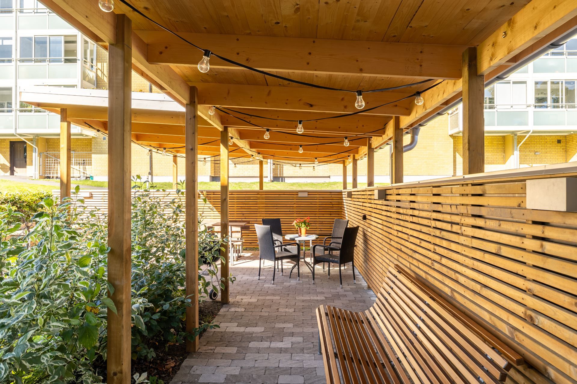Föreningen är välskött och under åren har många stora renoveringen redan genomförts, bland annat inglasandet av balkongerna! För den som är intresserad så erbjuder även föreningen möjlighet att vara med i ”odlingsklubben”.