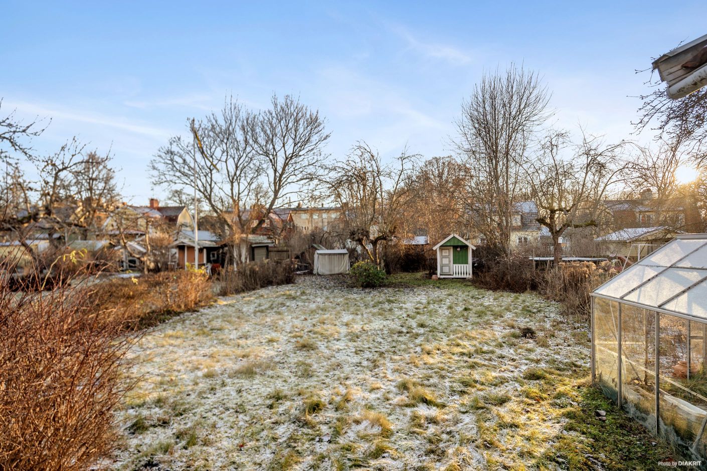 Charmigt 1.5-plansparhus med inredningsbar källare. Rejäl trädgårdstomt på 616 kvm och garage med elport. Bostaden är på 119+77 kvm fördelat på 6 rok varav 4-5 sovrum. Interiören är generellt av äldre standard. Vattenburen uppvärmning via elpanna samt luftvärmepump. Vacker eldstad. Nyrenoverat yttertak samt välskött fasad. Fantastiskt läge med kort promenadavstånd till tunnelbana, tvärbana och globen. Bostaden är under Kommande.