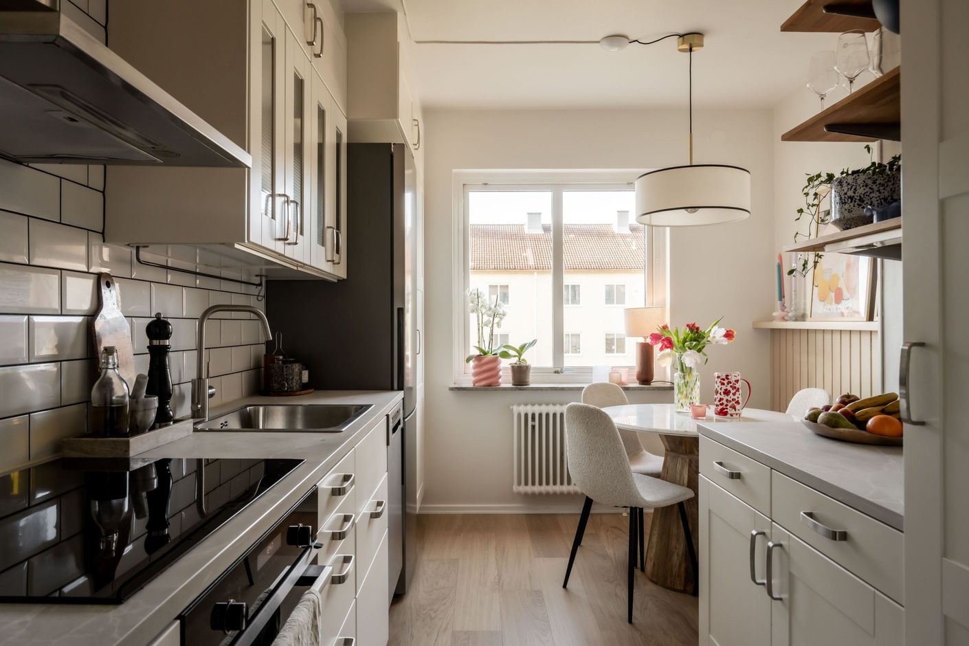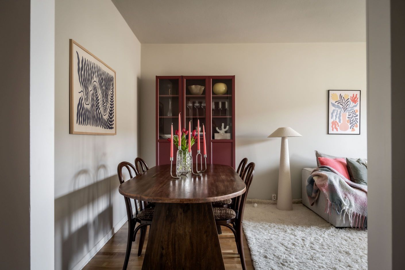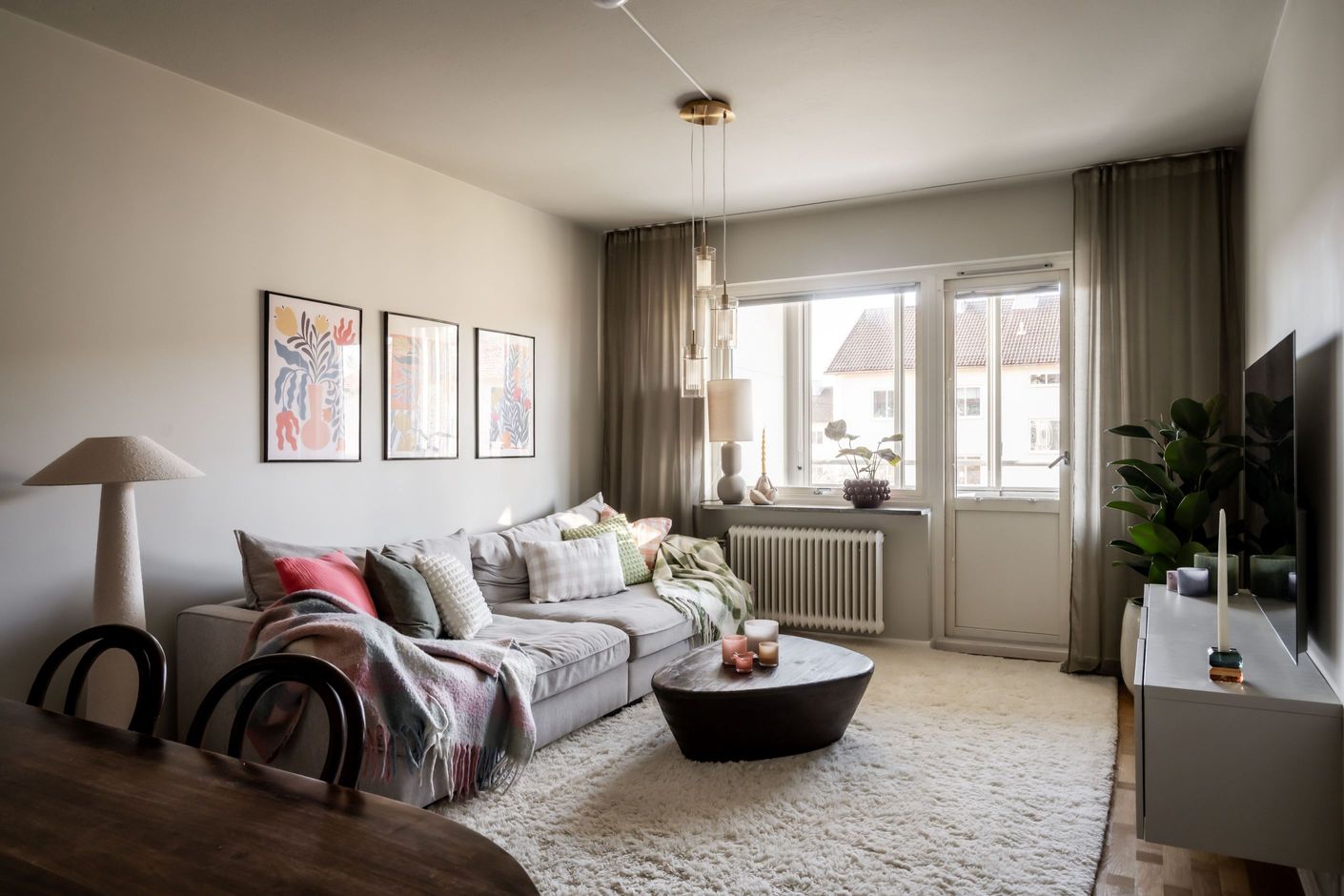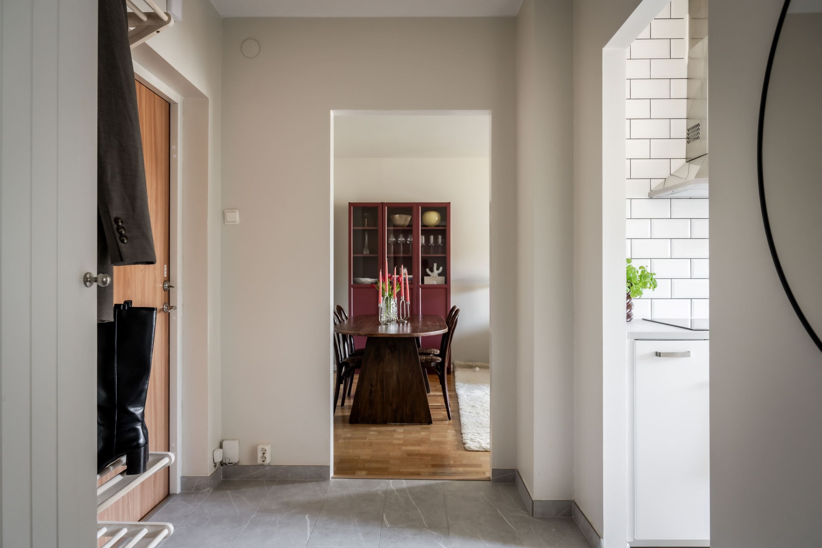 Välkomna till Döbelnsgatan 114A och denna genomgående fräscha tvåa på andra våning. Här erbjuds rymligt vardagsrum med plats för både soffa och matsalsbord samt utgång till den inglasade balkongen i västerläge med eftermiddags- och kvällssol. Köket är fräscht och erbjuder allt du behöver så som diskmaskin, bra förvaring och plats för köksbord intill fönstret. Hallen har bra förvaring i form av garderober och likaväl sovrummet som även det erbjuder förvaring och plats för dubbelsäng. Badrummet är nyrenoverat 2025 och här finner ni ett modernt, helkaklat badrum med golvvärme, kommod, spegel, WC, handdukstork och dusch bakom vikbara glasdörrar. Förberett för tvättmaskin är det också så bara att koppla in en tvättmaskin så har man den bekvämligheten också.