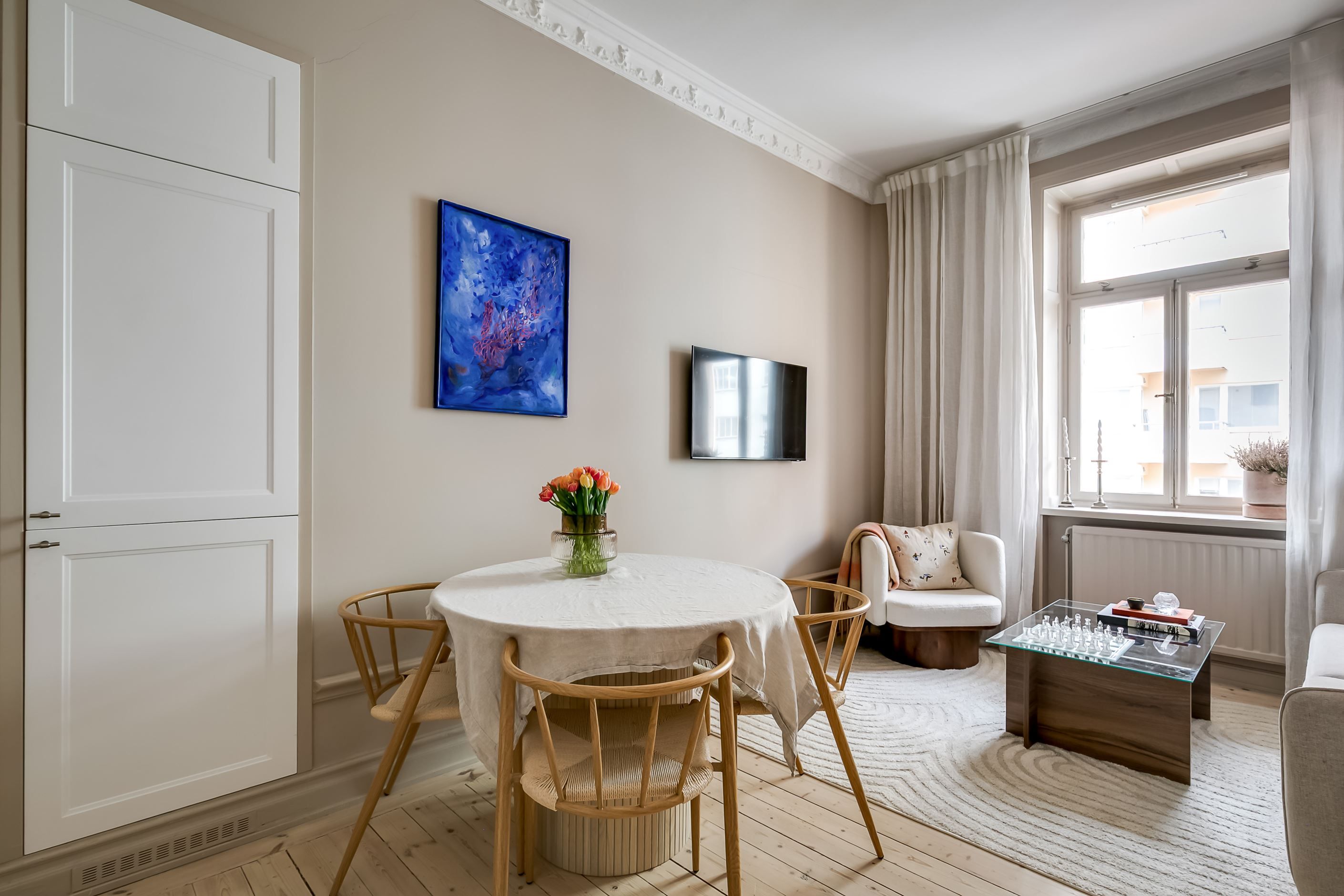 På en av Döbelnsgatan mest attraktiva adresser, mitt i hjärtat av Vasastan, finner du denna utsökta sekelskiftesbostad om 37 kvm – en optimalt planerad tvåa där varje kvadratmeter är genomtänkt och nyttjad till fullo. Här möts klassisk elegans från 1904 och en stilren, modern känsla i perfekt harmoni.