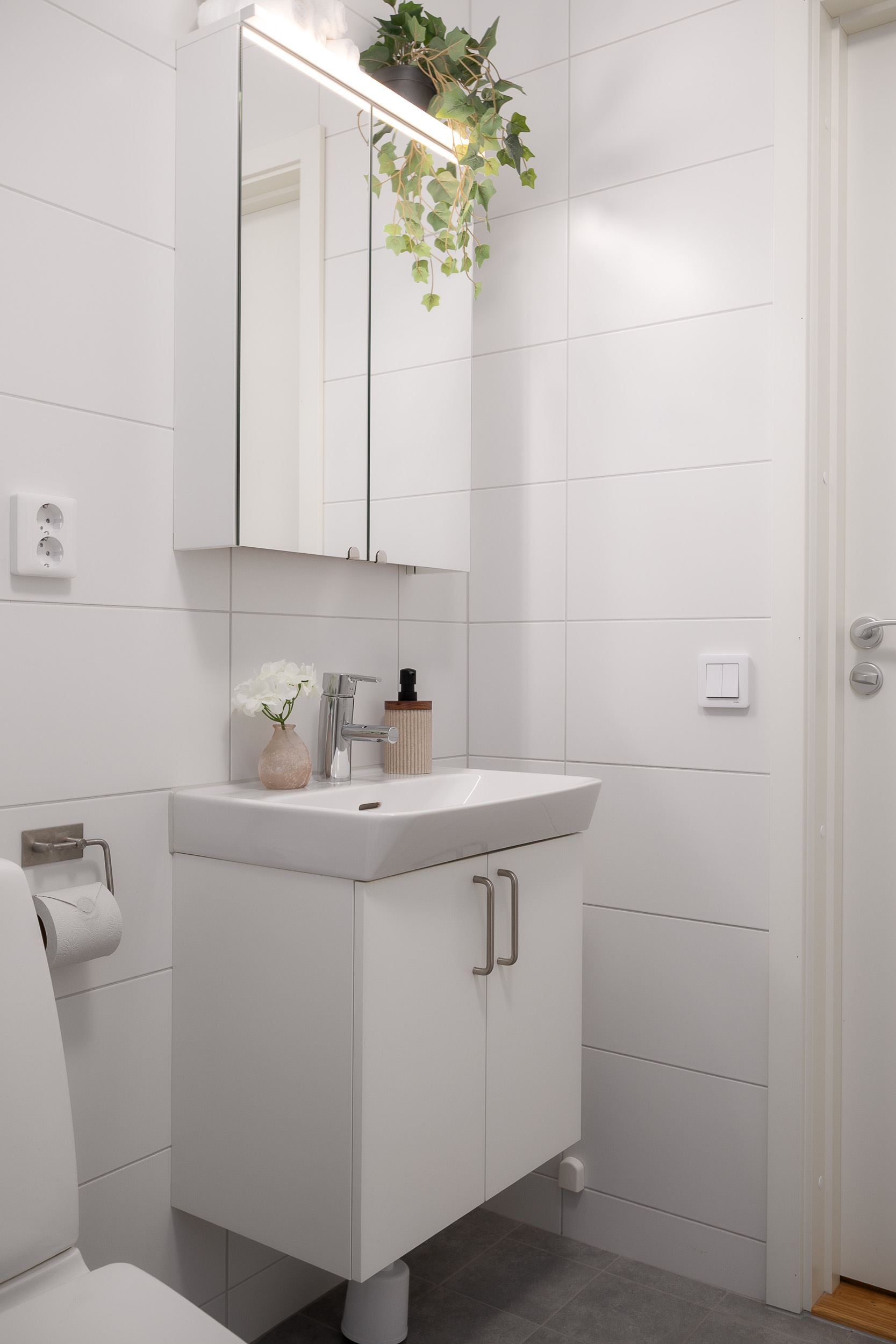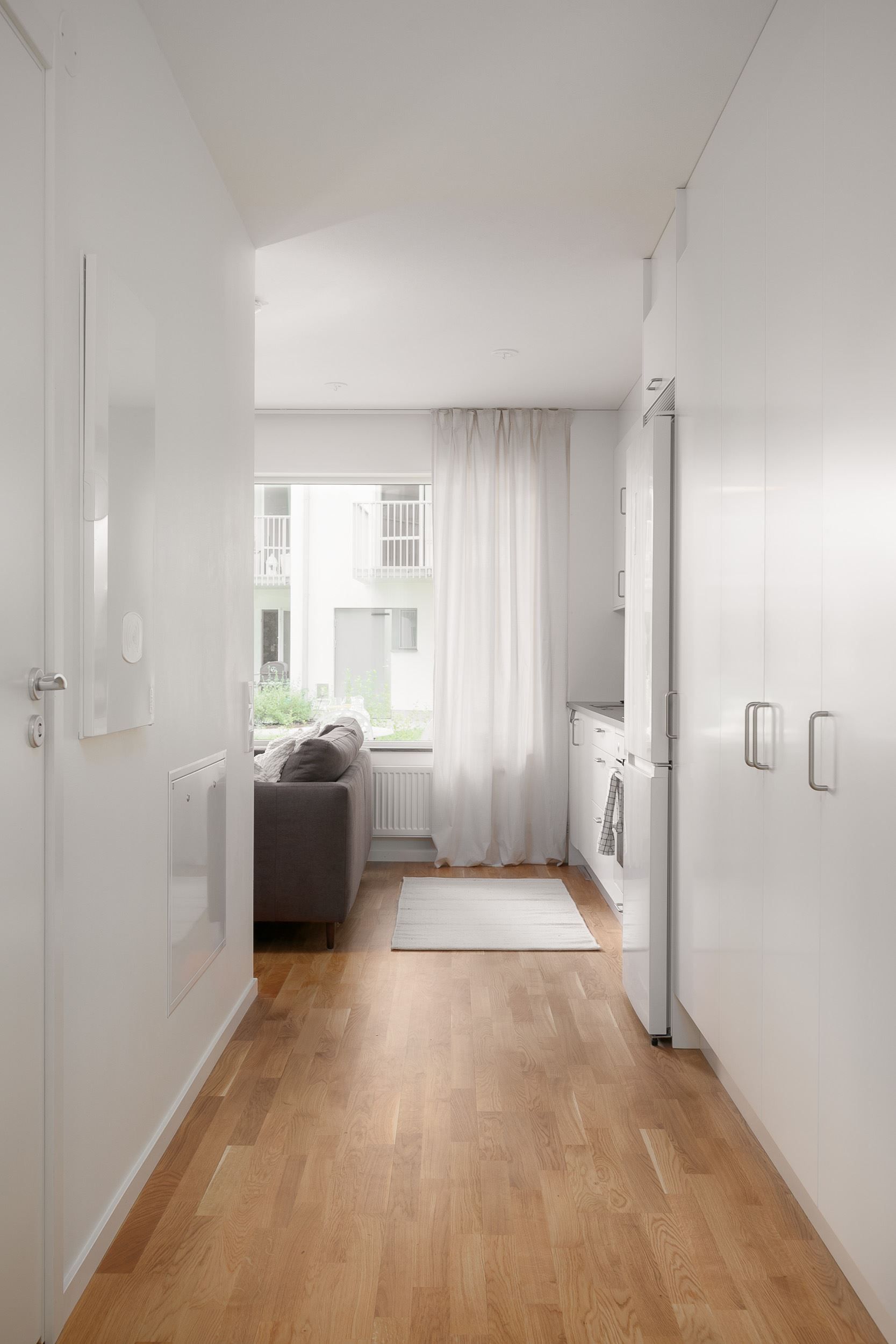 Här bor du i en smart planerad bostad där varje kvadratmeter nyttjas effektivt. Den öppna planlösningen mellan kök och vardagsrum skapar en ljus och luftig känsla, perfekt för både vardag och umgänge. Badrummet är helkaklat och erbjuder en egen tvättavdelning – praktiskt och bekvämt i vardagen.