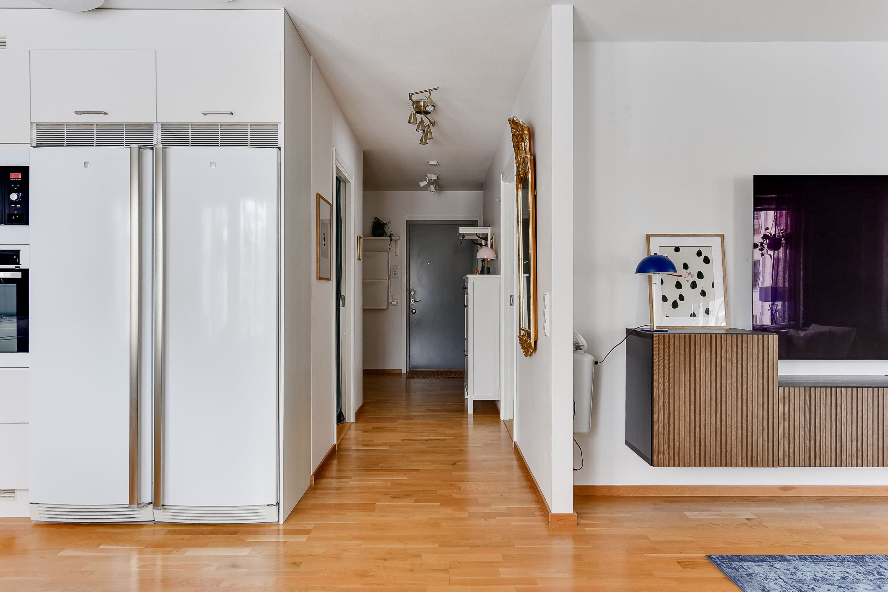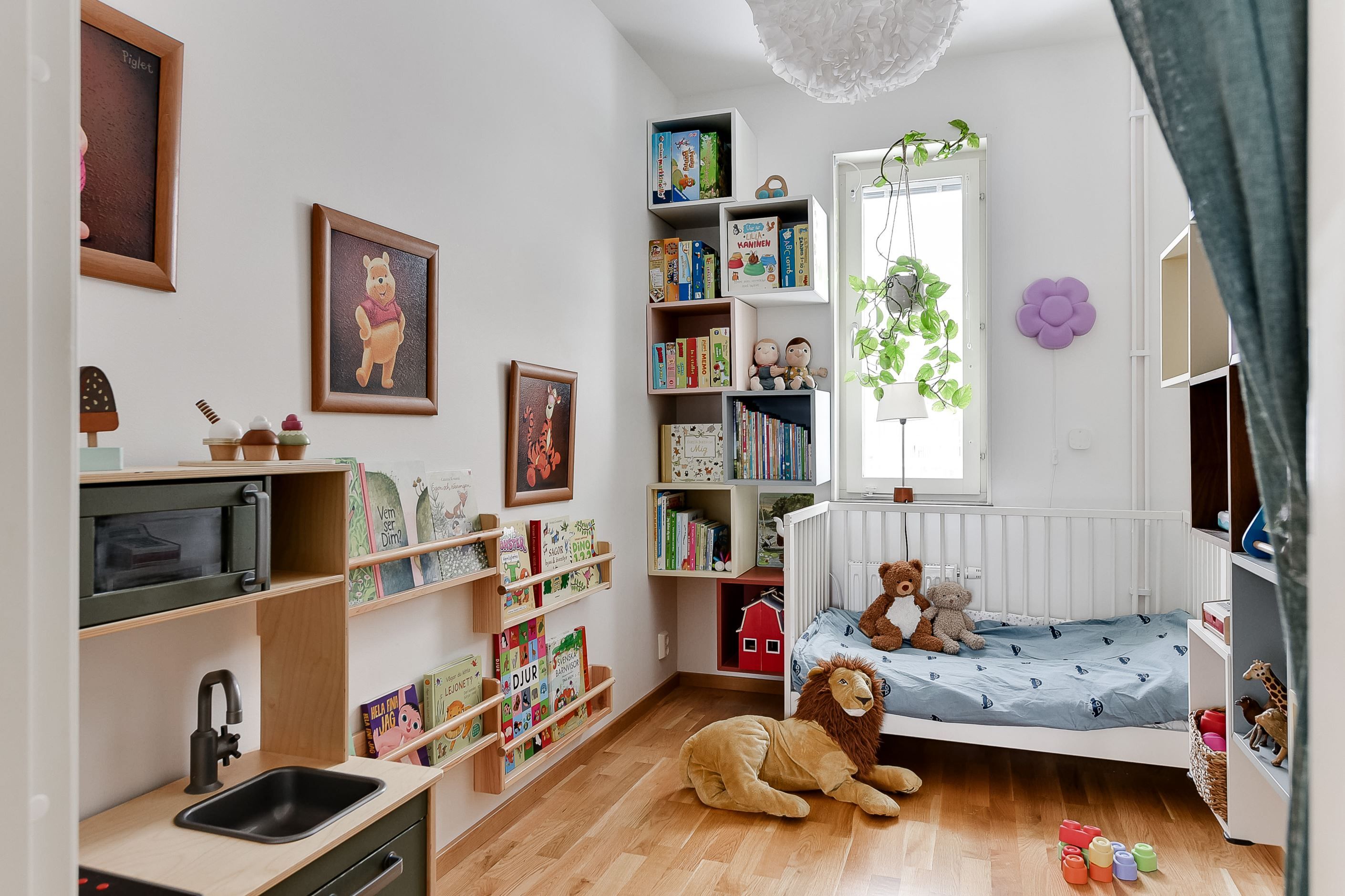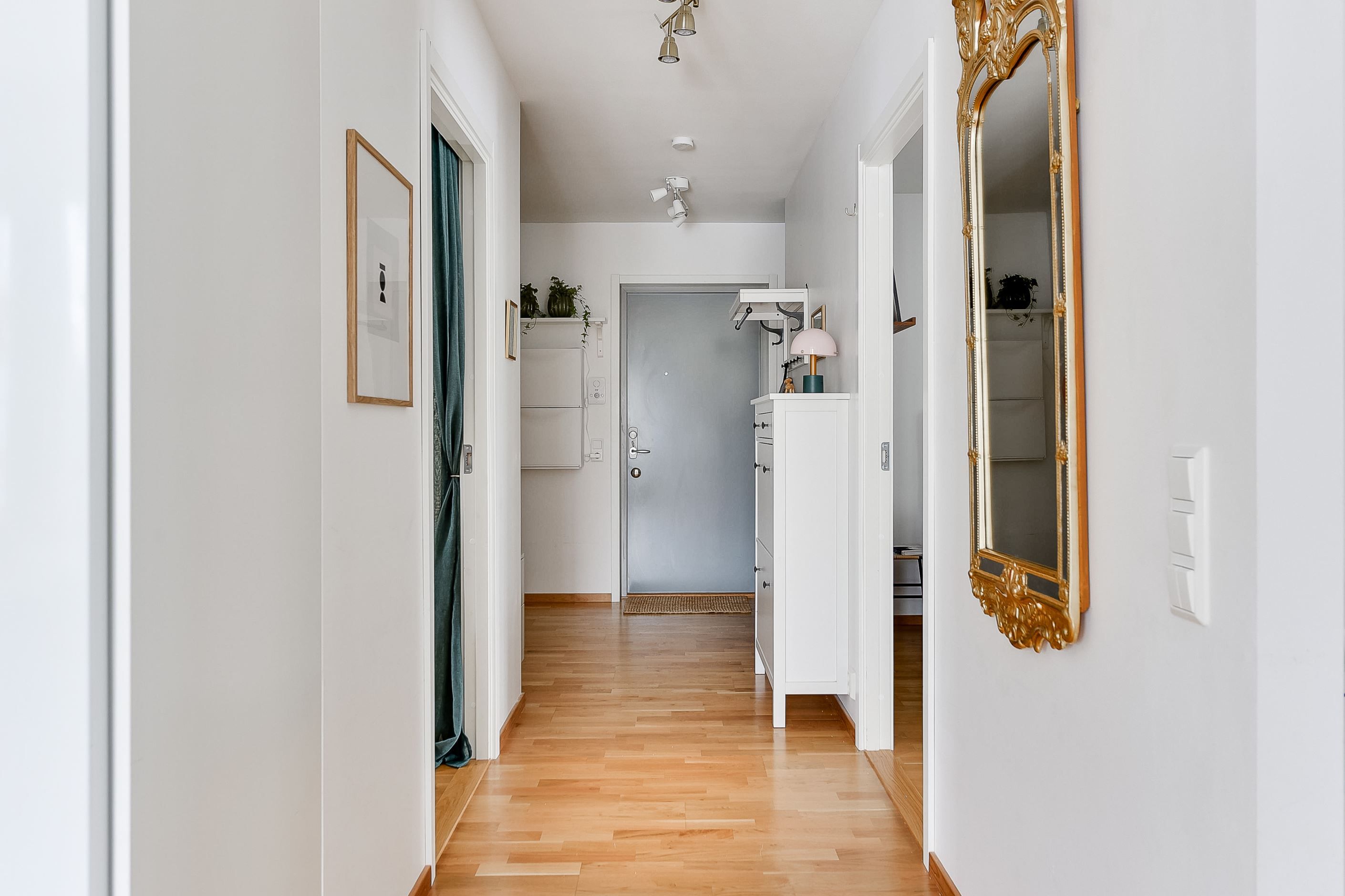 Lägenheten erbjuder dig, inte bara ett, utan faktiskt två rum. Det stora sovrummet rymmer gott om förvaring samt stor säng, där säljaren idag har en familjedubbelsäng á 2,4 med bred. Den tidigare klädkammaren gjorts om till en barnkammare, men som också lämpar sig som kontor såväl som gästrum. Detta är smart gjort där möjligheten att återställa rummet till den ursprungliga klädkammare självfallet kvarstår! Köket ligger i trivsam vinkel med goda förvaringsmöjligheter och här finns även mysigt fönster att spana ut genom medan disken tas om hand om. Det stora allrummet ger utrymme till både rejäl matplats och vardagsrums del. Badrummet helkaklat med golvvärme och egen tvättdel - lika praktiskt som önskvärt.