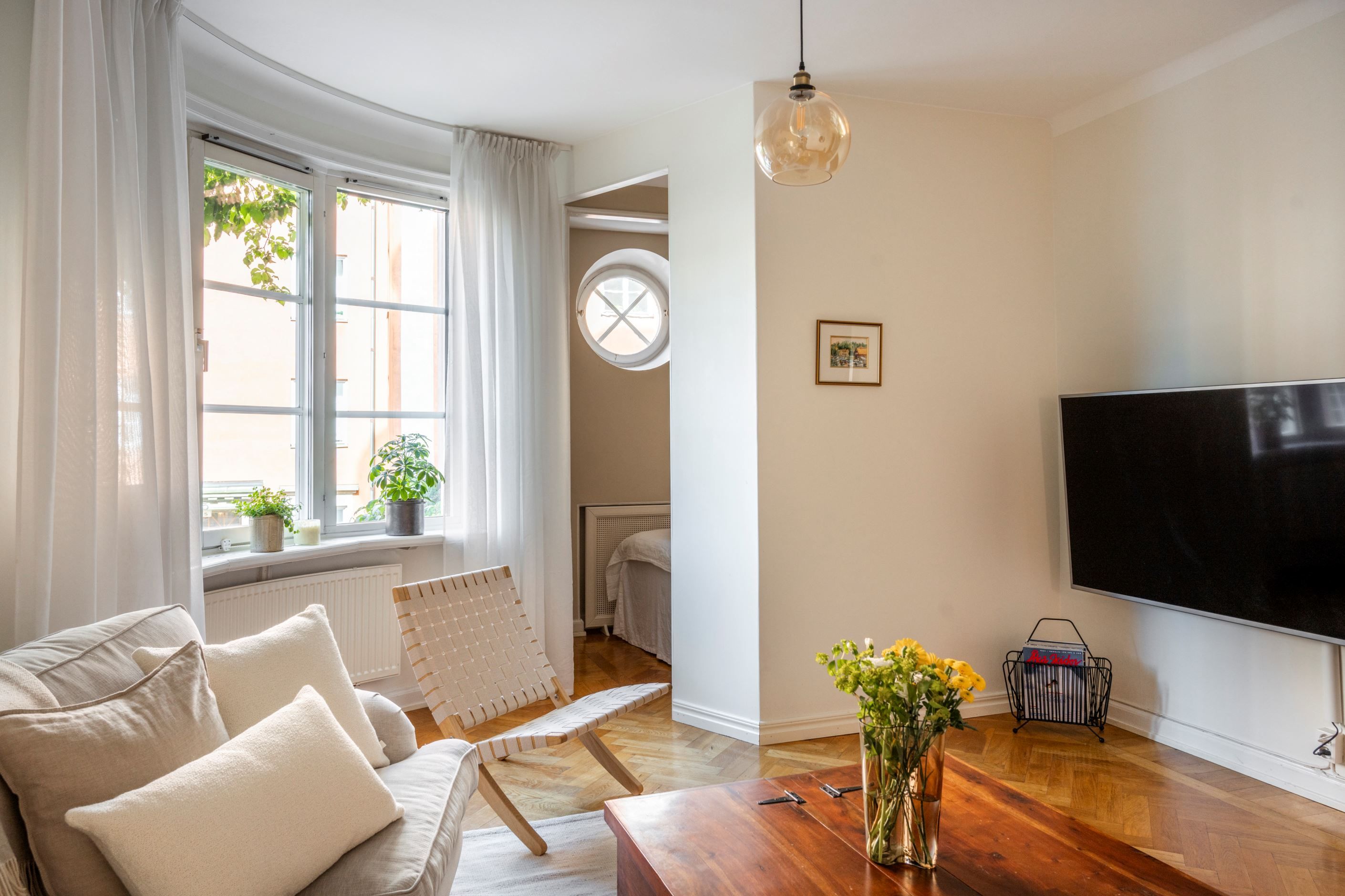 Drömtvåa med vackra 20-talsattribut - Burspråk - Stilrent inredd - Belägen på tyst gata i Birkastan - Förening med god ekonomi - Trevlig innergård