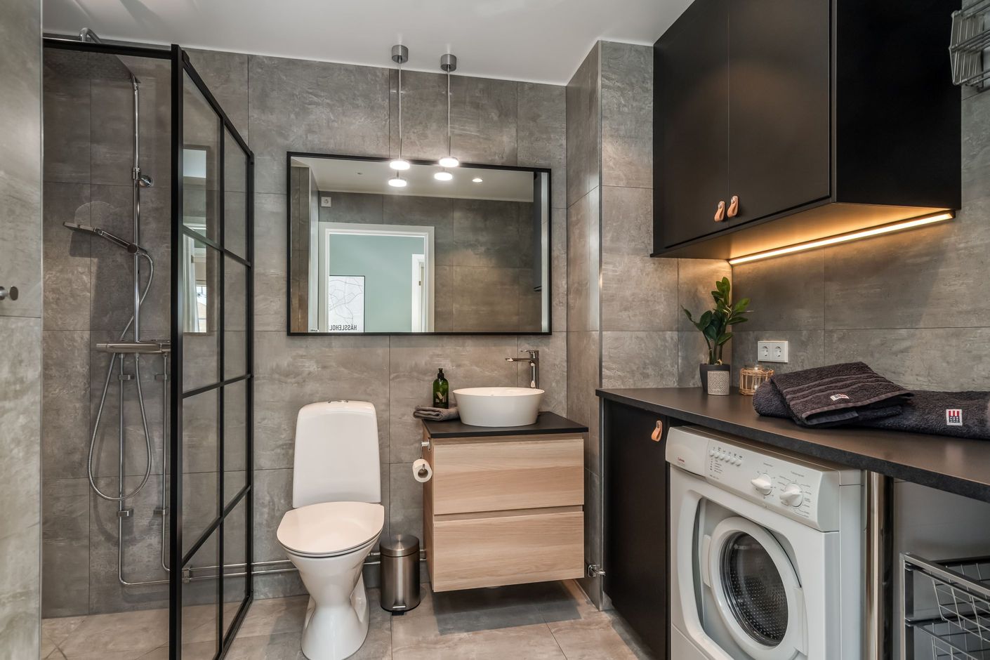 Här presenteras en rymlig och välbelägen bostad i två plan med tre rum, där man har en egen bekväm ingång i marknivå och resterande boyta placerad en våning upp. Lägenheten har totalrenoverats invändigt under 2019 och håller genomgående en trivsam, modern standard med väl omhändertagna ytskikt. Bostaden erbjuder en funktionell och luftig planlösning där köket är placerat ovanför trappan och vardagsrummet har direkt access till balkongen. Vidare finns två fina sovrum samt ett modernt, helkaklat badrum med dusch, golvvärme och egen tvättmaskin. Balkongen är tilltagen i storlek, vetter mot söder och bjuder på utsikt över intilliggande grönska. Ett intelligent belysningssystem finns installerat, med bland annat möjlighet att styra och släcka all belysning från sovrummet.
