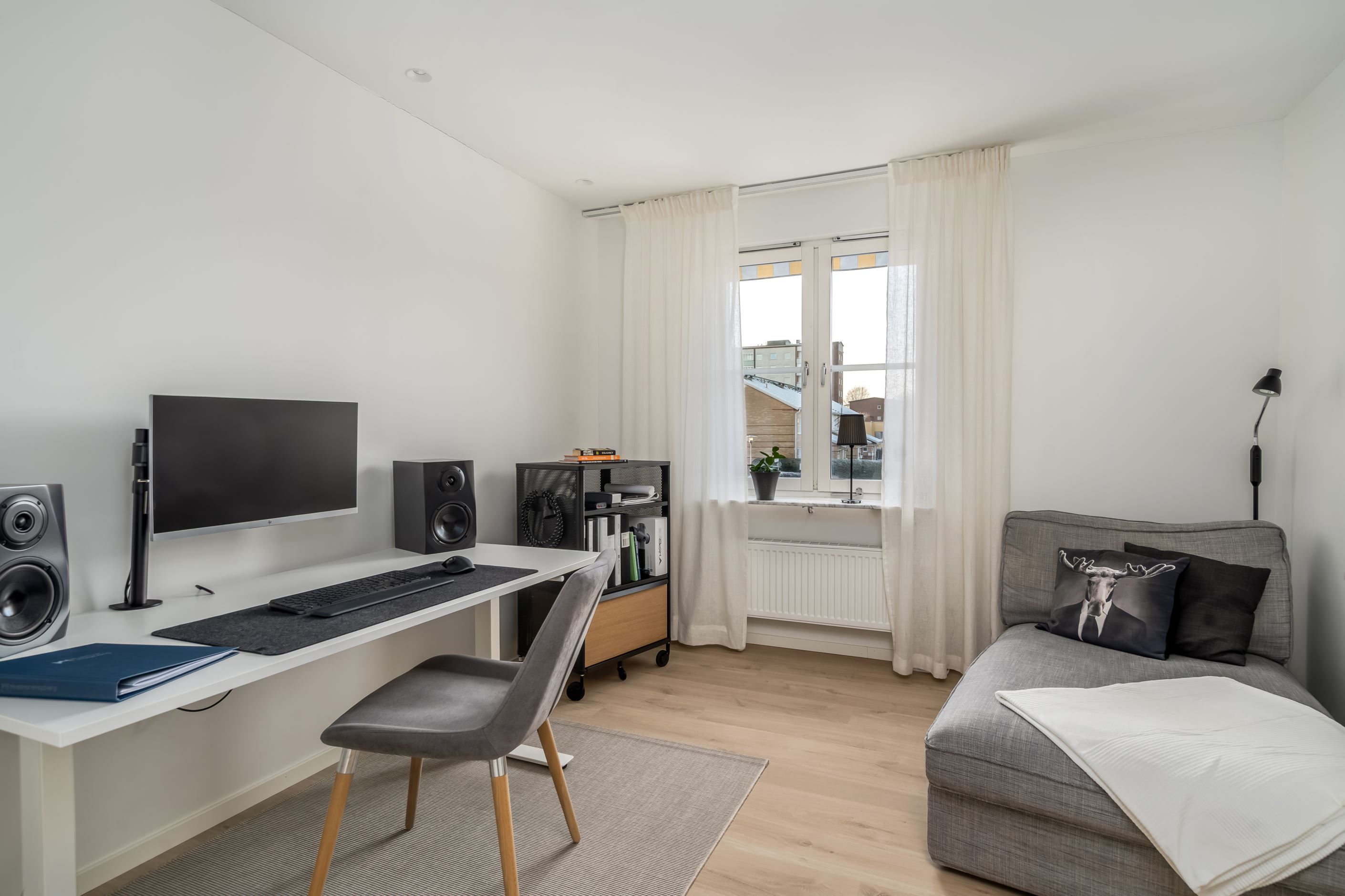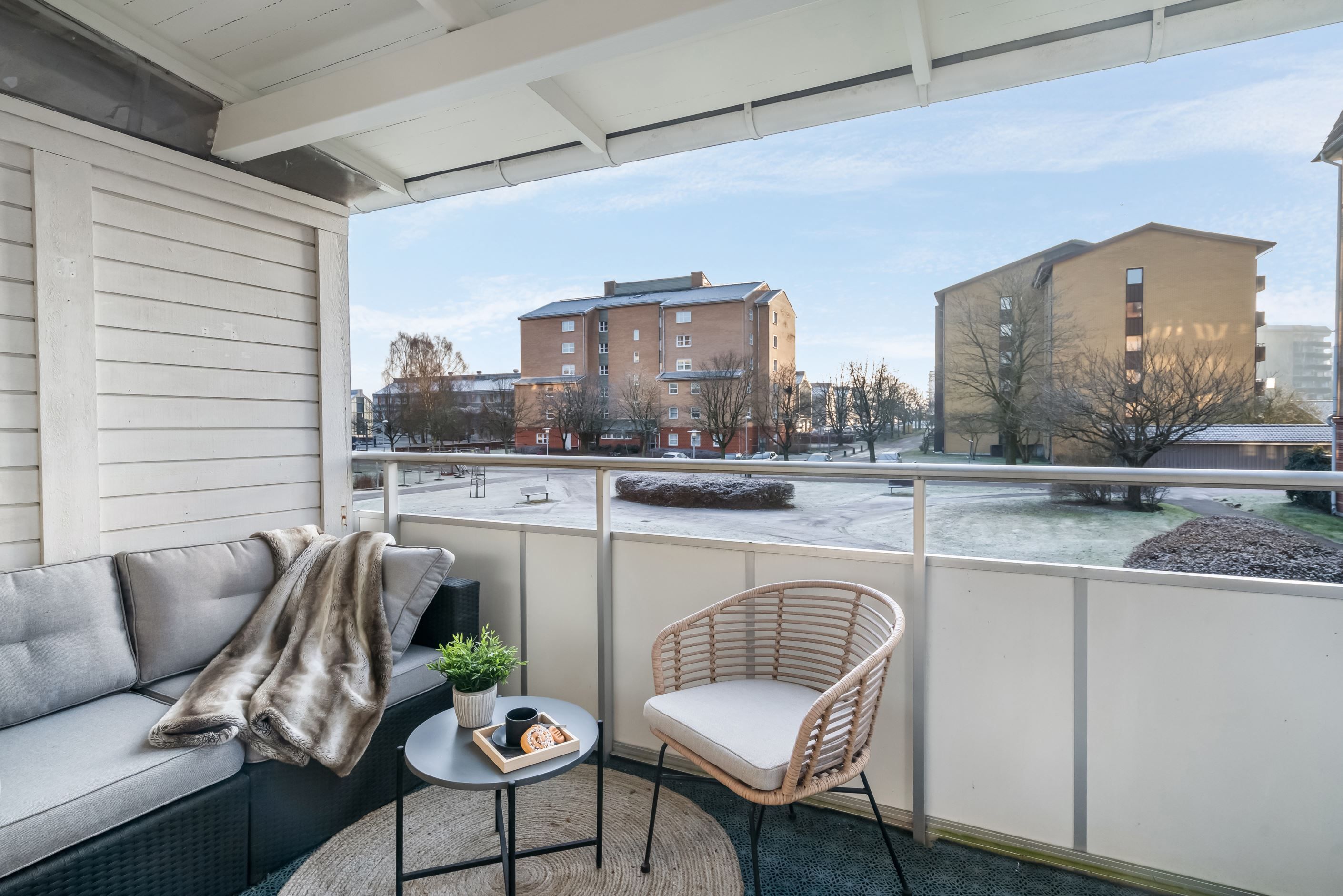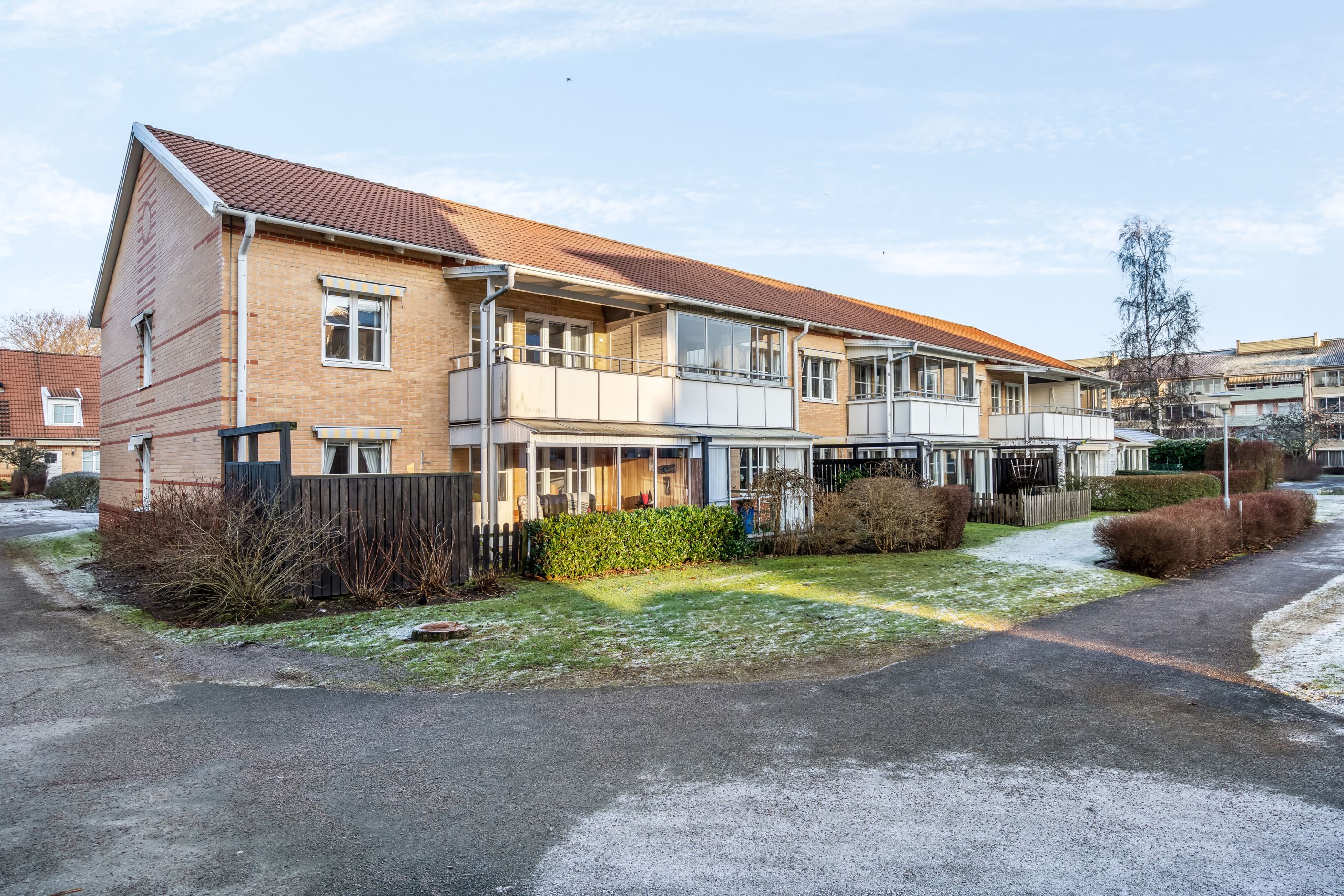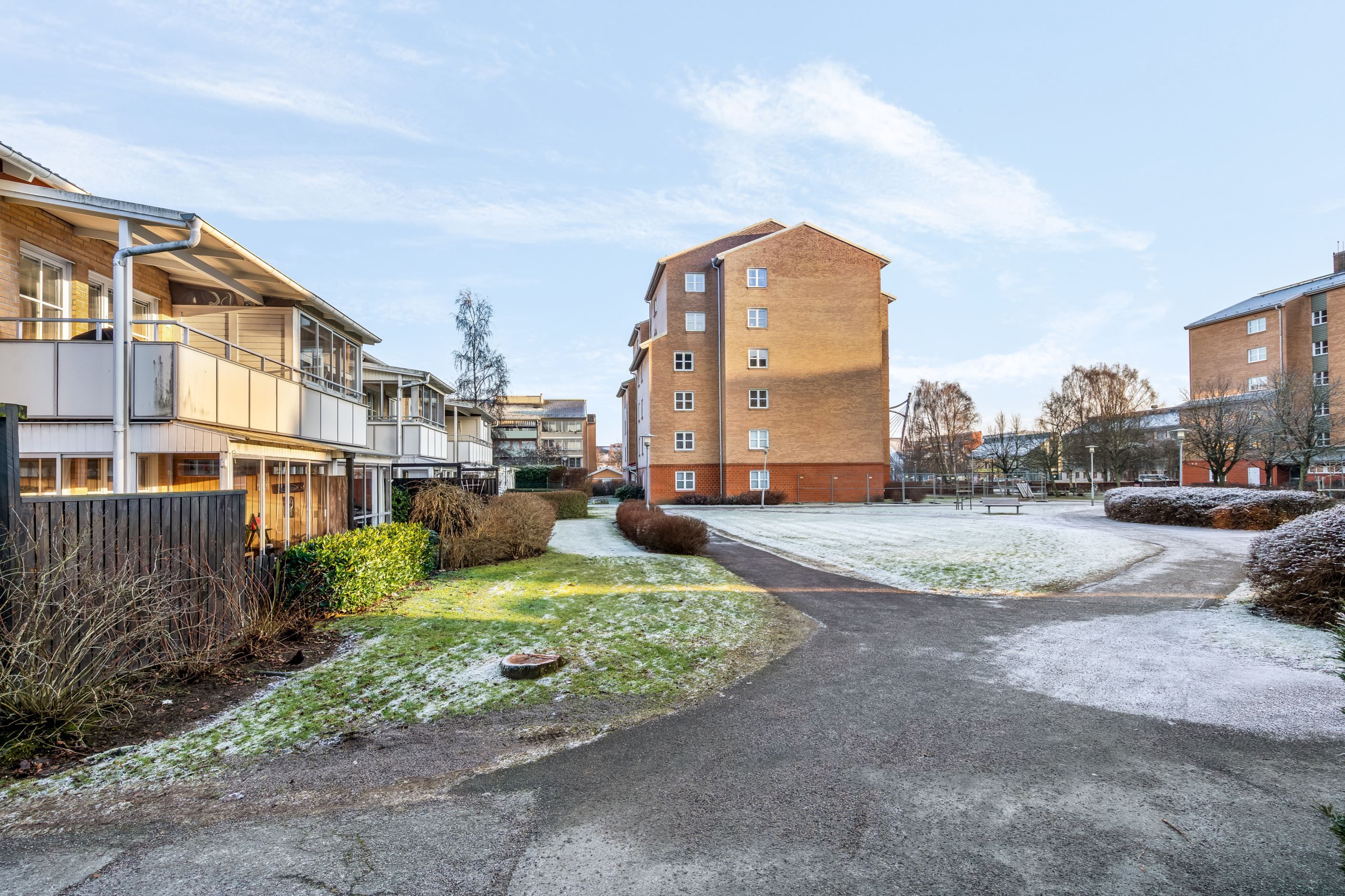 Förvaring är väl tillgodosedd genom både utrymme under trappan och en separat klädkammare med ingång från bostaden. I föreningen finns tillgång till gemensamma grönytor, lekytor med sandlådor, boulebana samt möjlighet till parkering eller garageplats via separat kö. I den löpande avgiften ingår uppvärmning, vatten, avfallshantering, ett grundutbud av tv-kanaler samt internetanslutning via Tele2. Området präglas av ett mycket centralt läge med endast några minuters gångväg till järnvägsstationen och stadskärnans omfattande serviceutbud.