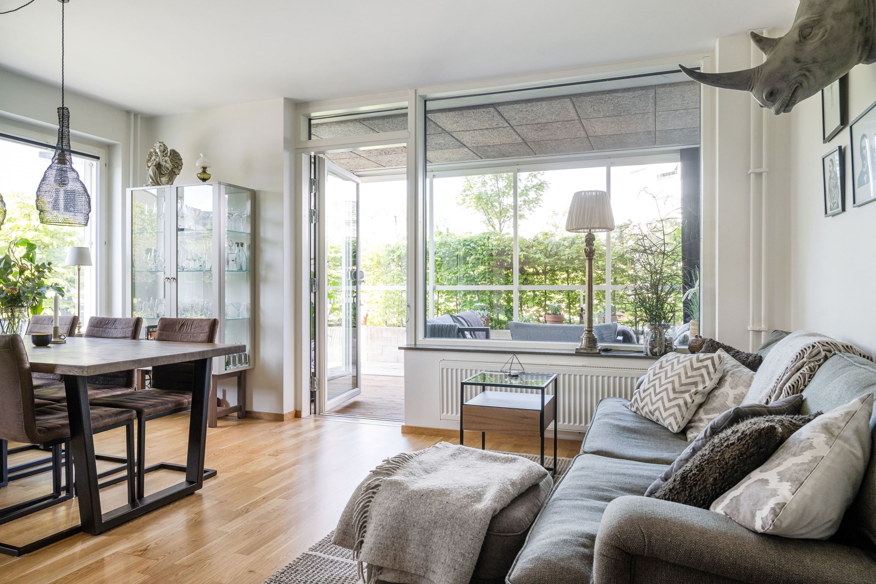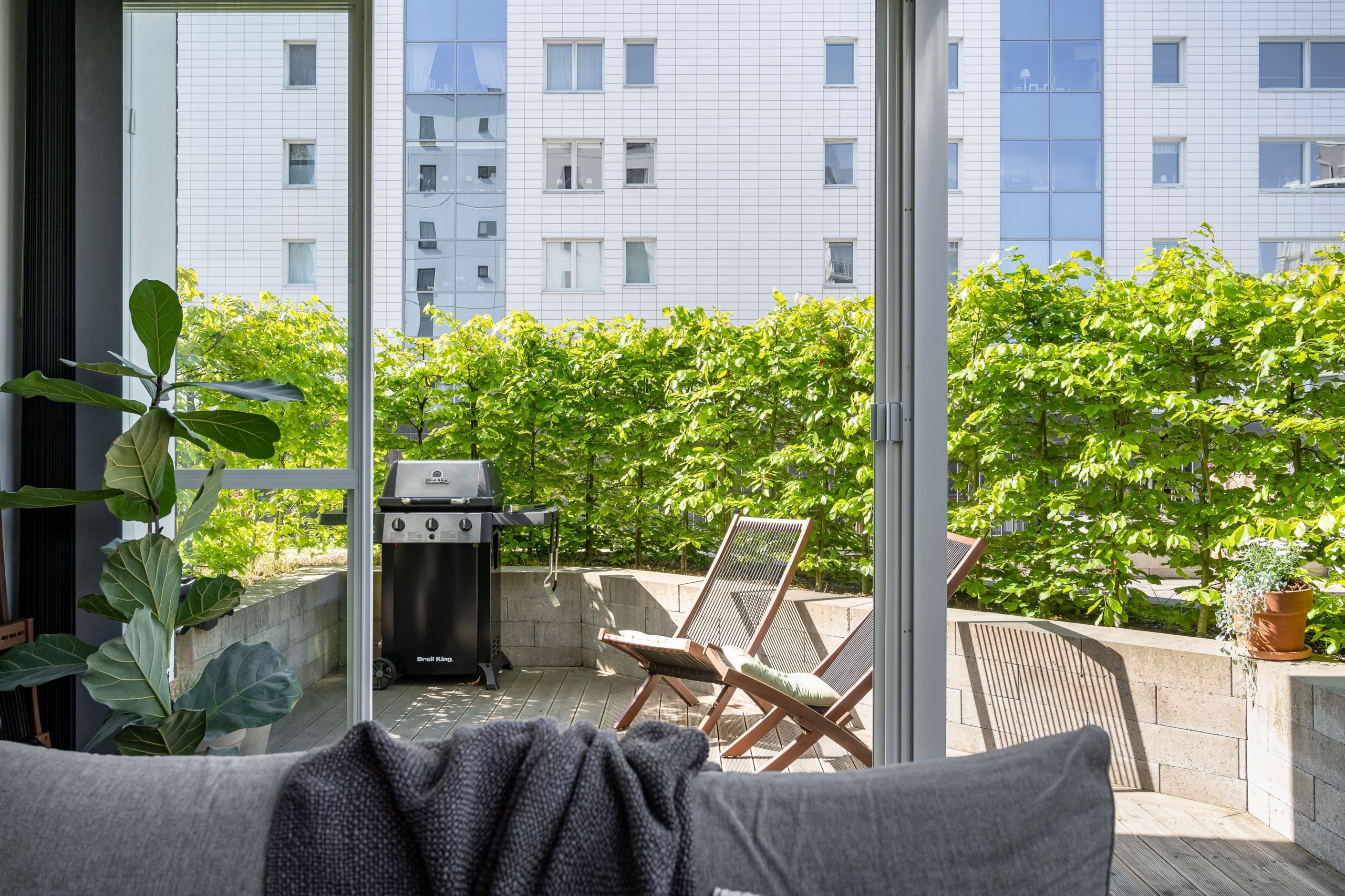 Du har både ett inglasat uterum och tillgång till härlig uteplats. Perfekt söderläge dessutom med sol som trevligt sällskap från förmiddagen till kväll.