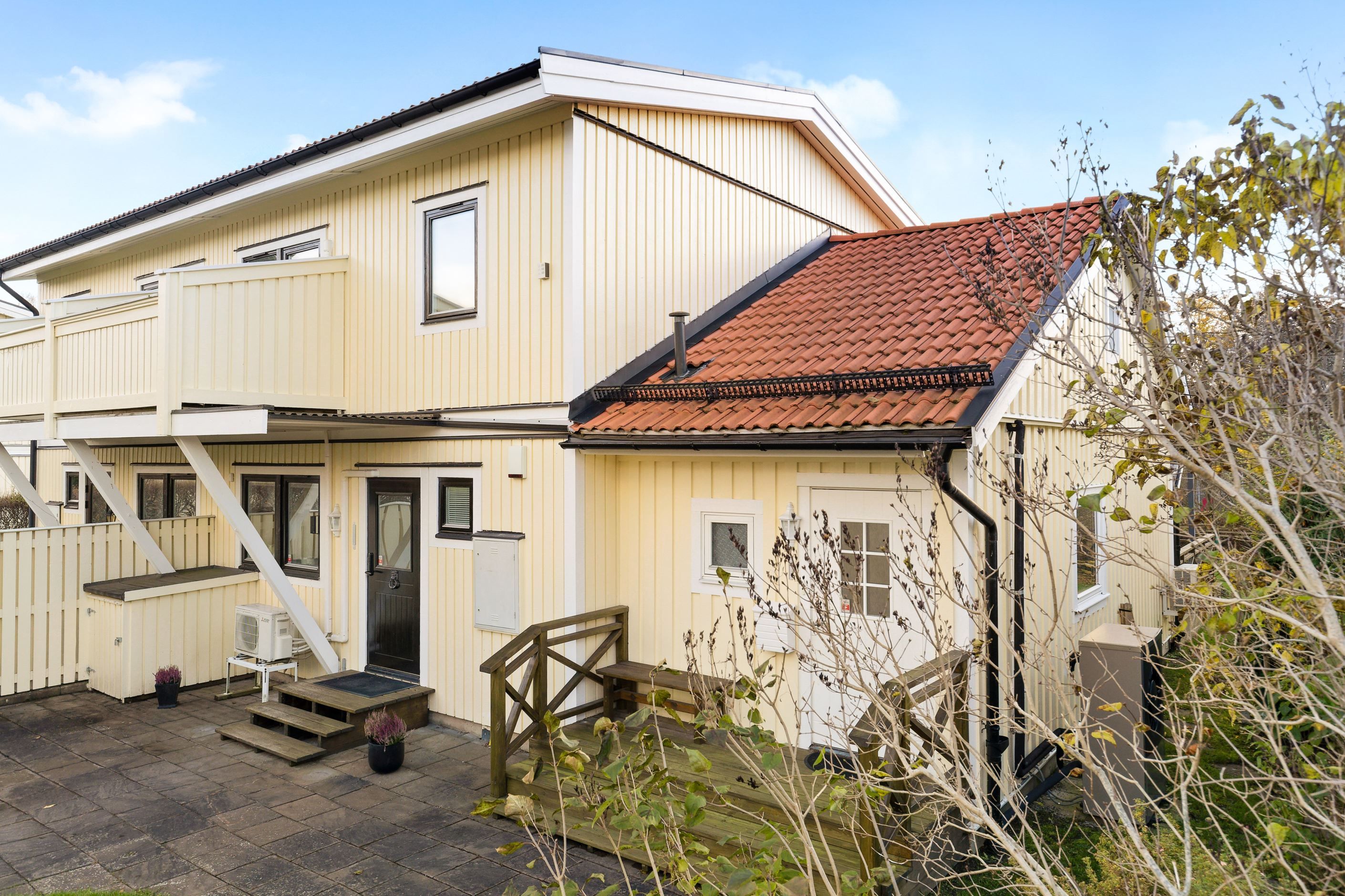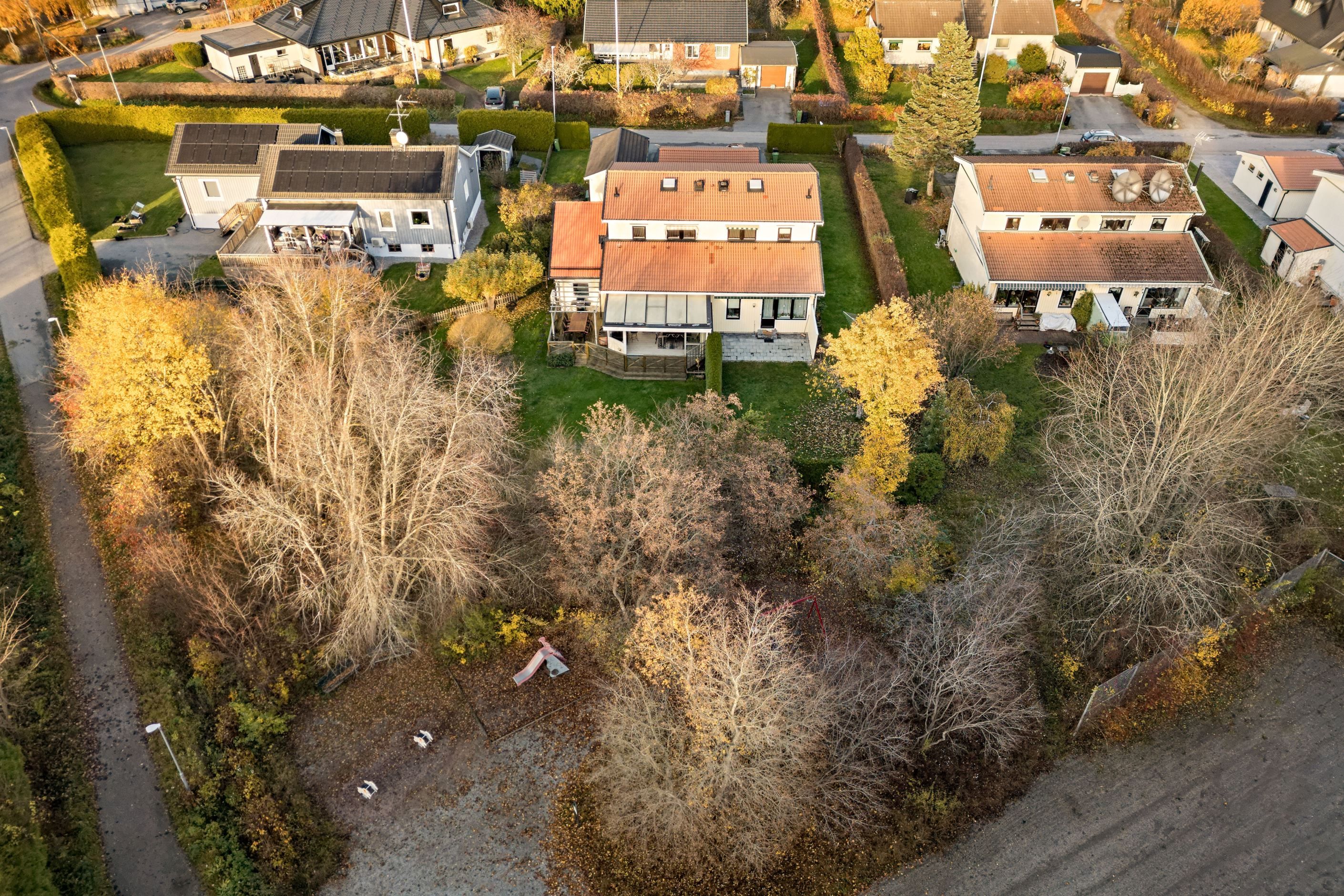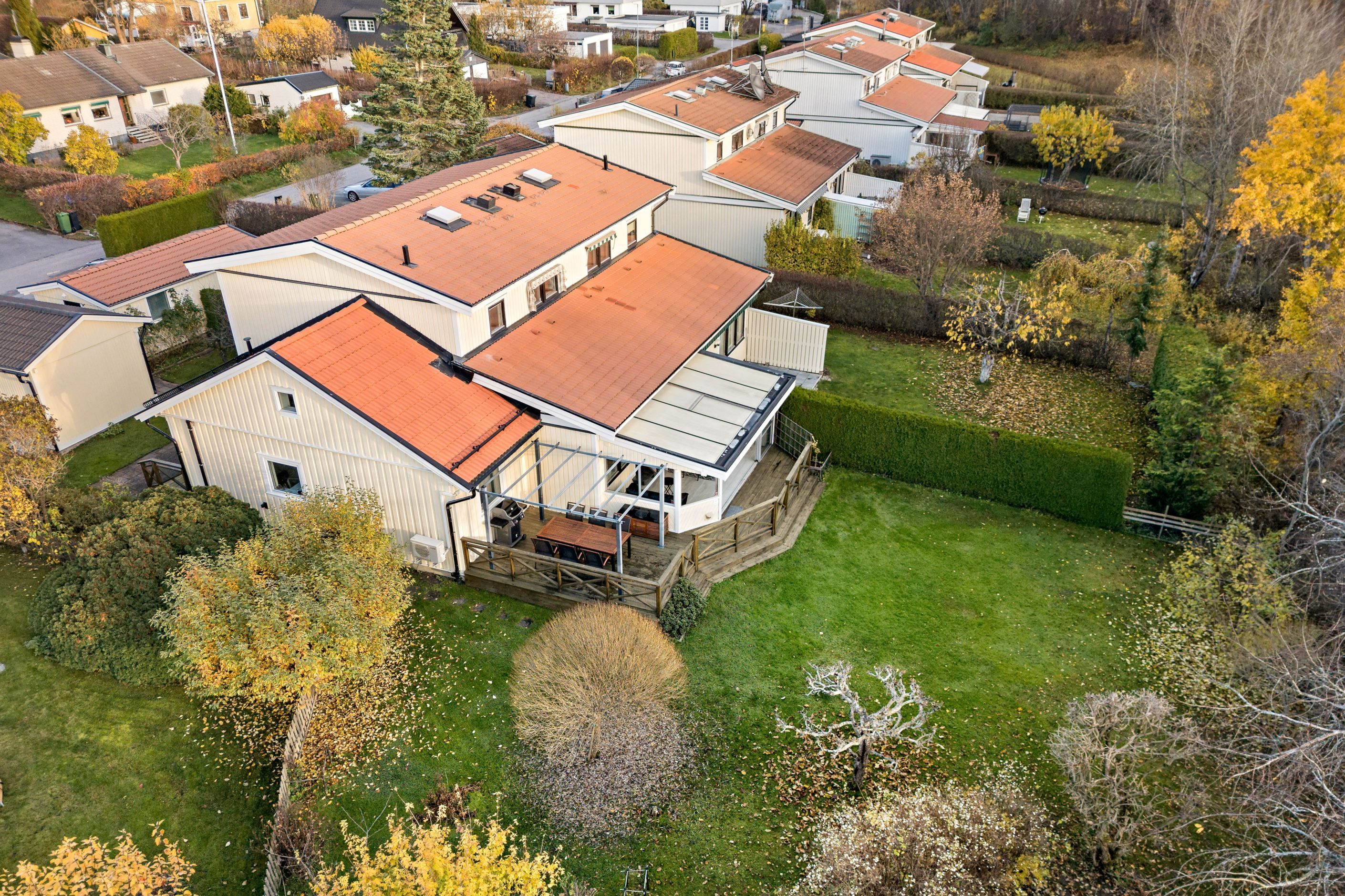 På återvändsgata i ett mycket lugnt läge ligger detta rymliga parhus om totalt 142 kvm. i omtyckta Skälby. Hus byggt 1985 med många och stora renoveringar utförda samt även tillbyggnad 2009, med idag 4-5 möjliga sovrum, stort och fint renoverat kök med matplats angränsande till vardagsrum. Från vardagsrum nås ett fint och rymligt inglasat uterum om ca 20 kvm och vidare från det ut till altan och trädgård, i exemplariskt sydvästläge. Den tillbyggda delen om ca 30 kvm fungerar idag som en separat bostadsdel såsom uthyrningsdel, eller generationsboende, men kan säkerligen sammanfogas med huvudbostaden om så önskas. Vidare finns 3 Wc/duschrum (varav 1 i uthyrningsdelen), bra förvaringsmöjligheter, stor altan och en mycket fin och stor hörntomt om över 600 kvm angränsande till allmänning, lekplats och bollplan. Här erbjuds också en mycket rymlig asfalterad uppfart samt carport, elbilsladdare och två förråd.