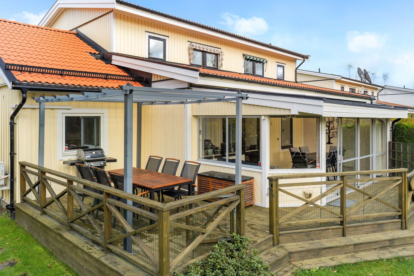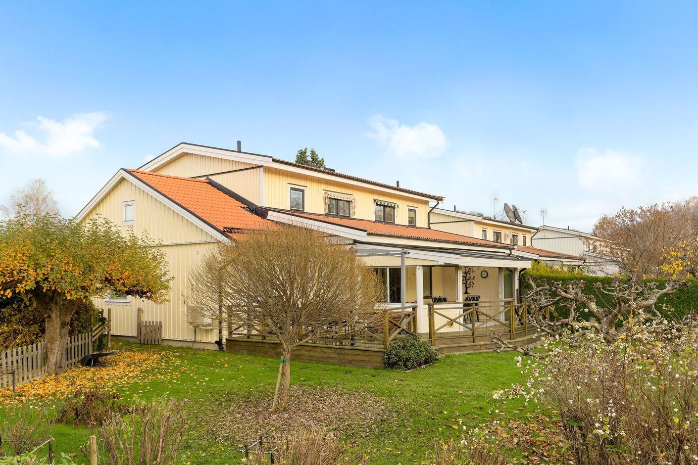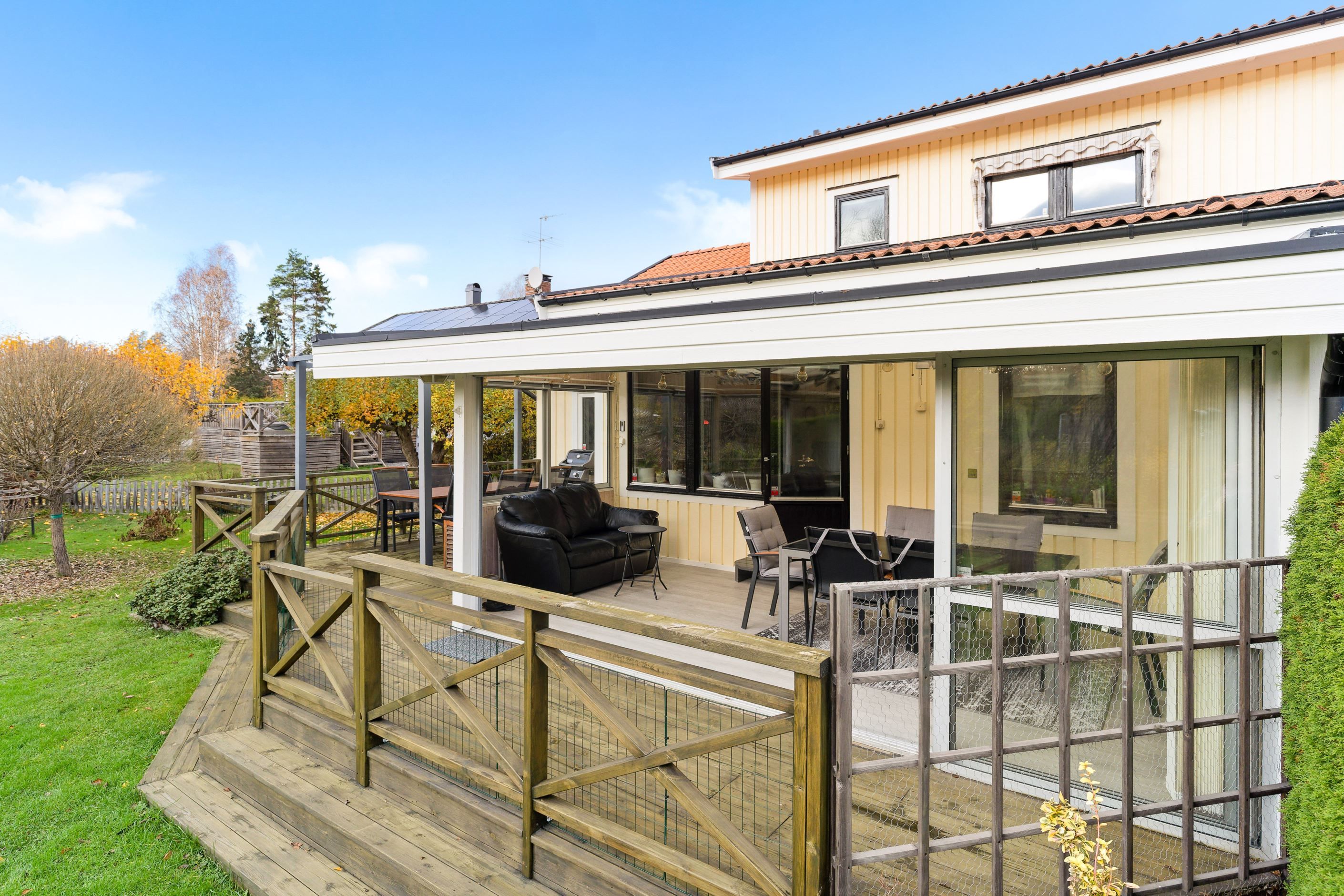 På återvändsgata i ett mycket lugnt läge ligger detta rymliga parhus om totalt 142 kvm. i omtyckta Skälby. Hus byggt 1985 med många och stora renoveringar utförda samt även tillbyggnad 2009, med idag 4-5 möjliga sovrum, stort och fint renoverat kök med matplats angränsande till vardagsrum. Från vardagsrum nås ett fint och rymligt inglasat uterum om ca 20 kvm och vidare från det ut till altan och trädgård, i exemplariskt sydvästläge. Den tillbyggda delen om ca 30 kvm fungerar idag som en separat bostadsdel såsom uthyrningsdel, eller generationsboende, men kan säkerligen sammanfogas med huvudbostaden om så önskas. Vidare finns 3 Wc/duschrum (varav 1 i uthyrningsdelen), bra förvaringsmöjligheter, stor altan och en mycket fin och stor hörntomt om över 600 kvm angränsande till allmänning, lekplats och bollplan. Här erbjuds också en mycket rymlig asfalterad uppfart samt carport, elbilsladdare och två förråd.