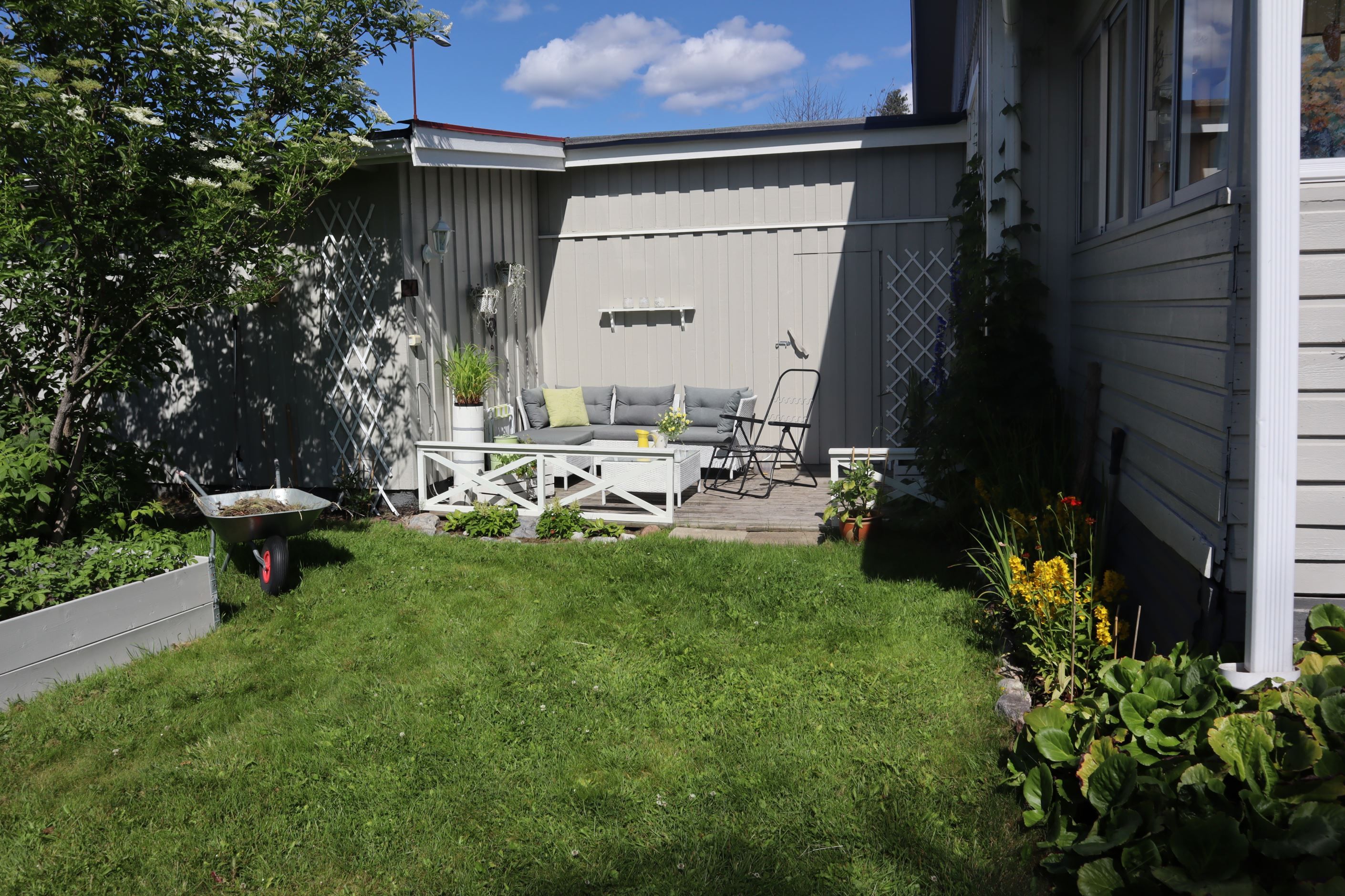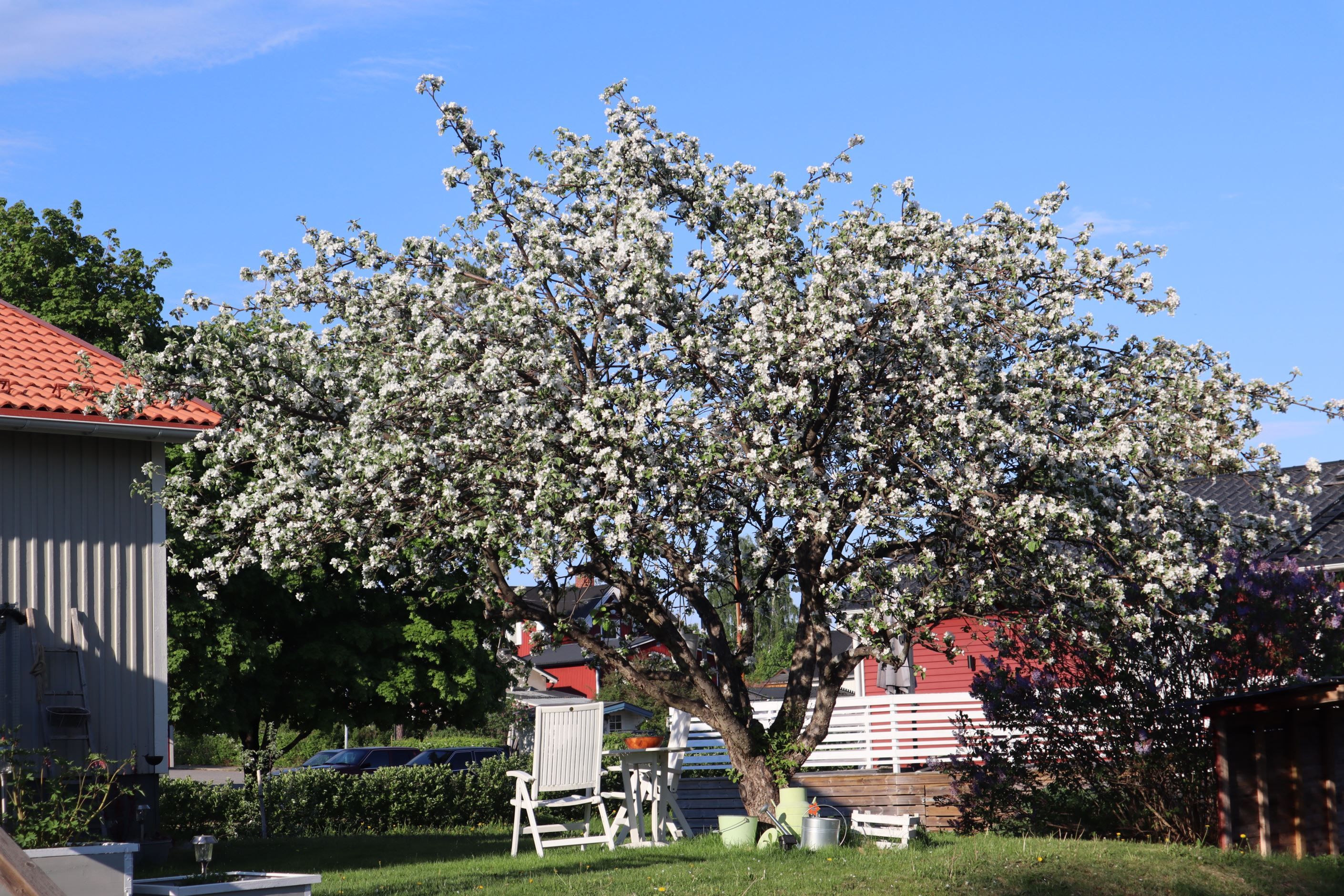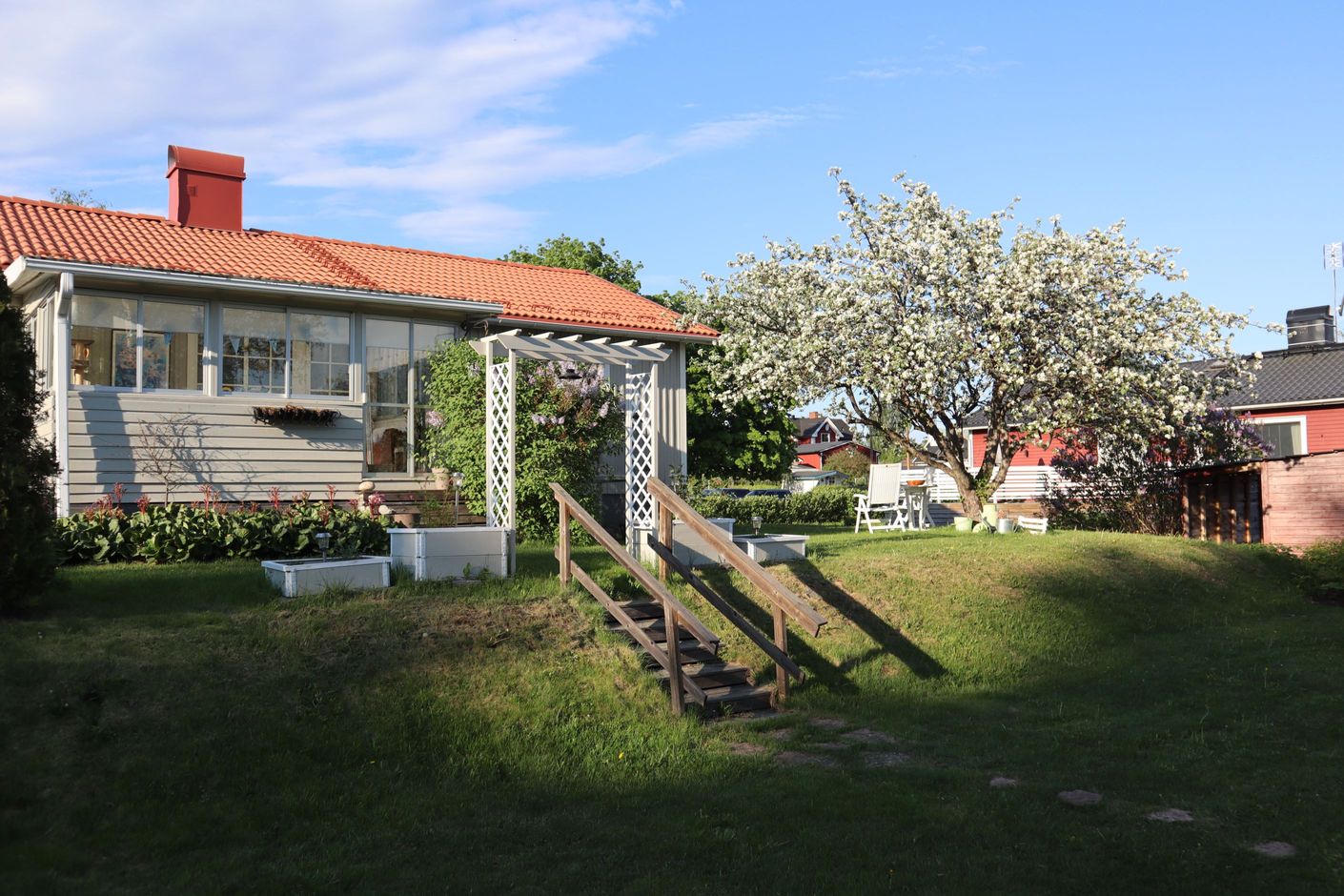 Tomten är en sann oas för den trädgårdsintresserade. Här samsas perenner, fruktträd, vinbärsbuskar och ett gammalt äppelträd som bjuder på riklig skörd. Från husets framsida kan du skymta svandammen där svanparet återvänder varje år – en uppskattad vy för både stora och små. Kvällspromenader runt dammen och närheten till naturen gör platsen svår att inte förälska sig i.