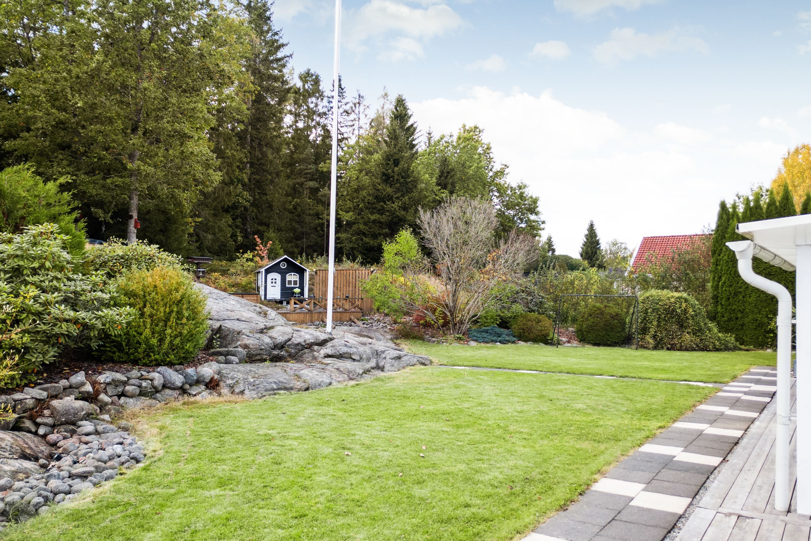Tomten är helt insynsskyddad med sol hela dagen, generös och lätt att sköta, med gräsytor för lek och spring samt en solig uteplats där du kan njuta av sommarens måltider i det fria. Här bor du med skogen och sjön som en av dina närmsta grannar – perfekt för den som tycker om promenader, bad och naturupplevelser året runt.