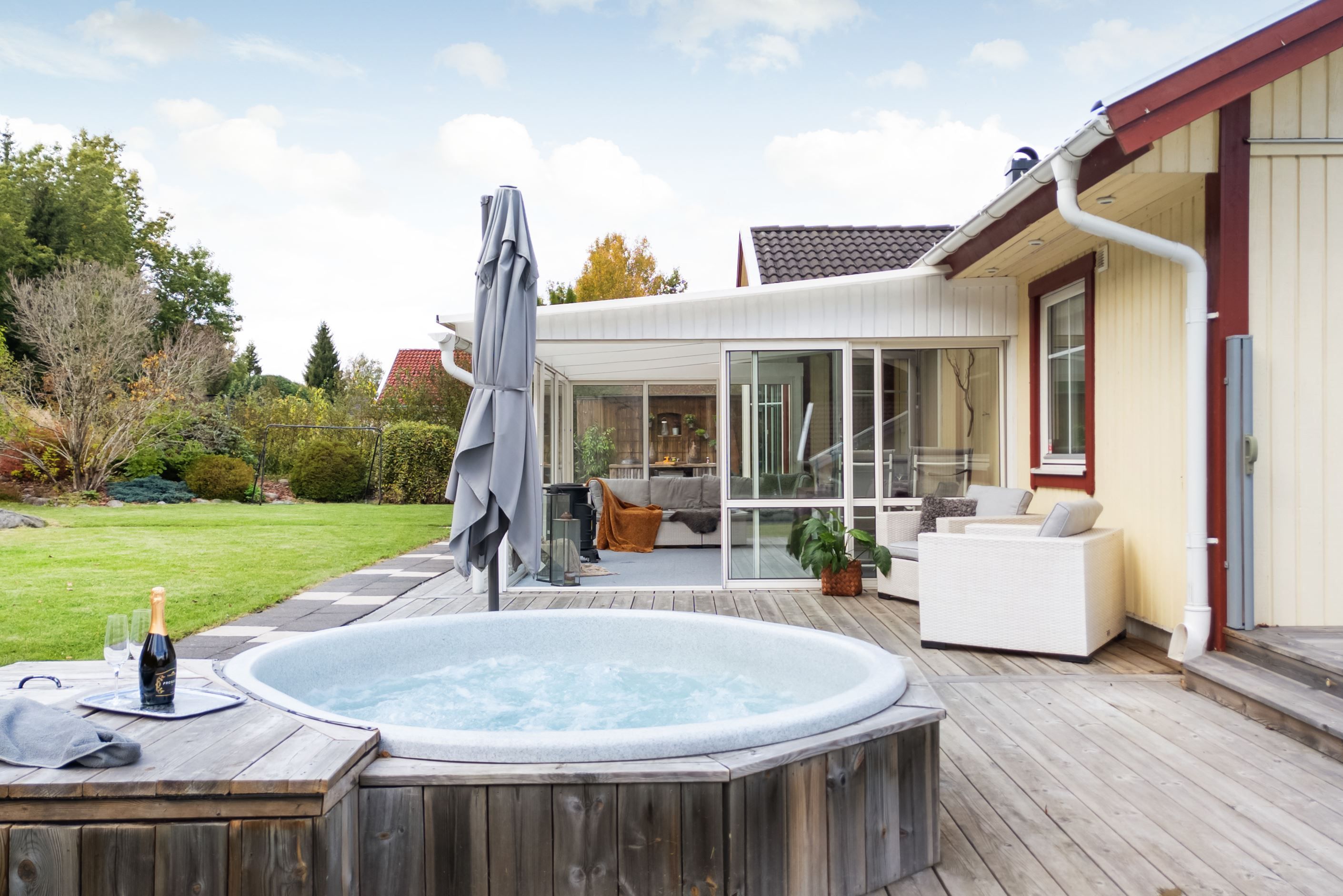Huset rymmer flera rogivande sovrum, alla med gott om förvaring och ett lugn som gör det enkelt att landa efter dagens tempo. Här finns också två fräscht badrum, en separat tvättstuga med groventré – för praktiken bakom det idylliska – och ett inglasat uterum som suddar ut säsongerna.