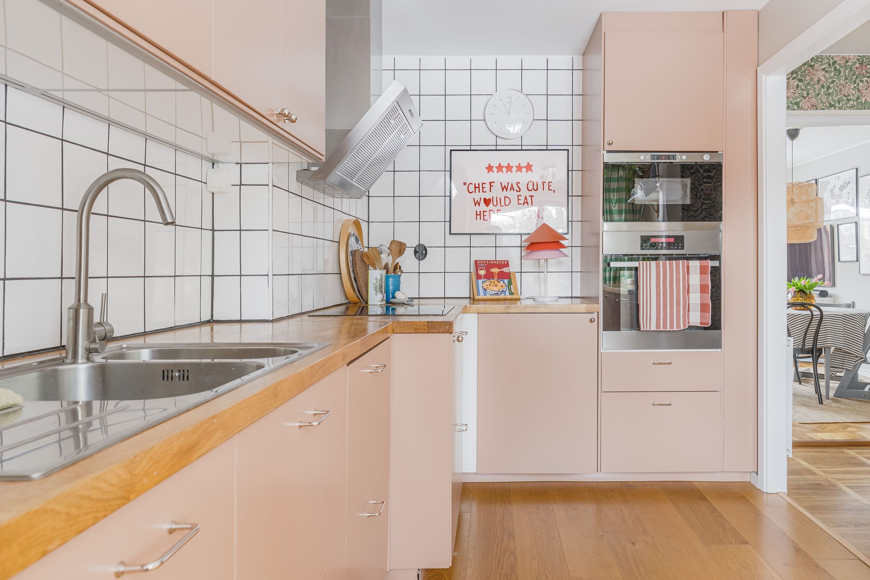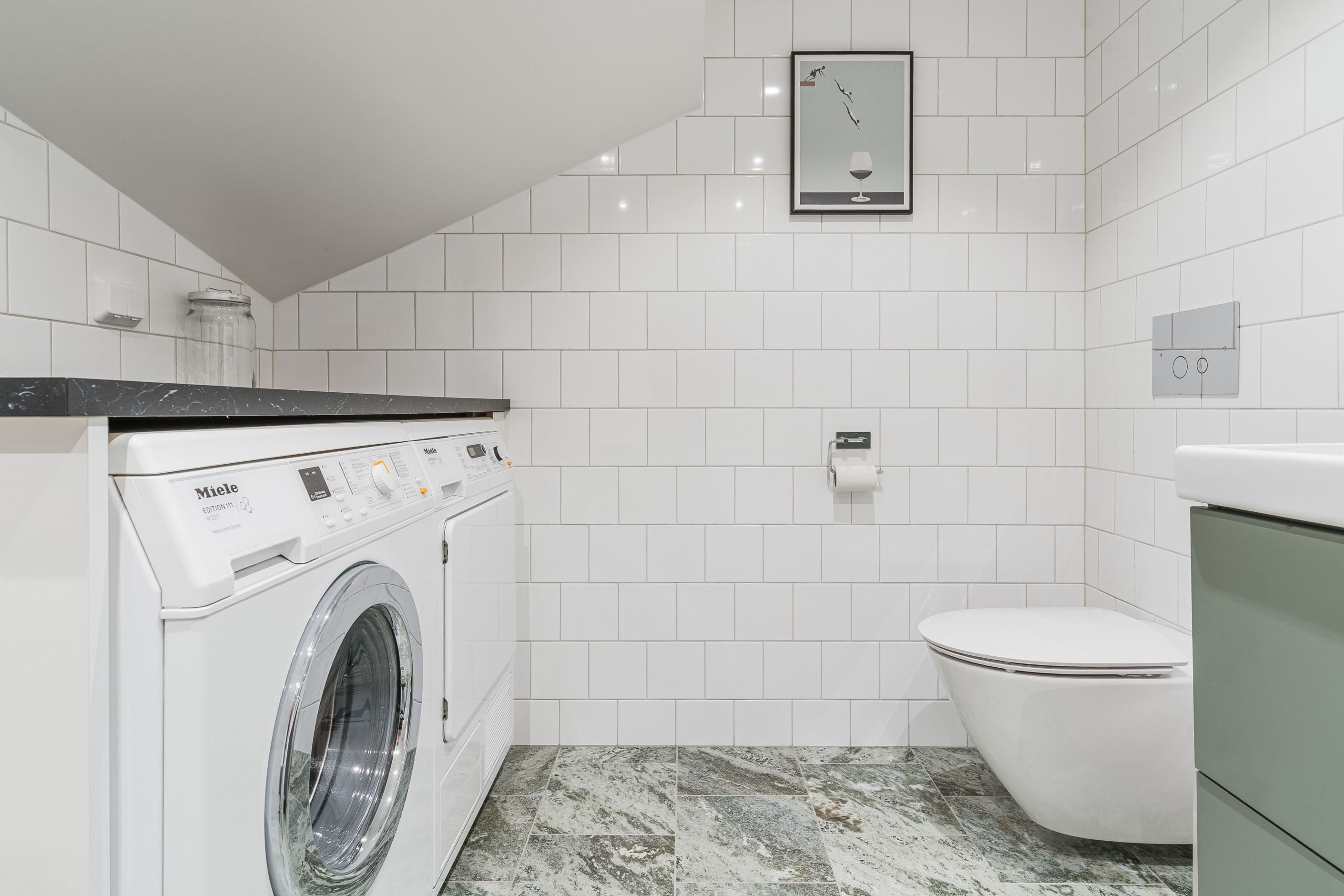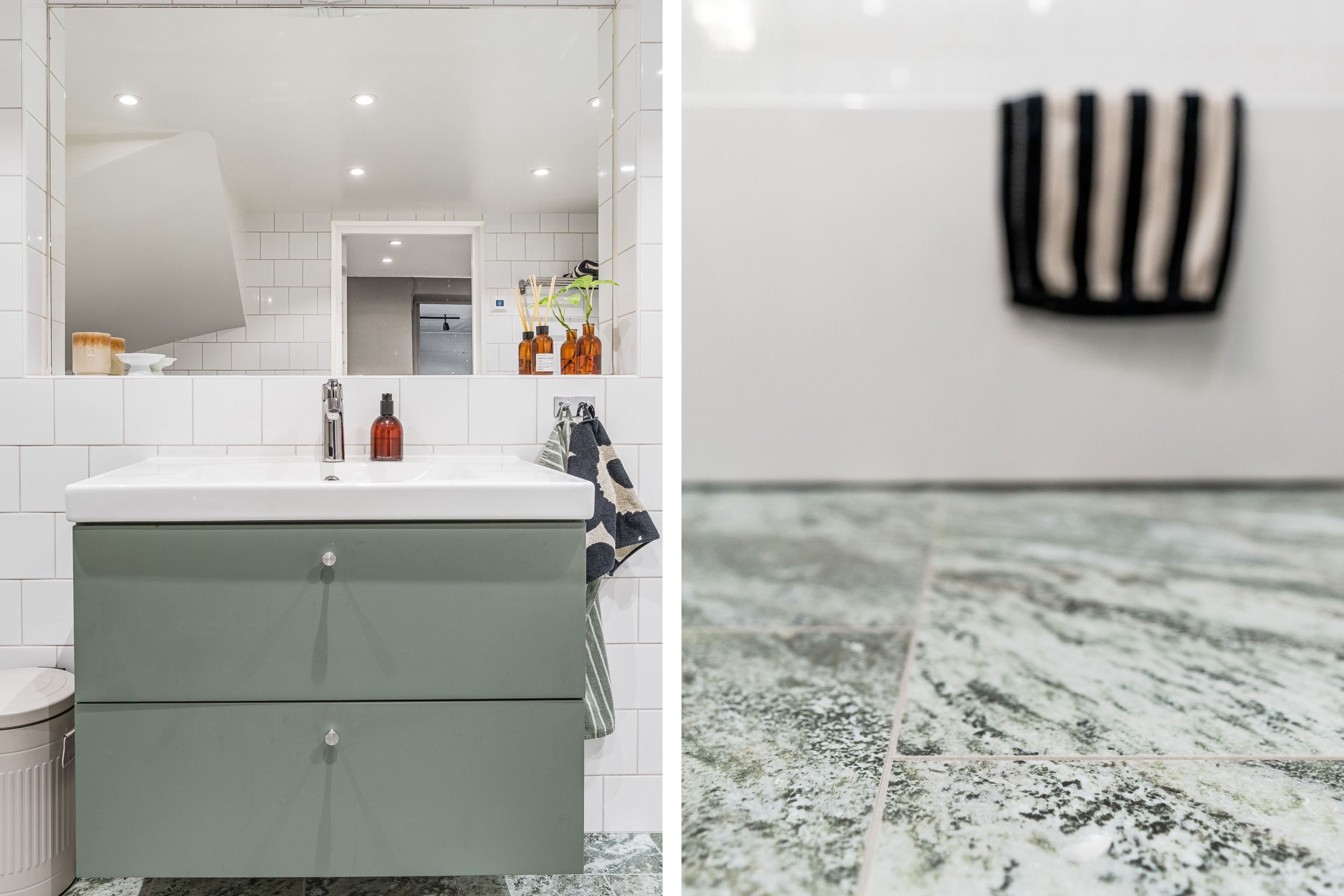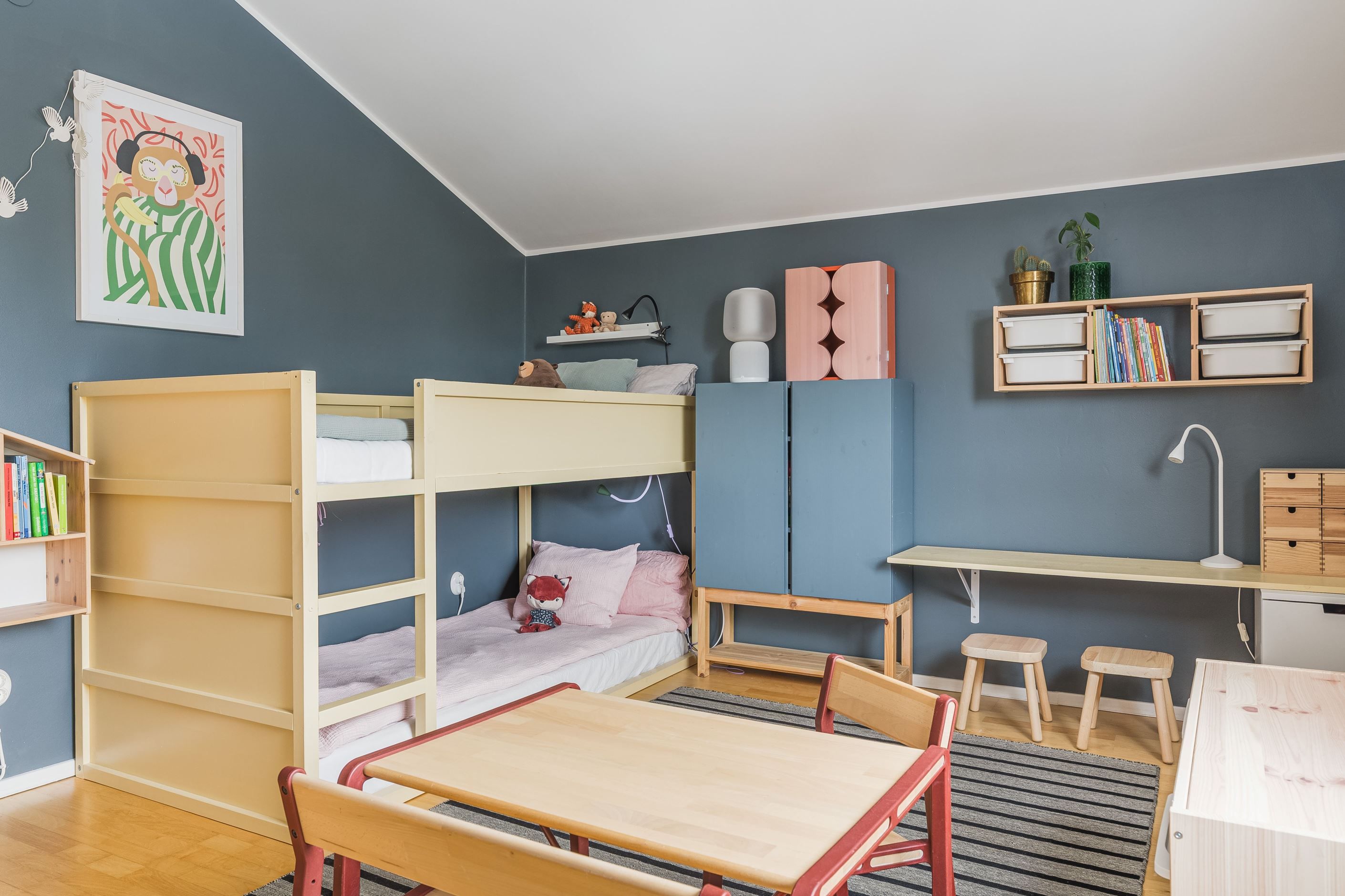 Bostaden välkomnar med en praktisk hall med slitstarkt klinkergolv och goda avhängningsmöjligheter som direkt ger en ordnad och hemtrevlig känsla. Köket går i harmoniska, jordnära kulörer och erbjuder generösa arbetsytor, gott om förvaring och modern maskinell utrustning som gör vardagen smidig. Det ljusa vardagsrummet präglas av stora fönsterpartier, charmig fiskbensparkett och en eldstad som skapar både värme och karaktär - eldstaden behöver tätas innan användning. Här finns gott om plats för både soffgrupp och matplats, och altandörren leder vidare ut till uteplatsen. På övre plan binds rummen samman av en möblerbar hall som lämpar sig utmärkt för en arbetsplats eller läshörna, tillsammans med två rofyllda sovrum med behagligt ljusinsläpp och god förvaring. De helkaklade badrummen i tidlösa toner förstärker den stilrena helheten, och det inredda källarplanet erbjuder ett ombonat allrum som passar utmärkt som extra vardagsrum, tonårsdel, hobbyrum eller ytterligare sovrum, kompletterat med praktisk tvättdel och goda förvaringslösningar.