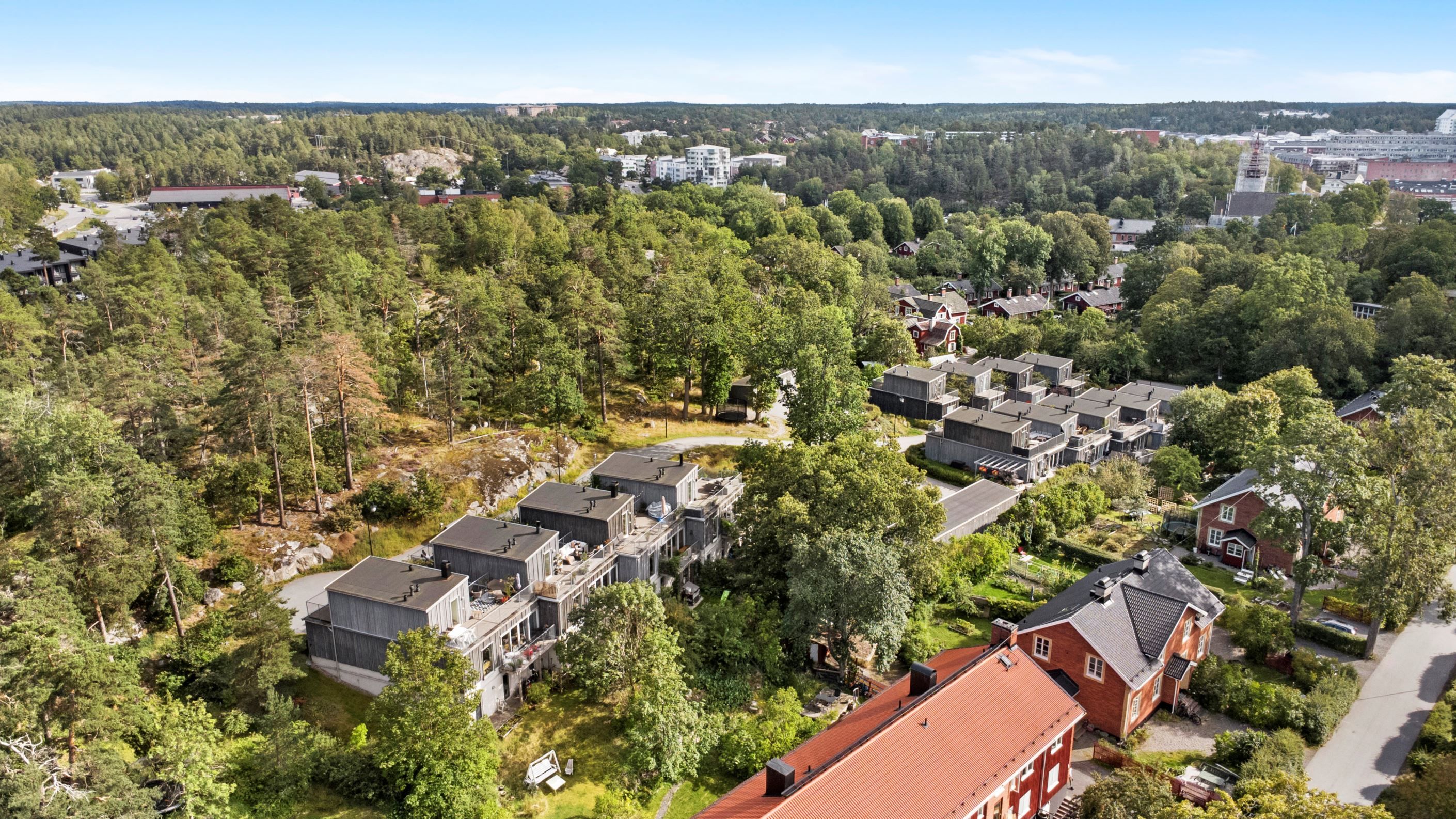 Radhusen är vackert placerade intill skogsområde och naturens närvaro är påtaglig. Som boende på Ebbalundsvägen har du egen parkeringsplats med laddbox och ett externt förråd.