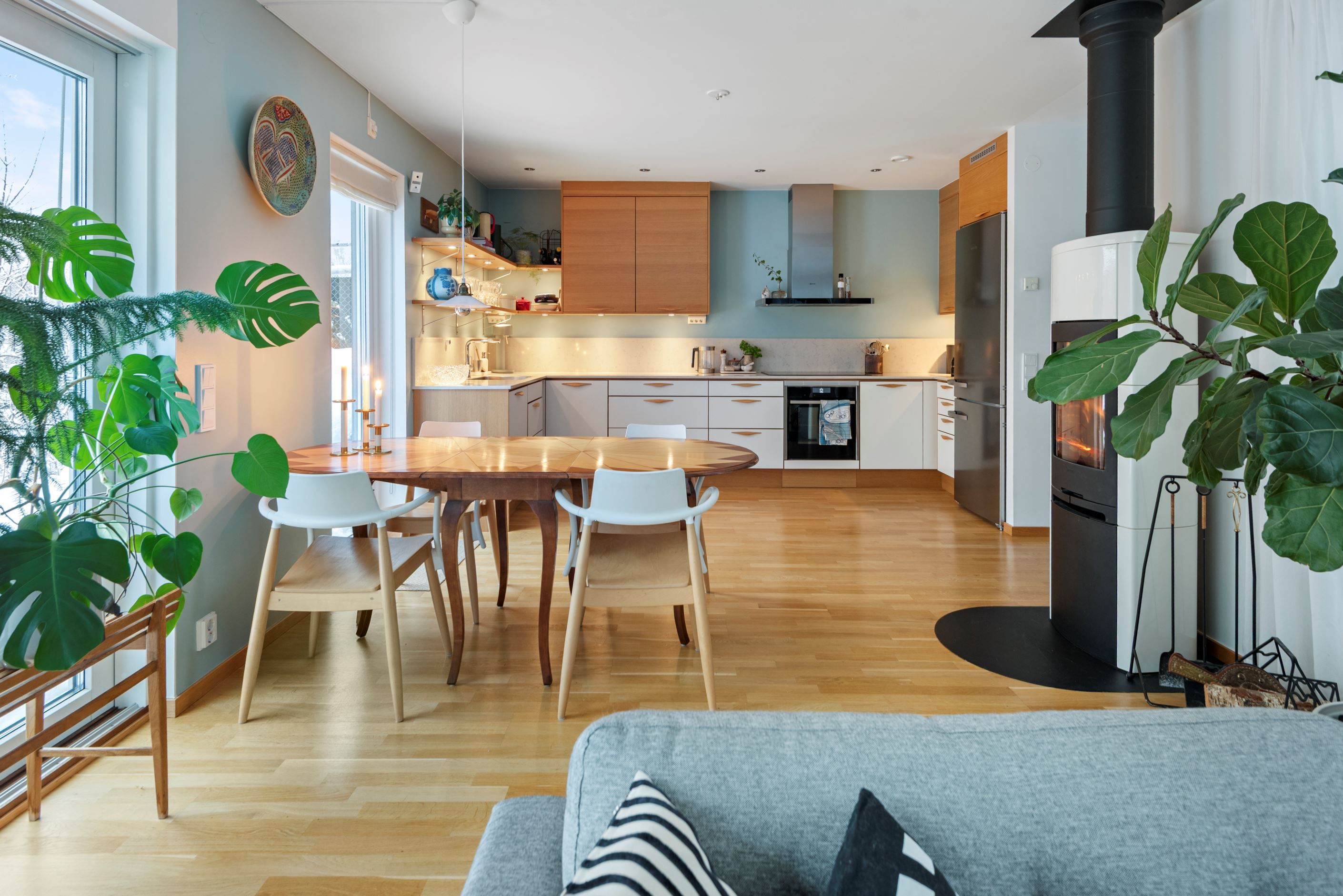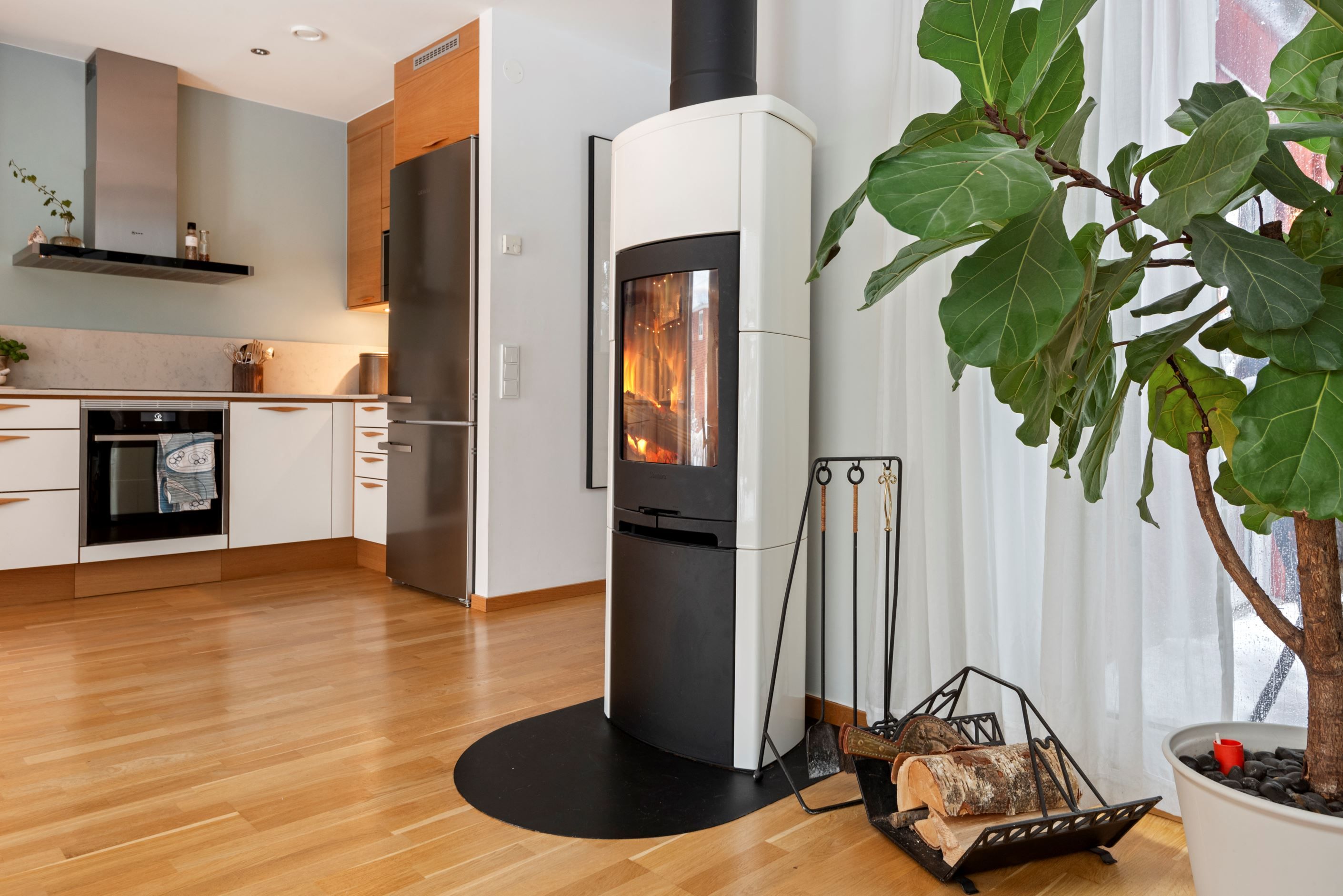 Bostaden är smakfullt renoverad och väl omhändertagen. Nya ytskikt, omslipade golv samt en underbar känsla för det estetiska. Bostaden värms upp med fjärrvärme via vattenburen golvvärme.